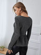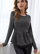 للنساء - تي شيرت برقبة دائرية وحاشية مكشكشة