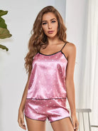 النساء - طقم ليلي من الساتان المنقط المتباين