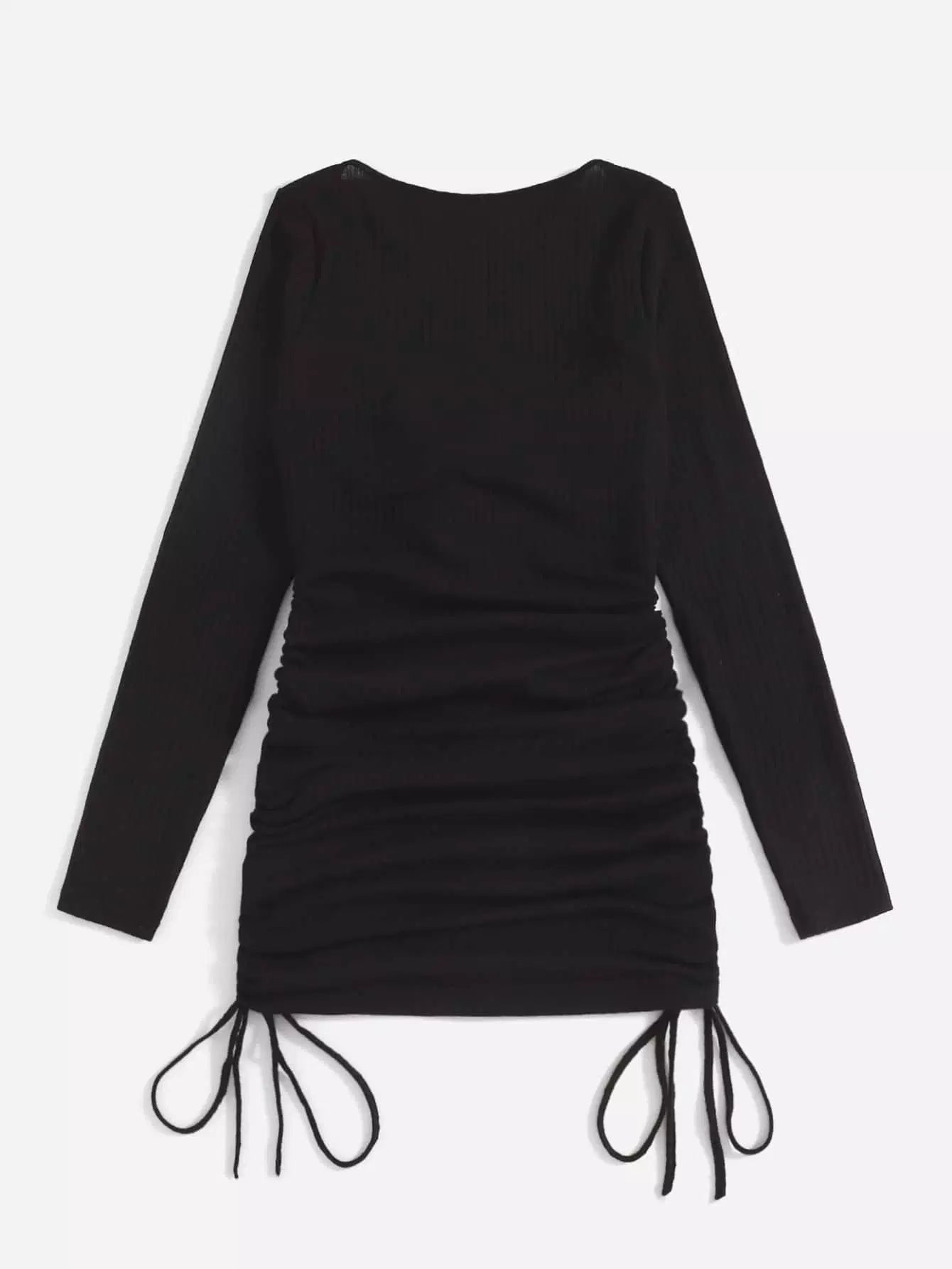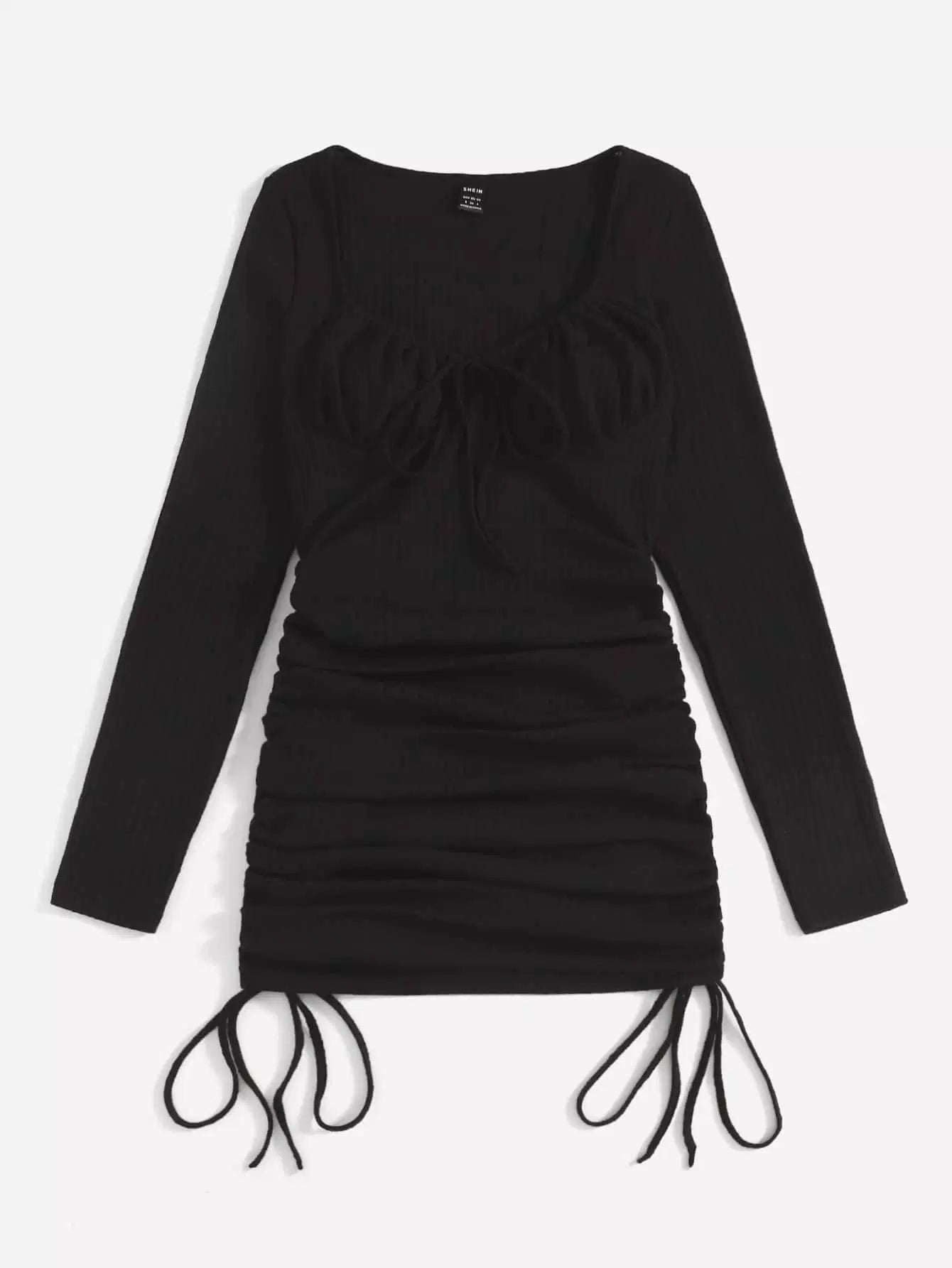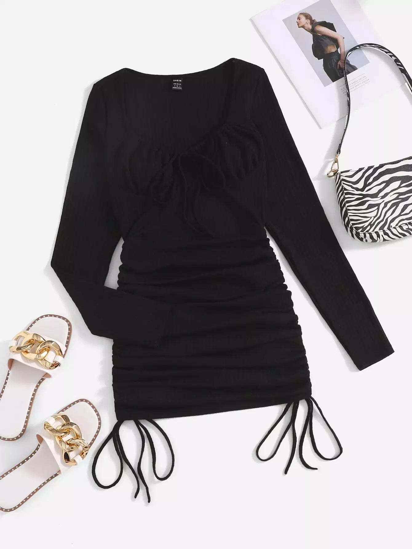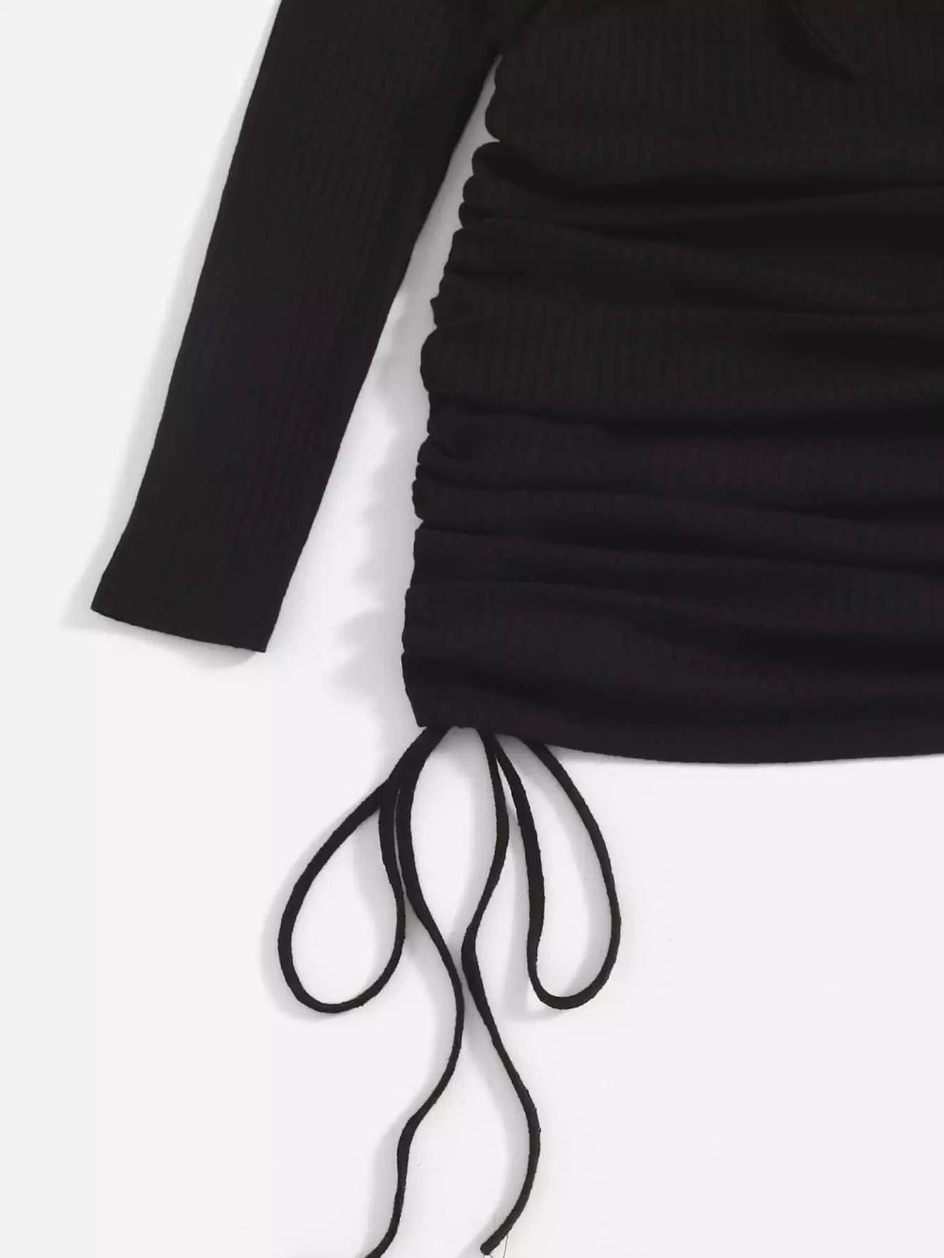 فستان برقبة دائرية برباط رباط جانبي مكشكش