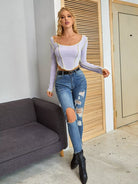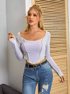 النساء - تي شيرت قصير مزين بغرزة الرقبة