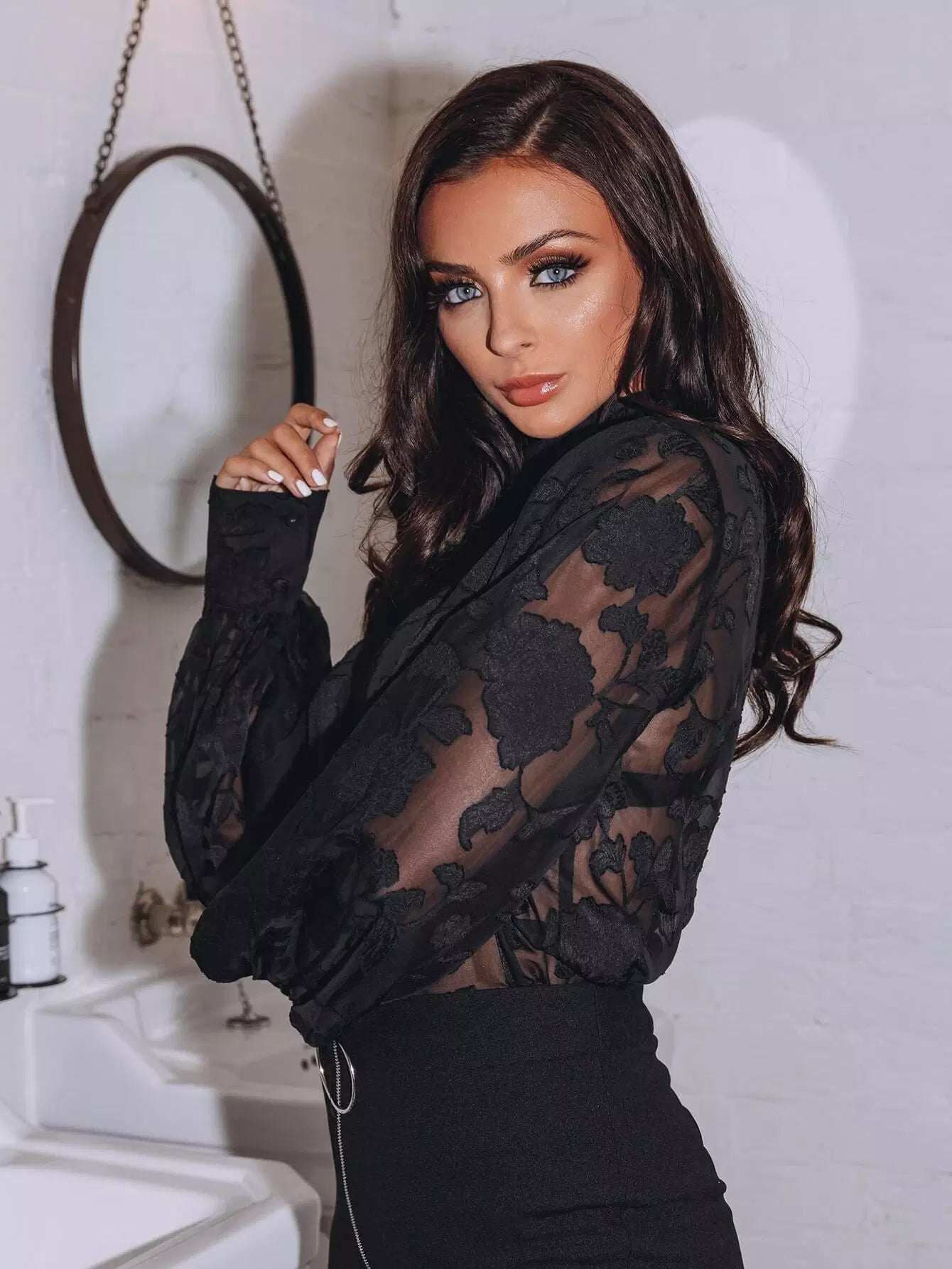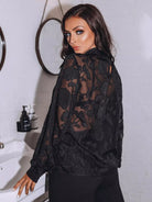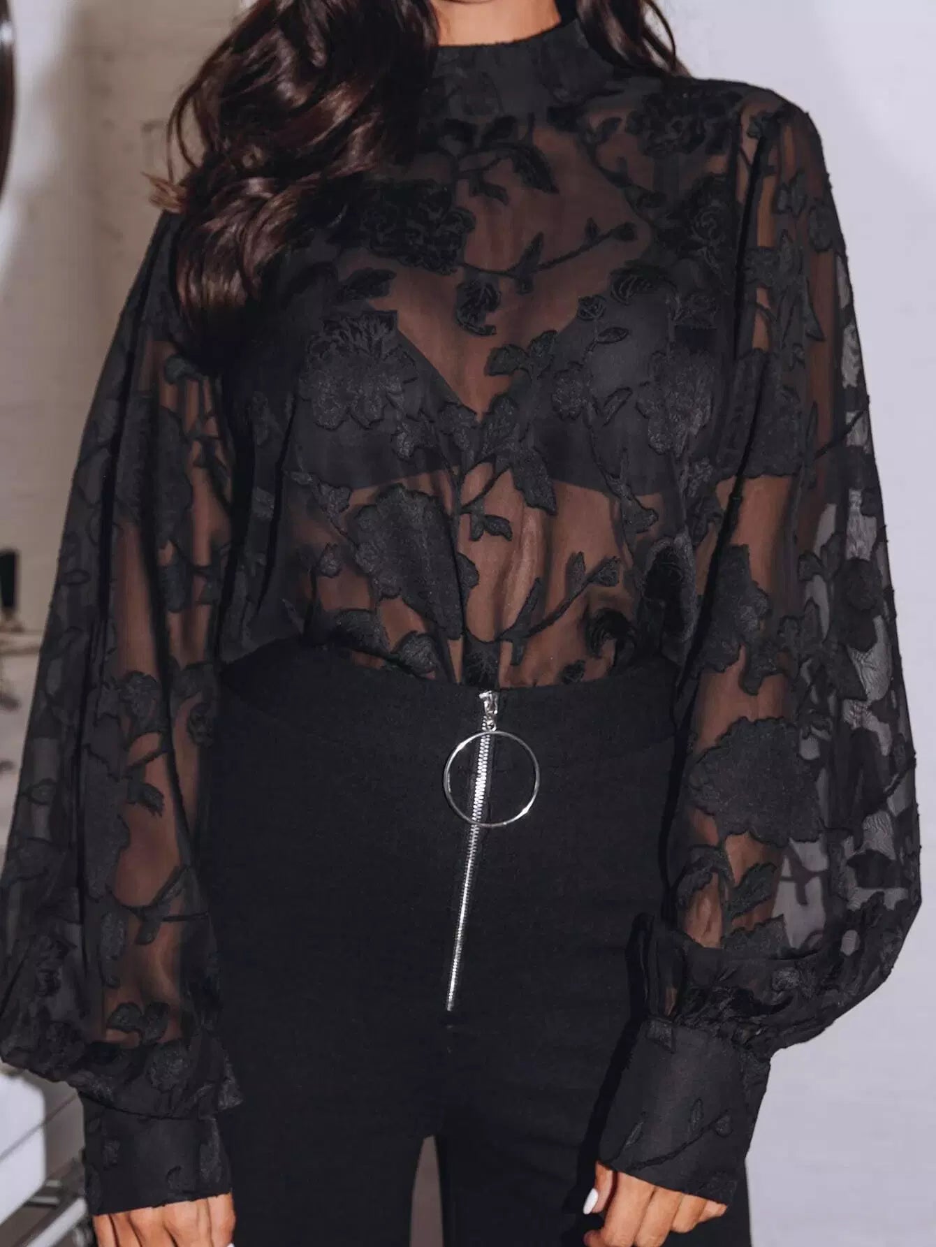 بلوزة من الجاكار الشفاف المزين بالزهور الشفافة