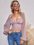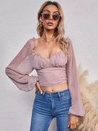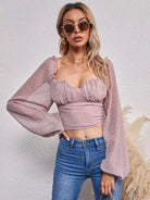بلوزة منقطه سويسرية مع ظهر مجعد وصدر مكشكش