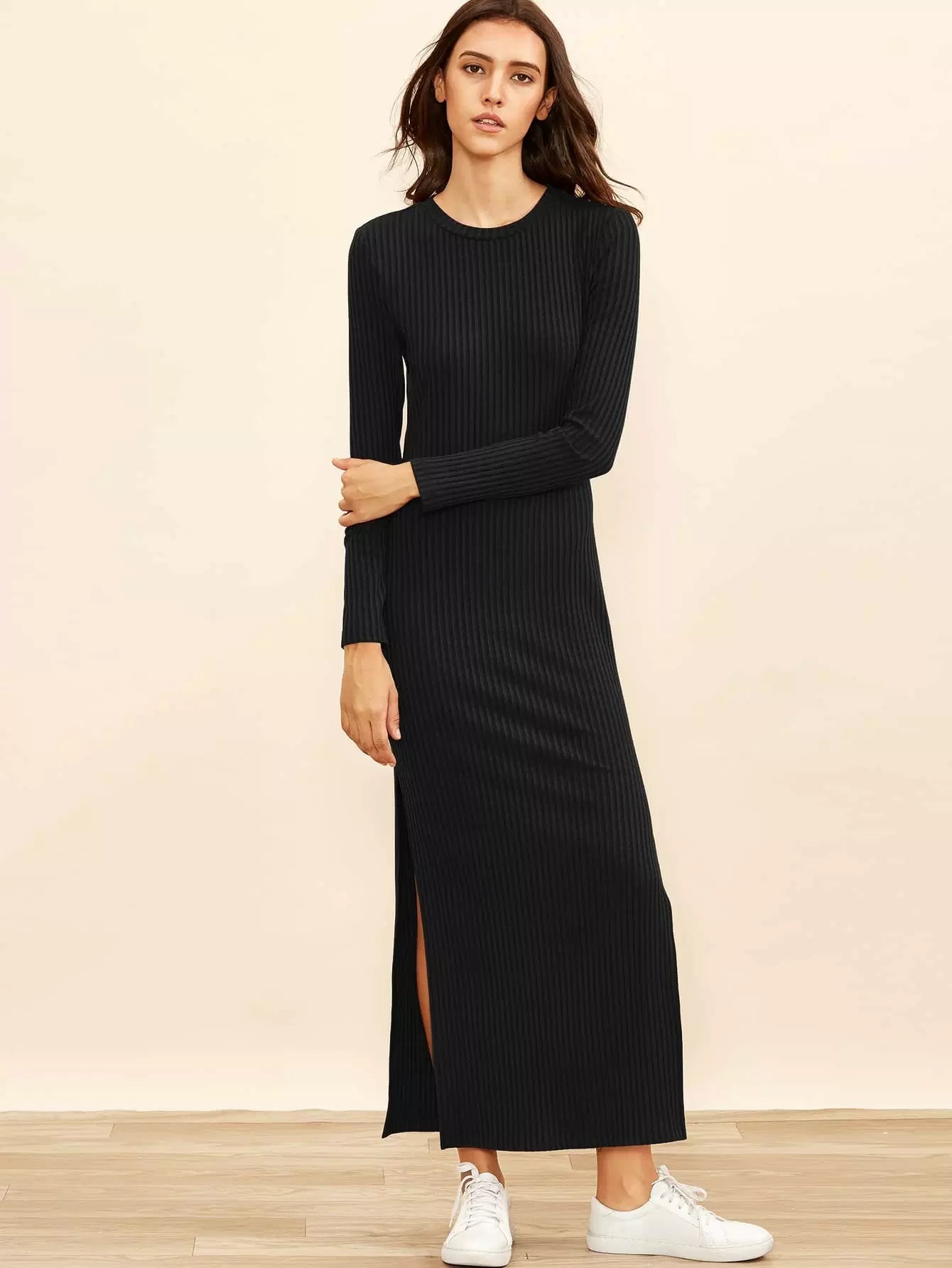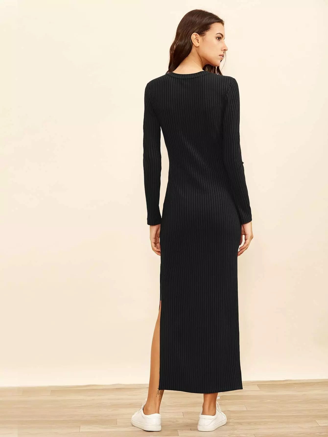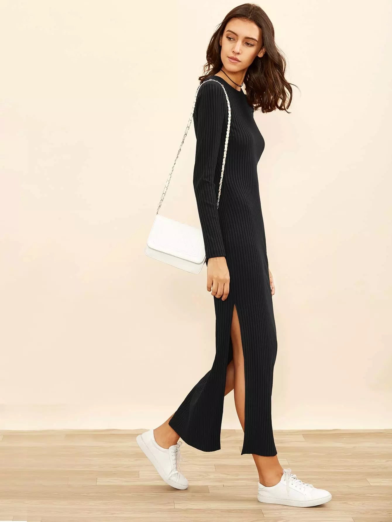 فستان بفتحة جانبية محبوك بشق جانبي محبوك على شكل عمودي