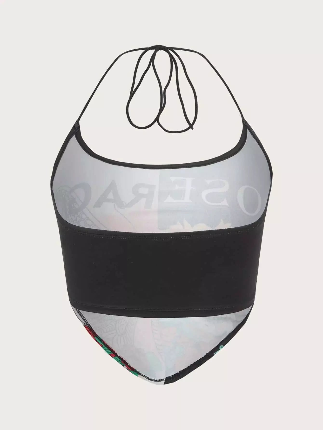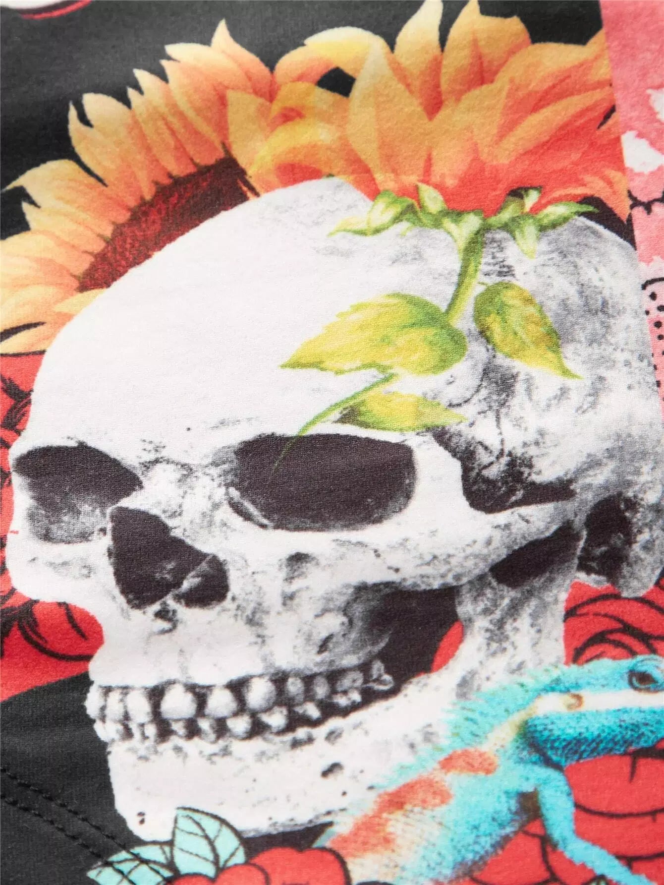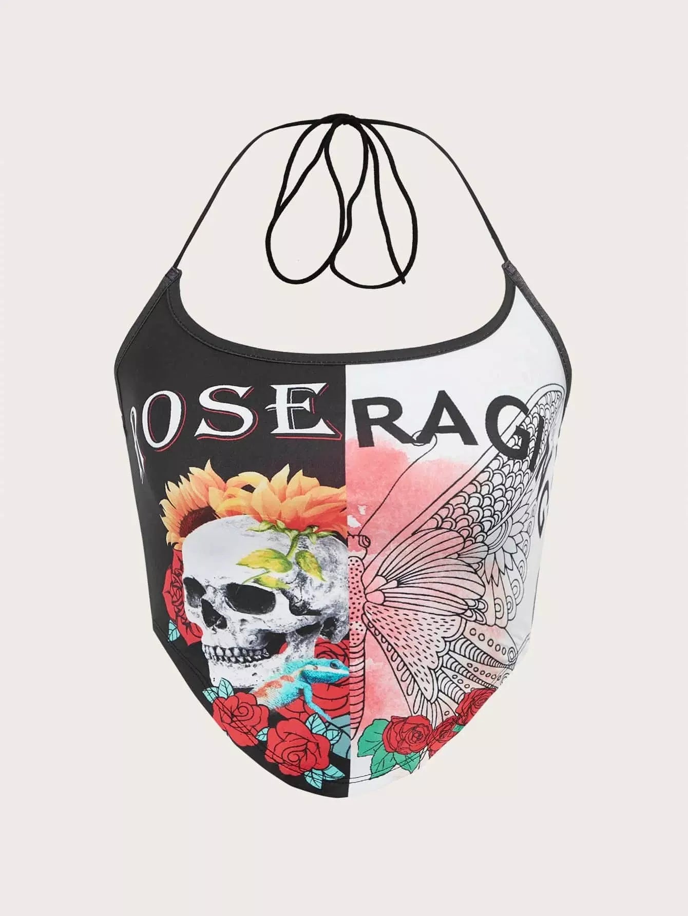 بلوزة بطبعة جمجمة وفراشة بطبعة جمجمة وفراشة مربوطة من الخلف