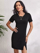 فستان ضيق من قماش الضلع مع حافة مشقوقة