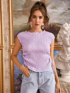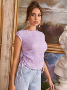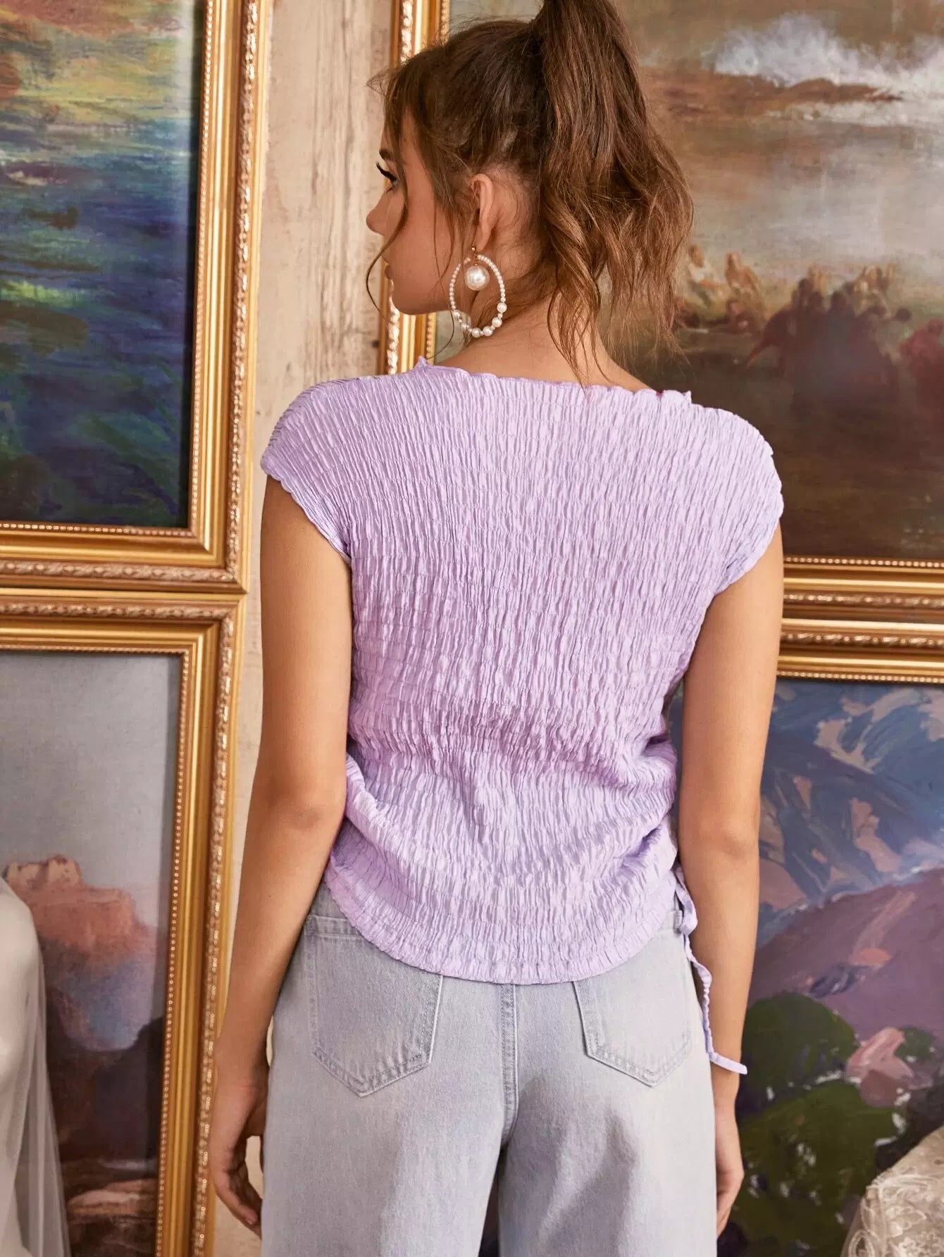 النساء - بلوزة برباط بحافة الخس المدخنة