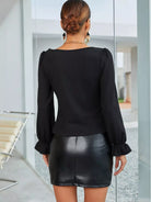 تي شيرت بأكمام مزينة بالكشكش