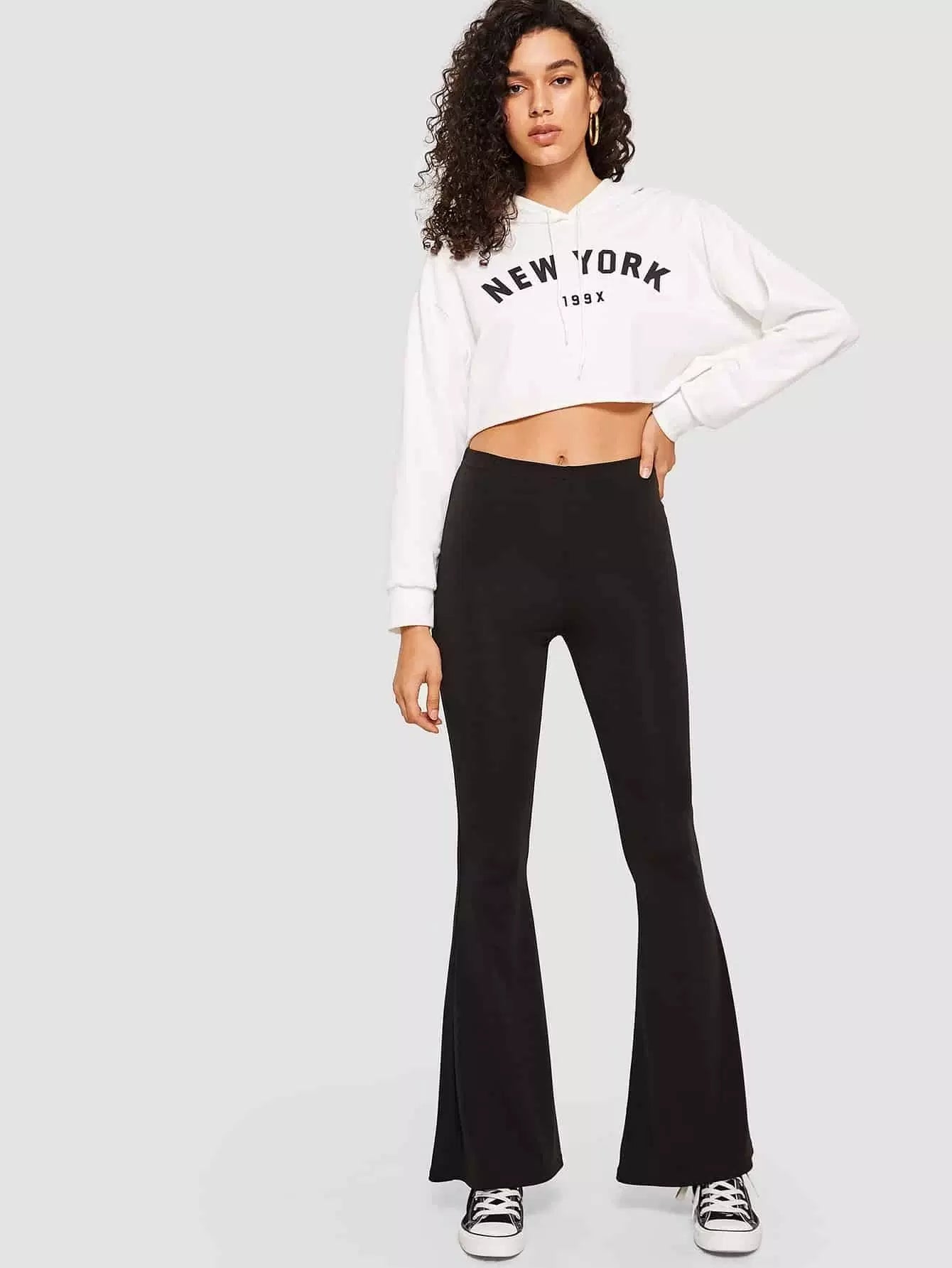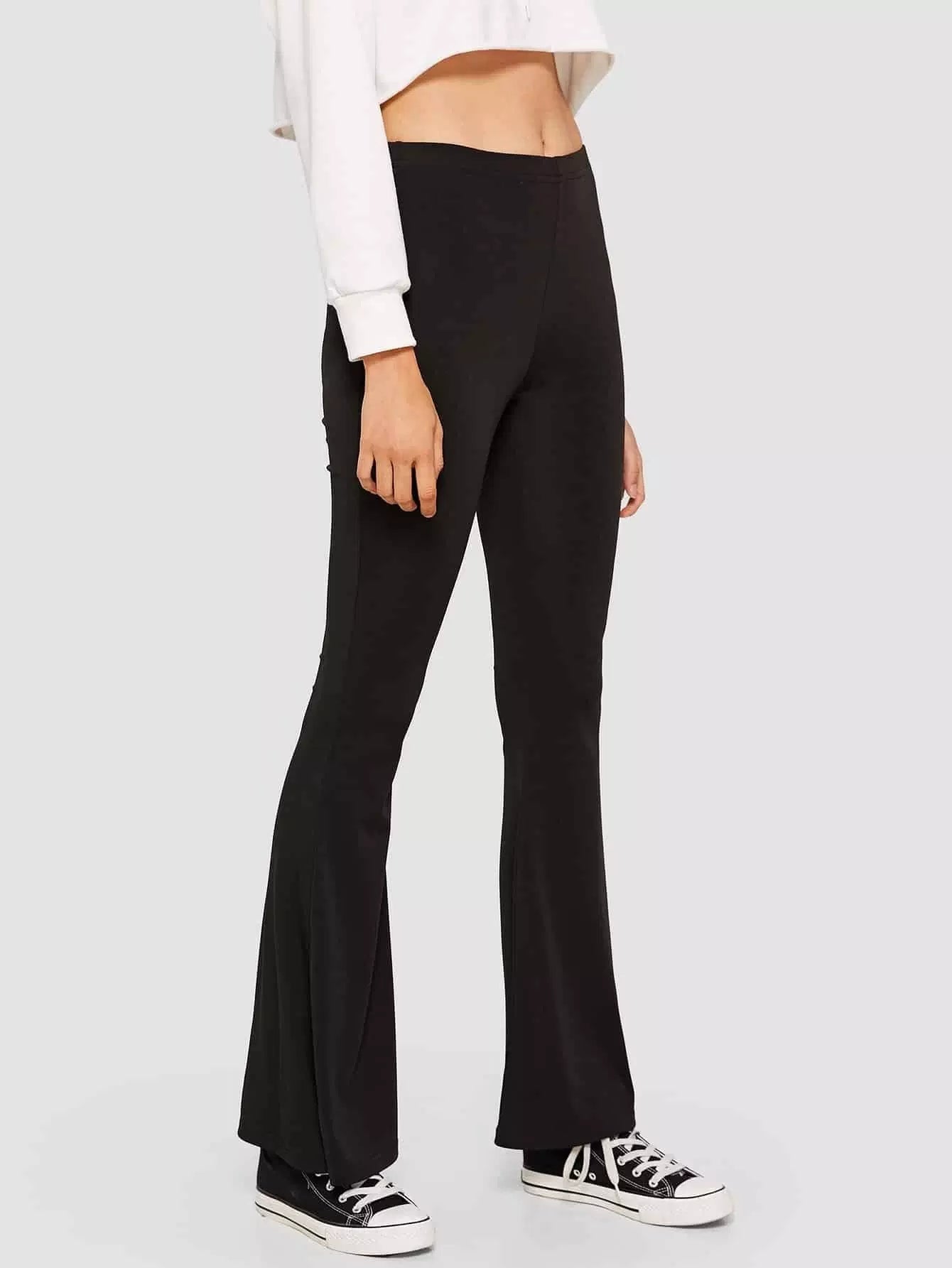 بنطلون سادة عالي الساقين بقصّة واسعة سادة