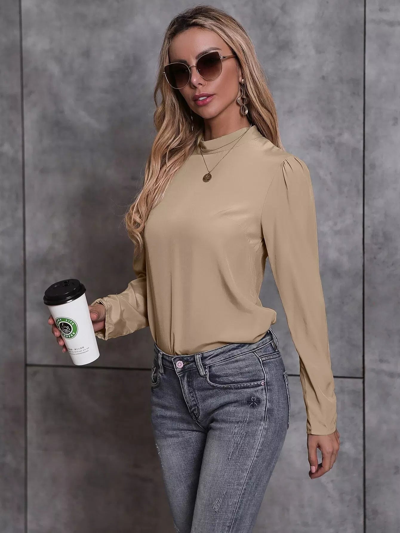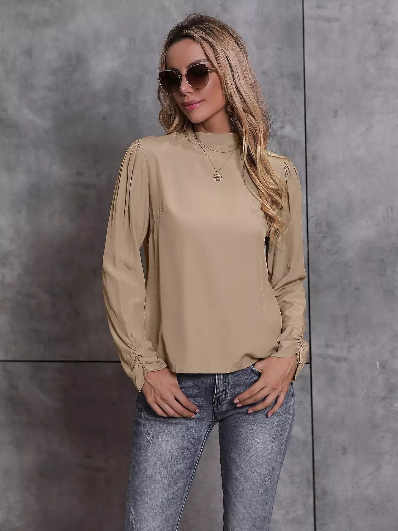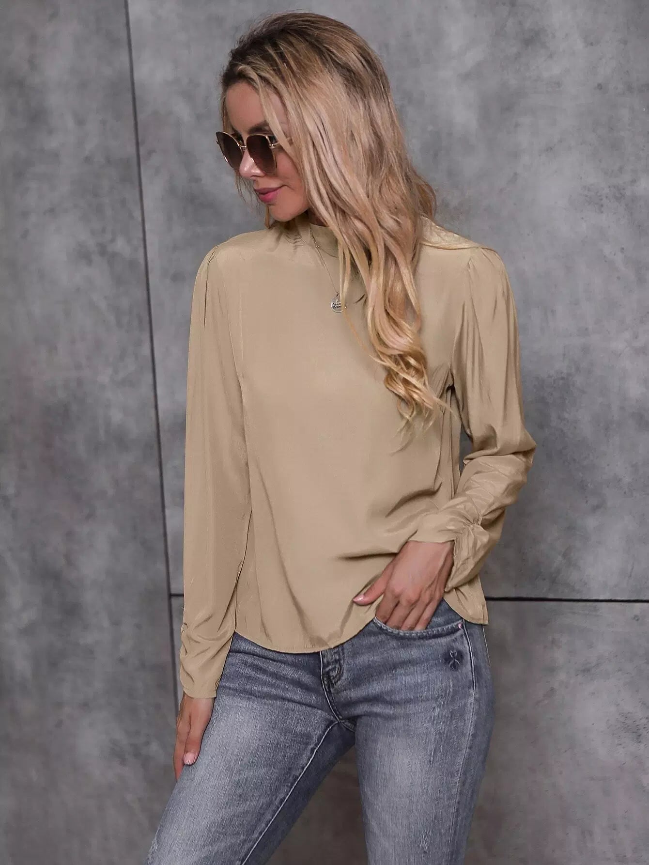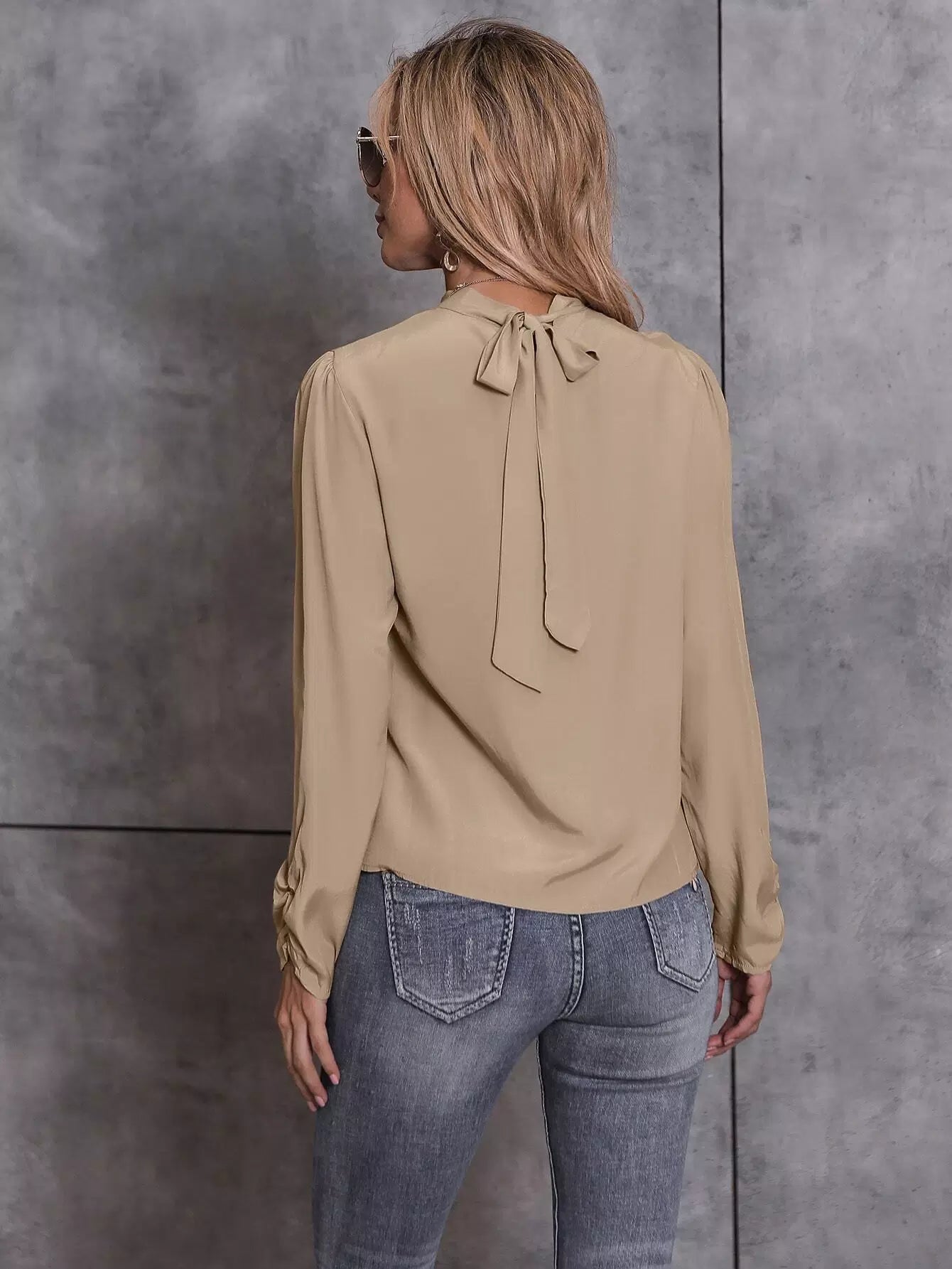 بلوزة بياقة سادة برقبة سادة بربطة عنق على الظهر