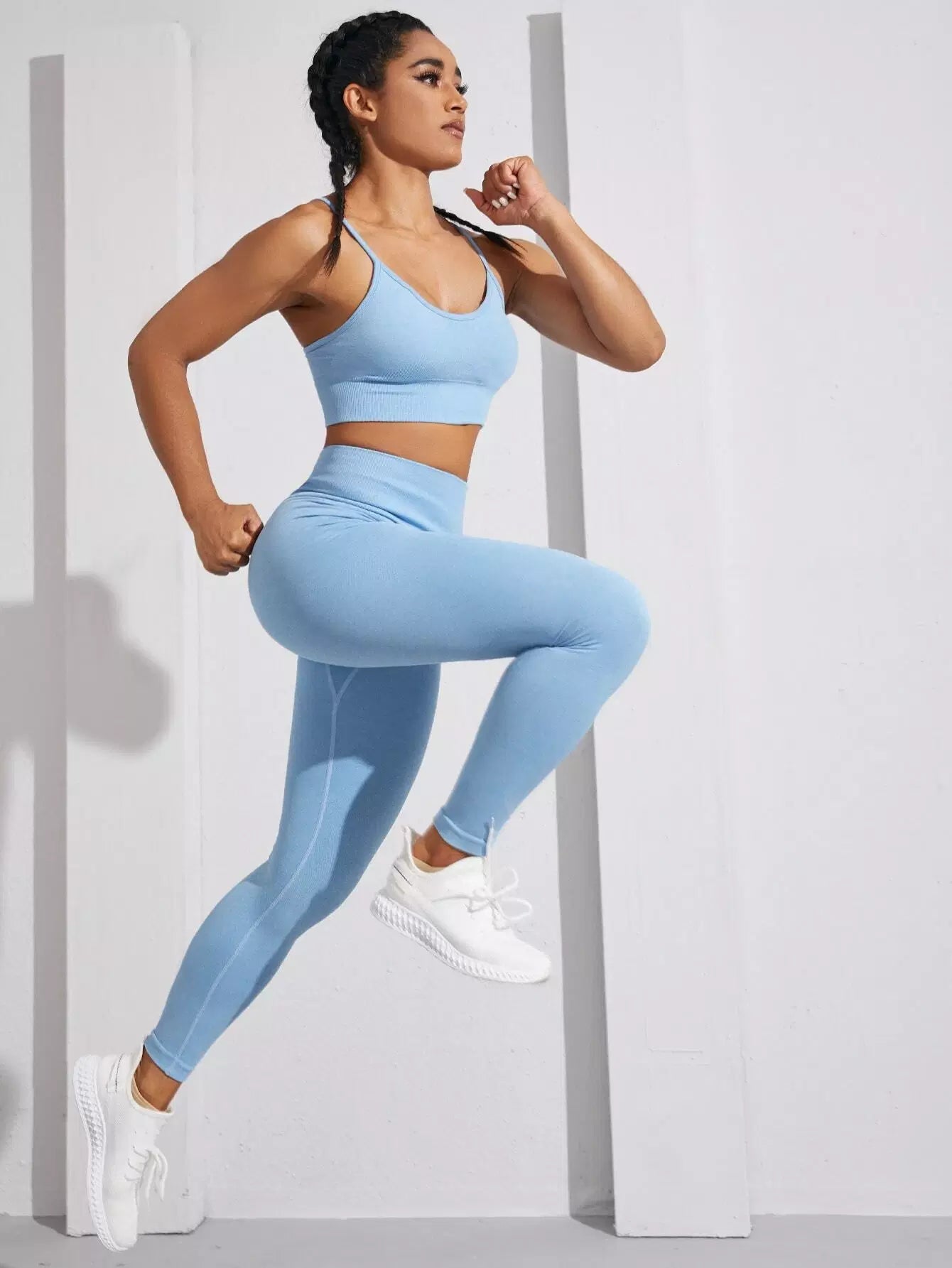 حمالة صدر رياضية سادة وبنطال رياضي ضيق