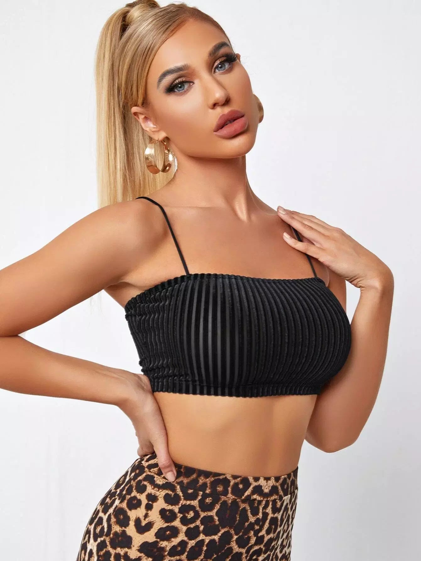 بلوزة قصيرة ضيقة مخملية سادة مخملية ضيقة
