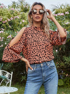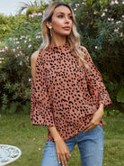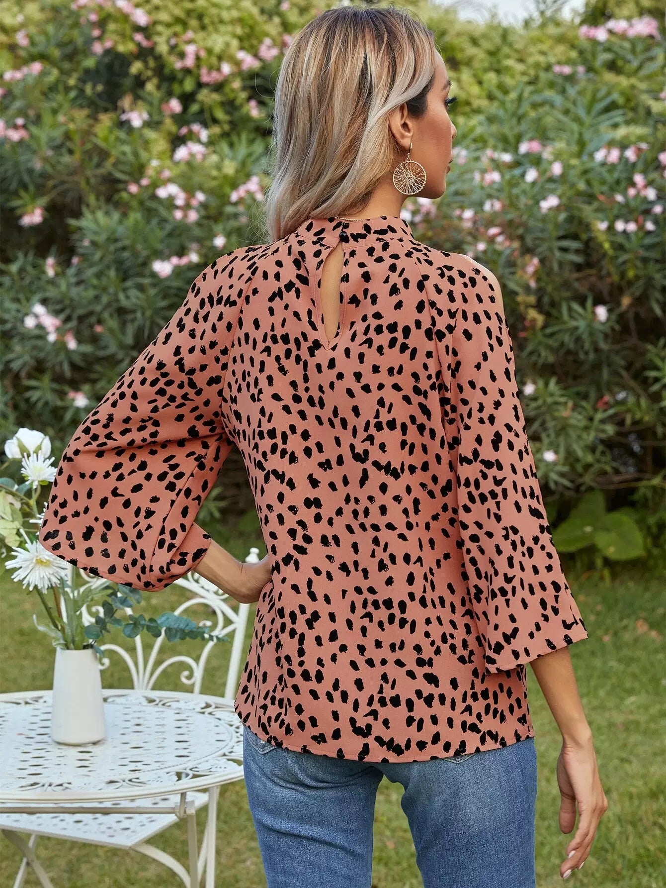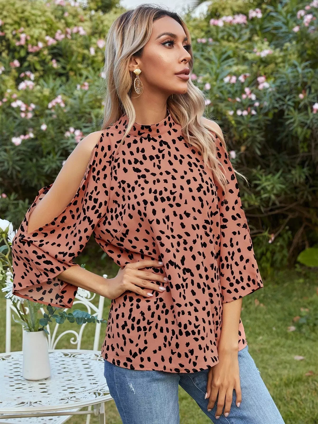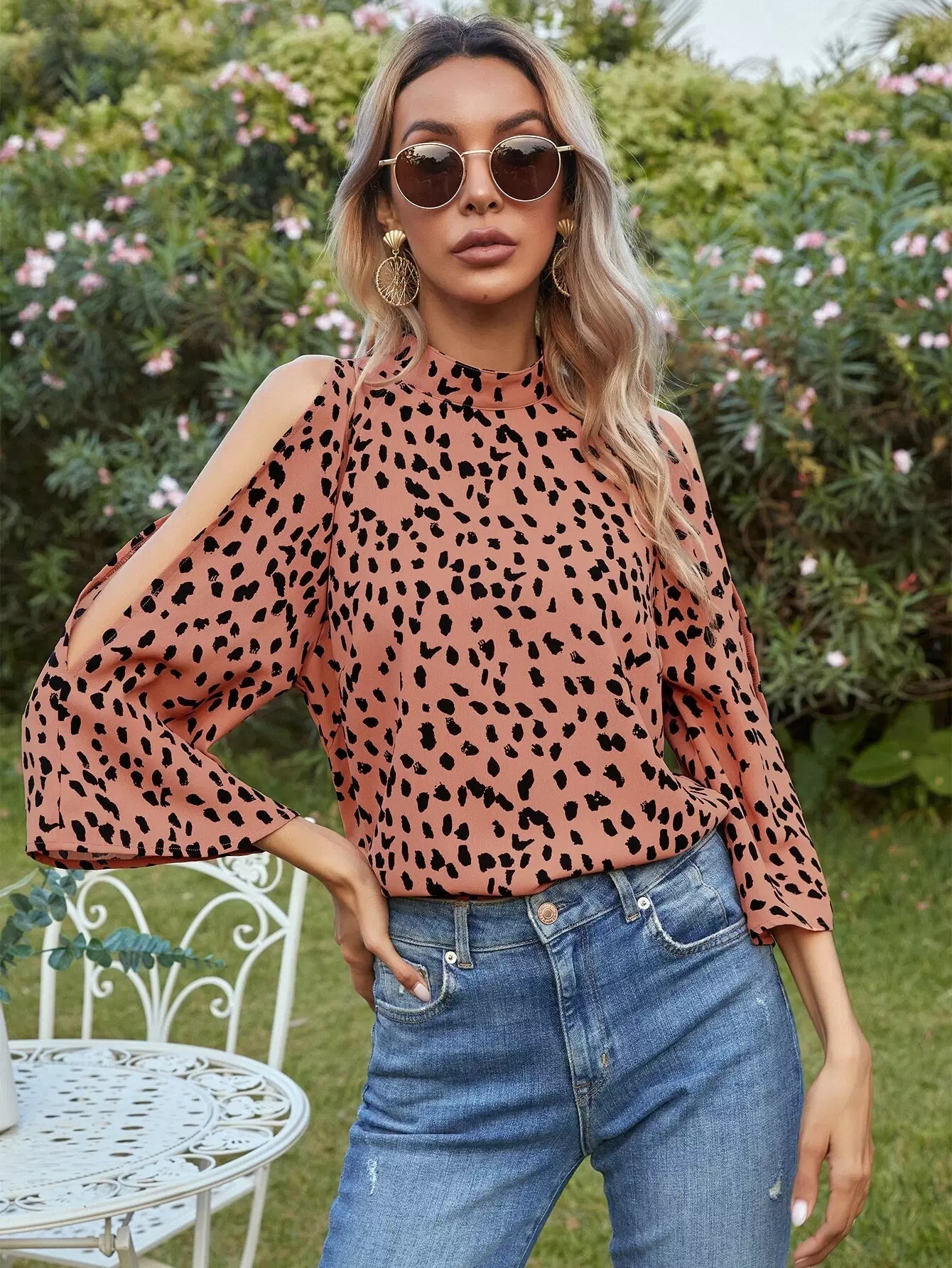 بلوزة مطبوعة بالكامل بأكمام منقسمة وياقة قائمة