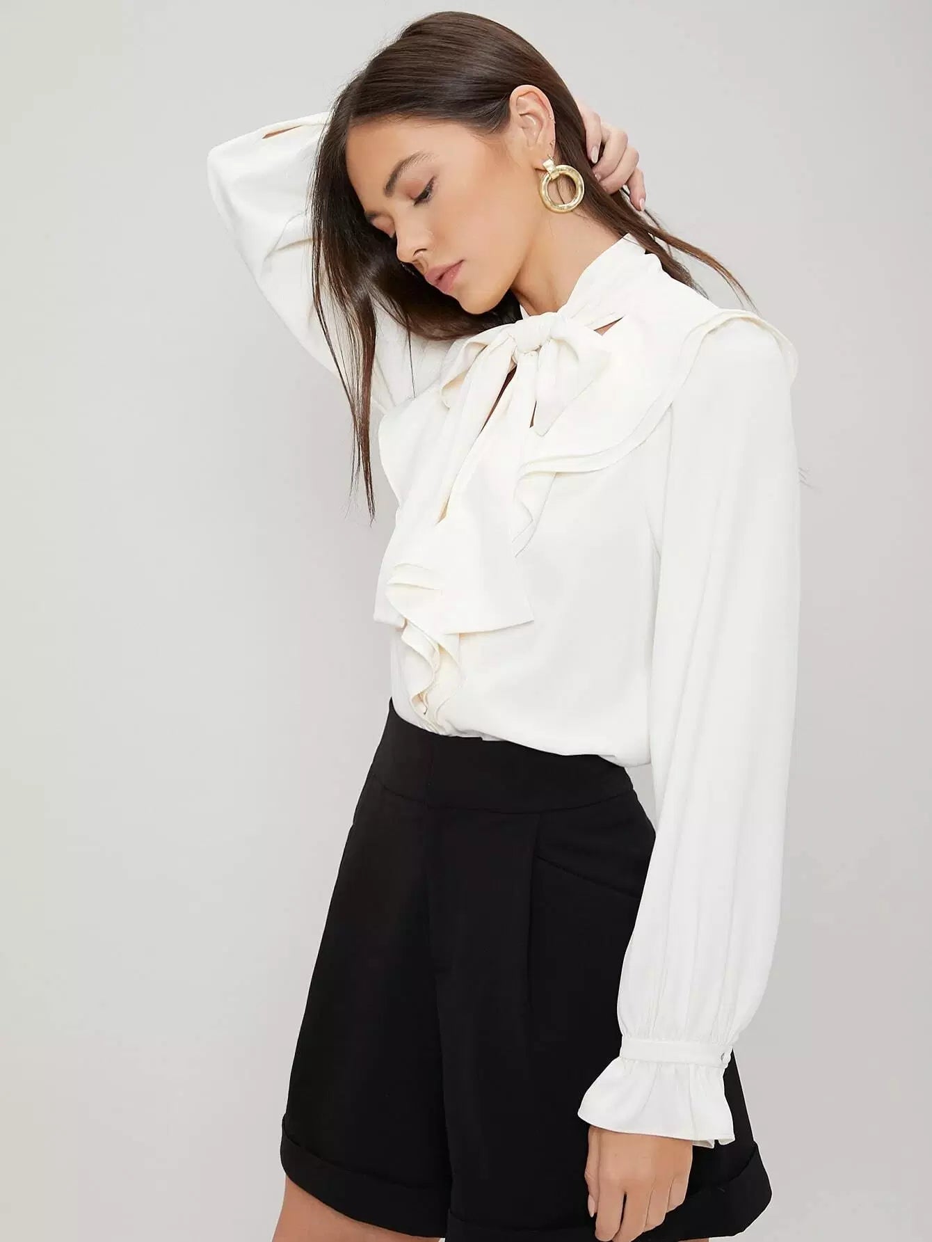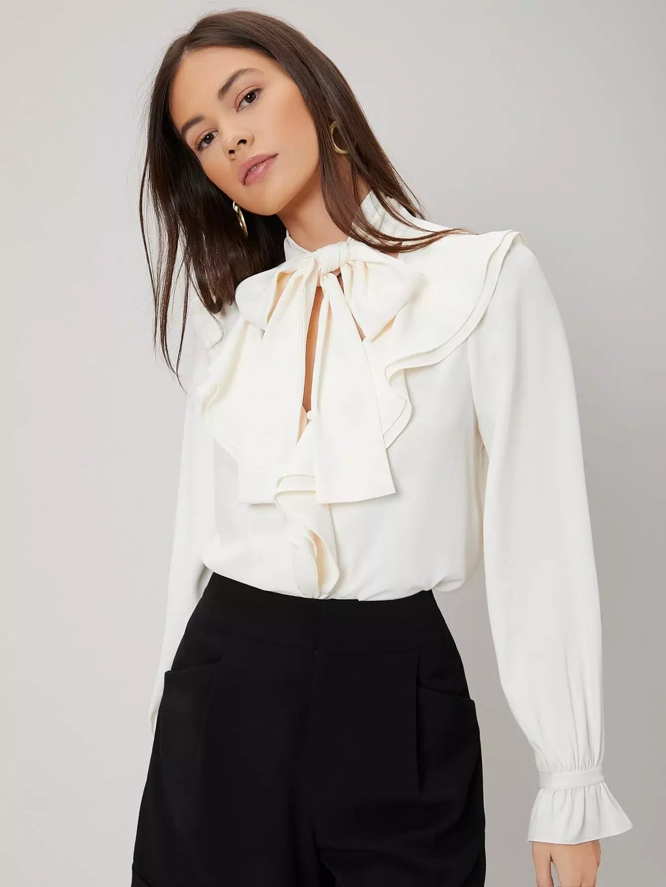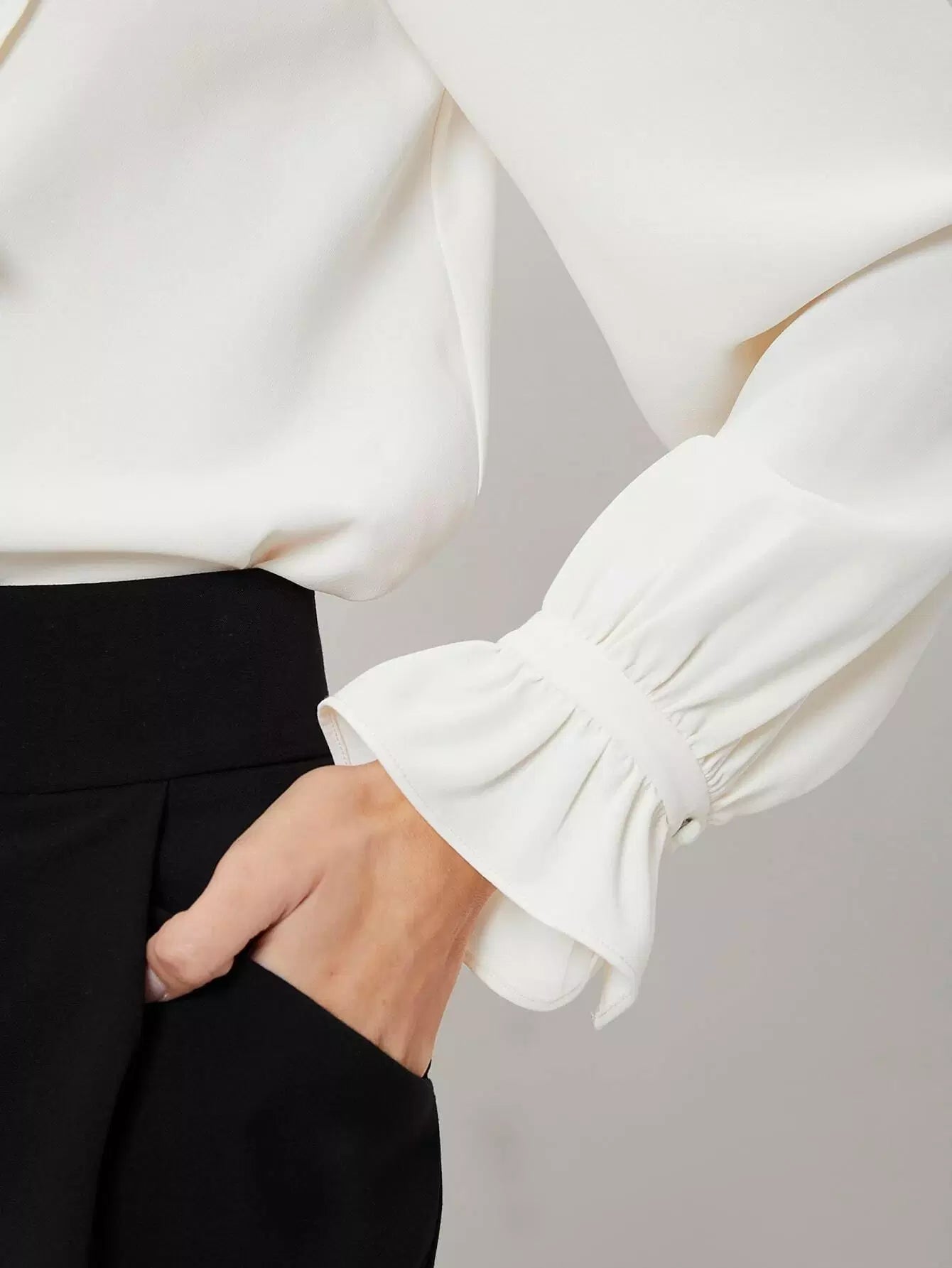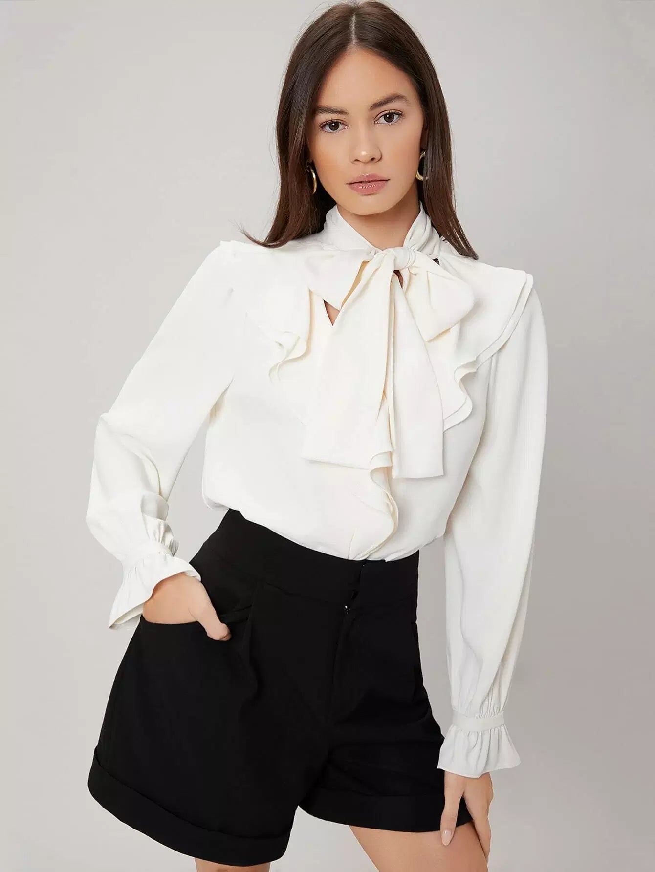 بلوزة بياقة مستقيمة بربطة عنق مستقيمة