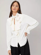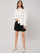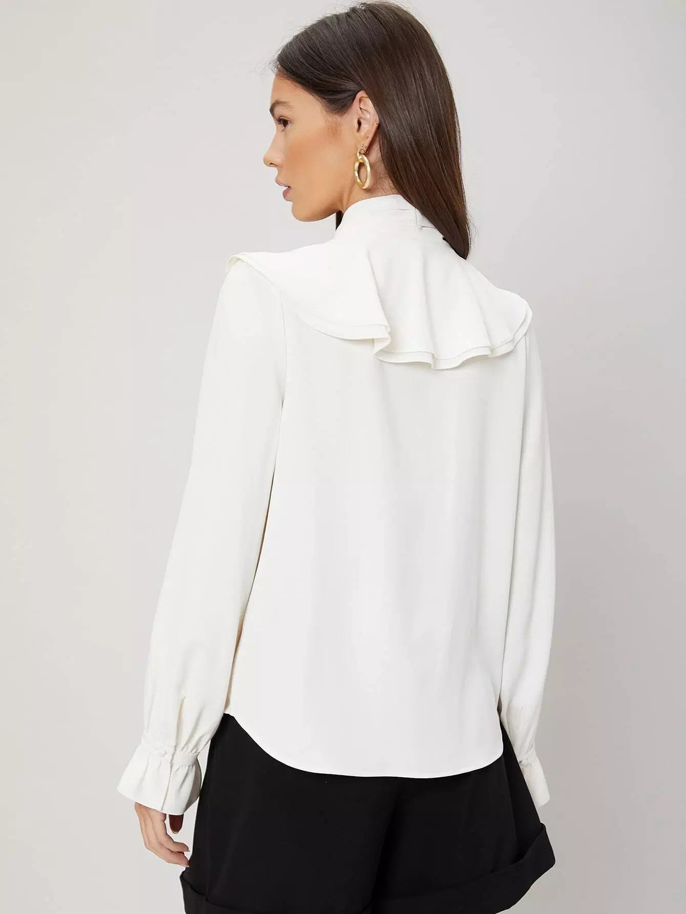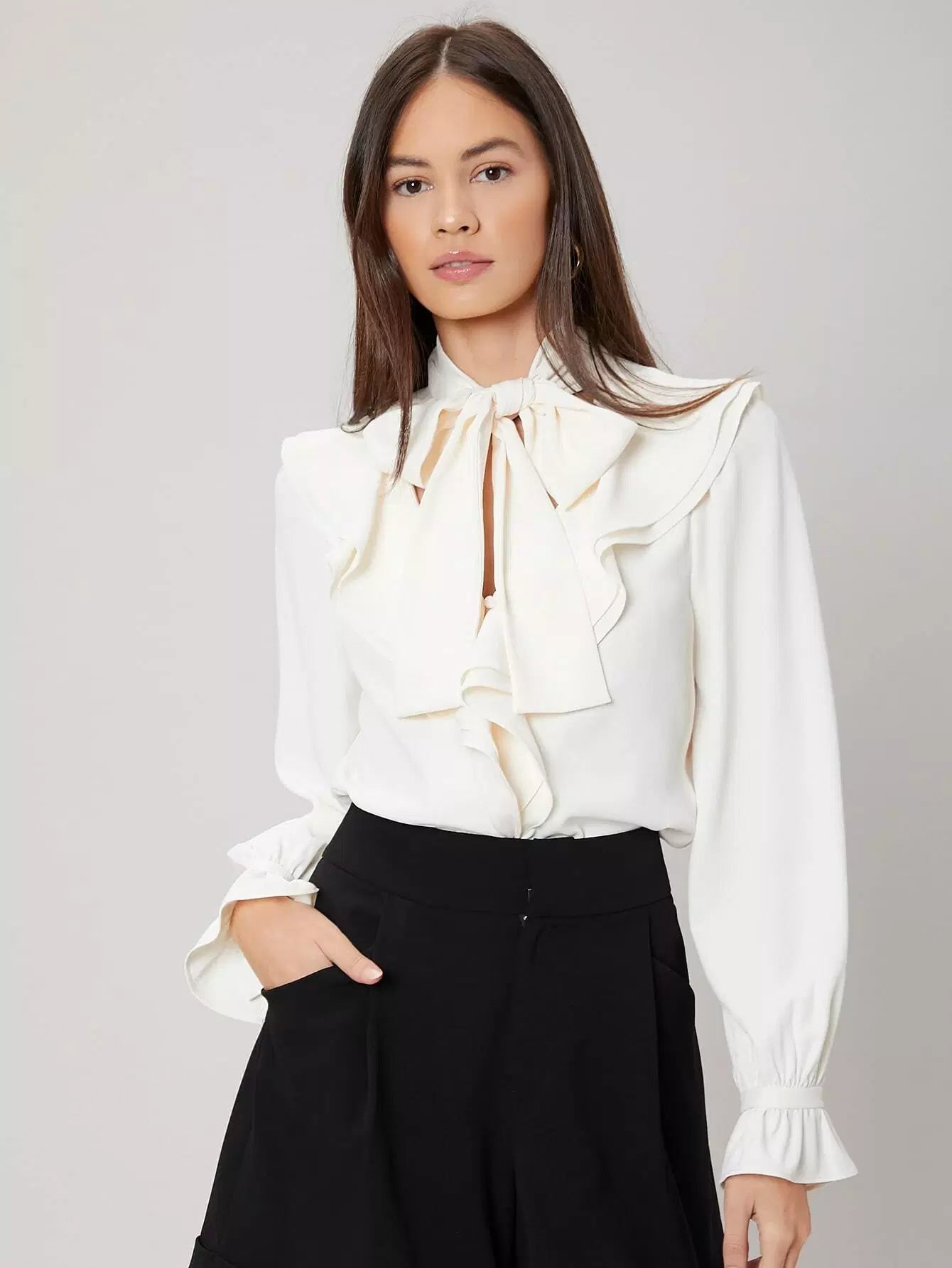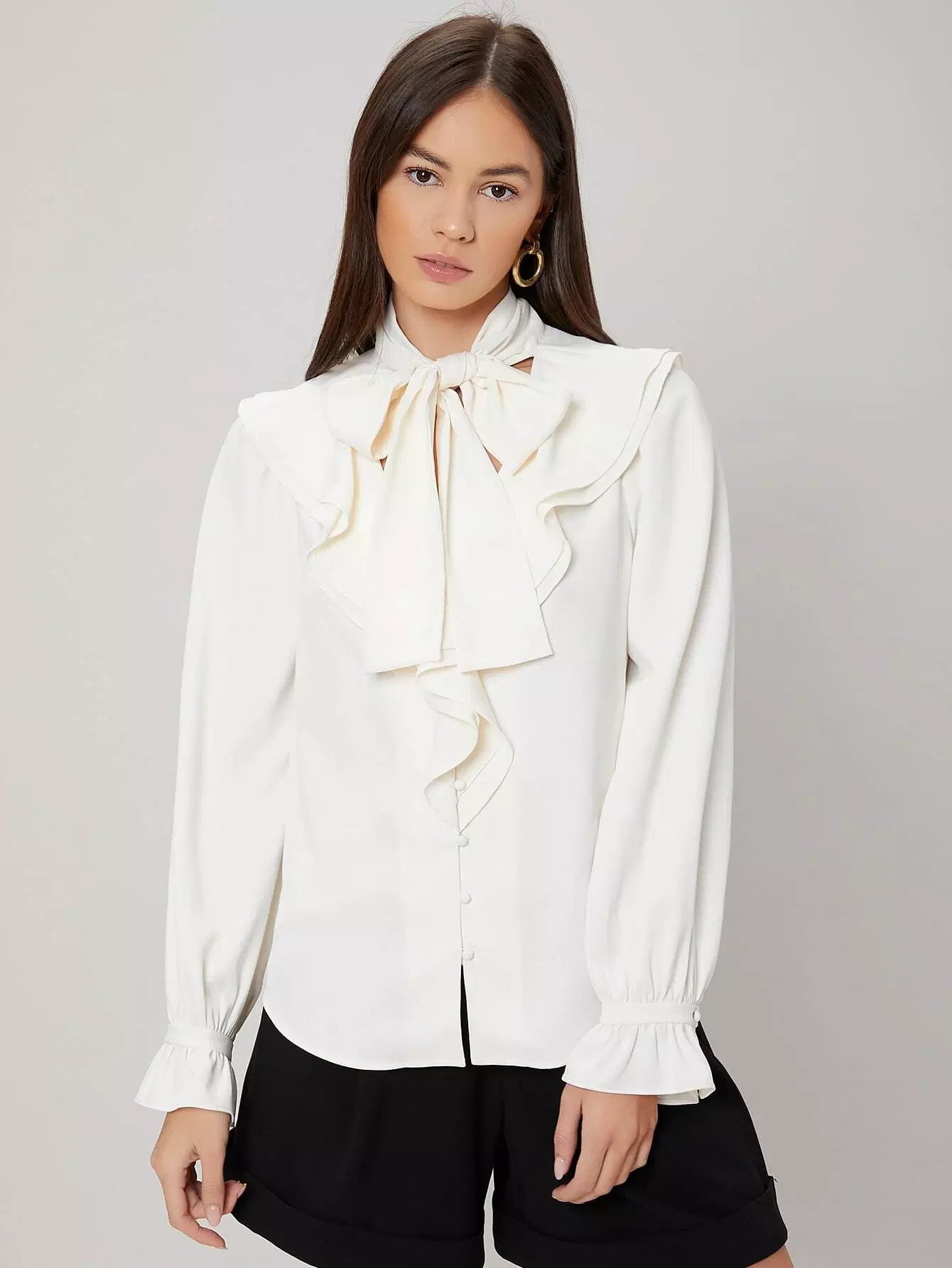 بلوزة بياقة مستقيمة بربطة عنق مستقيمة