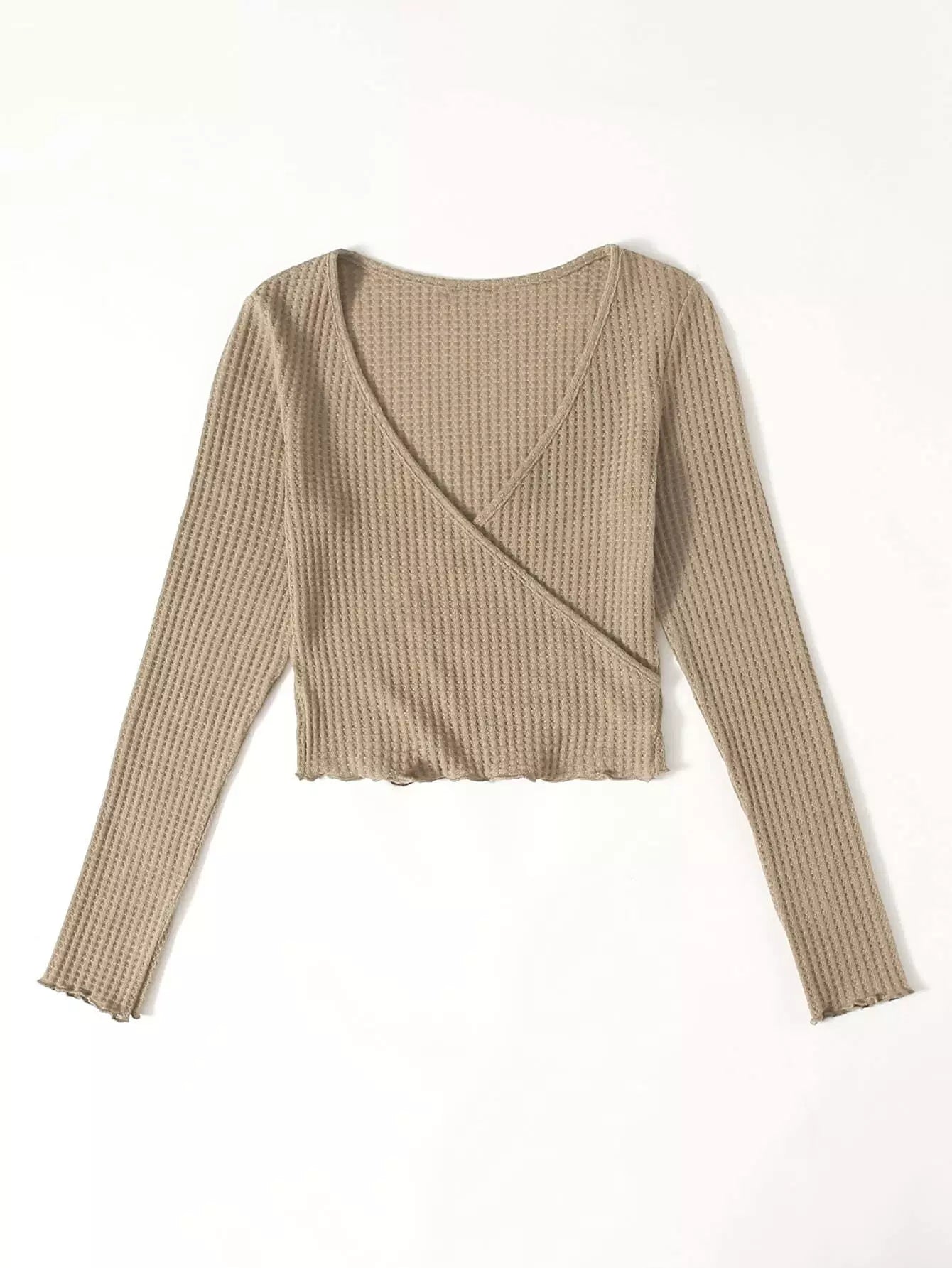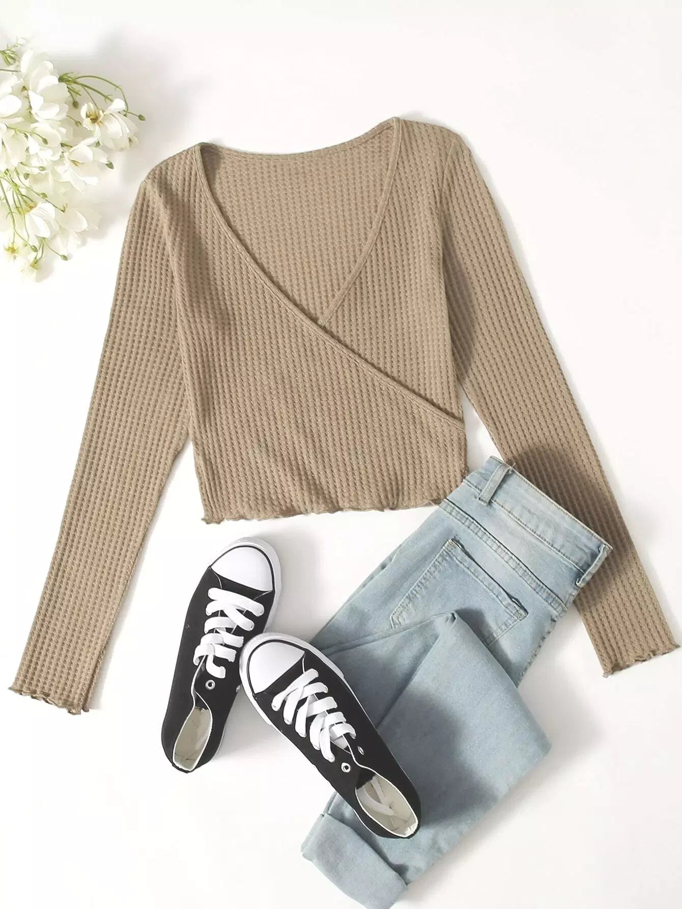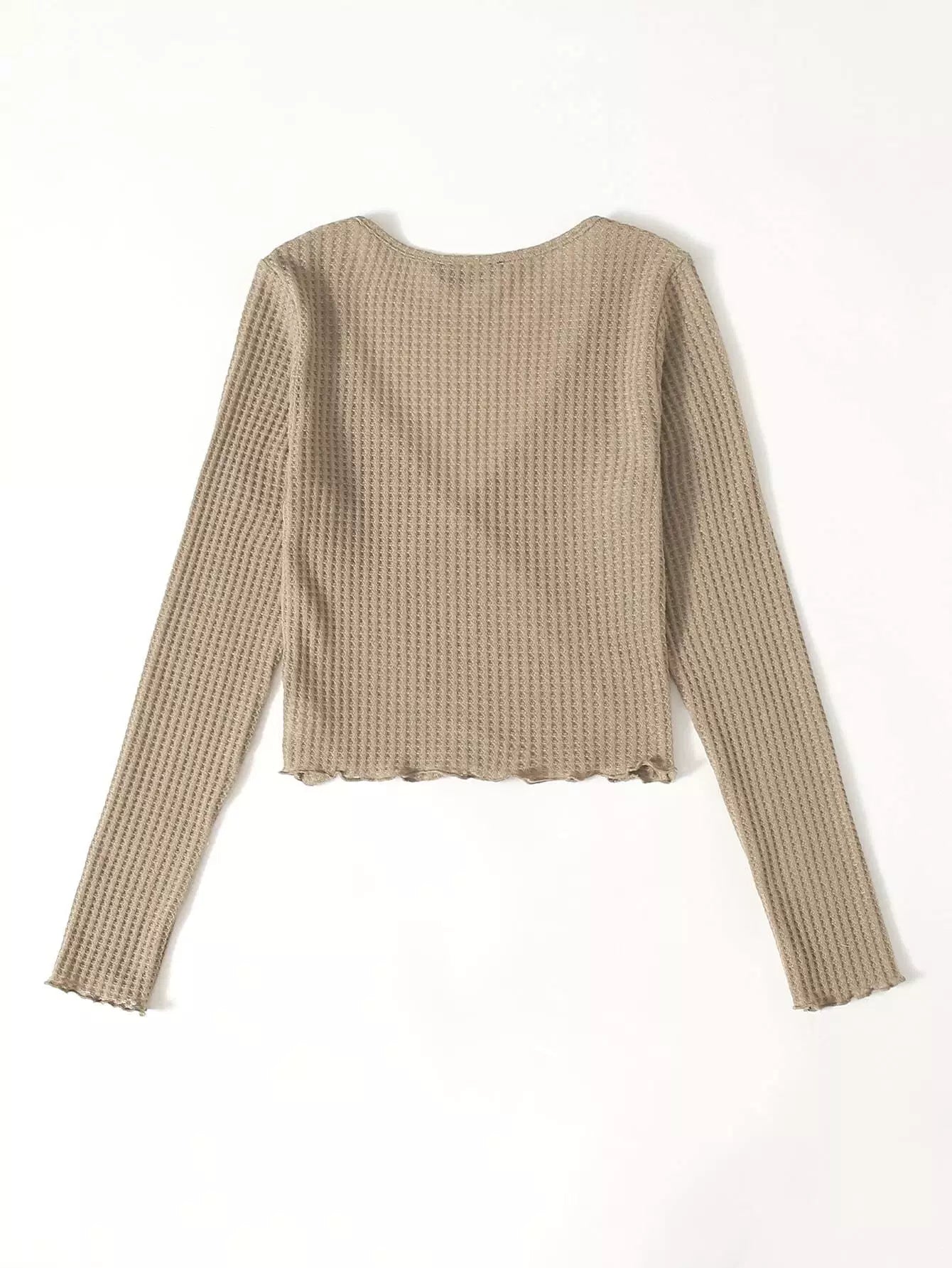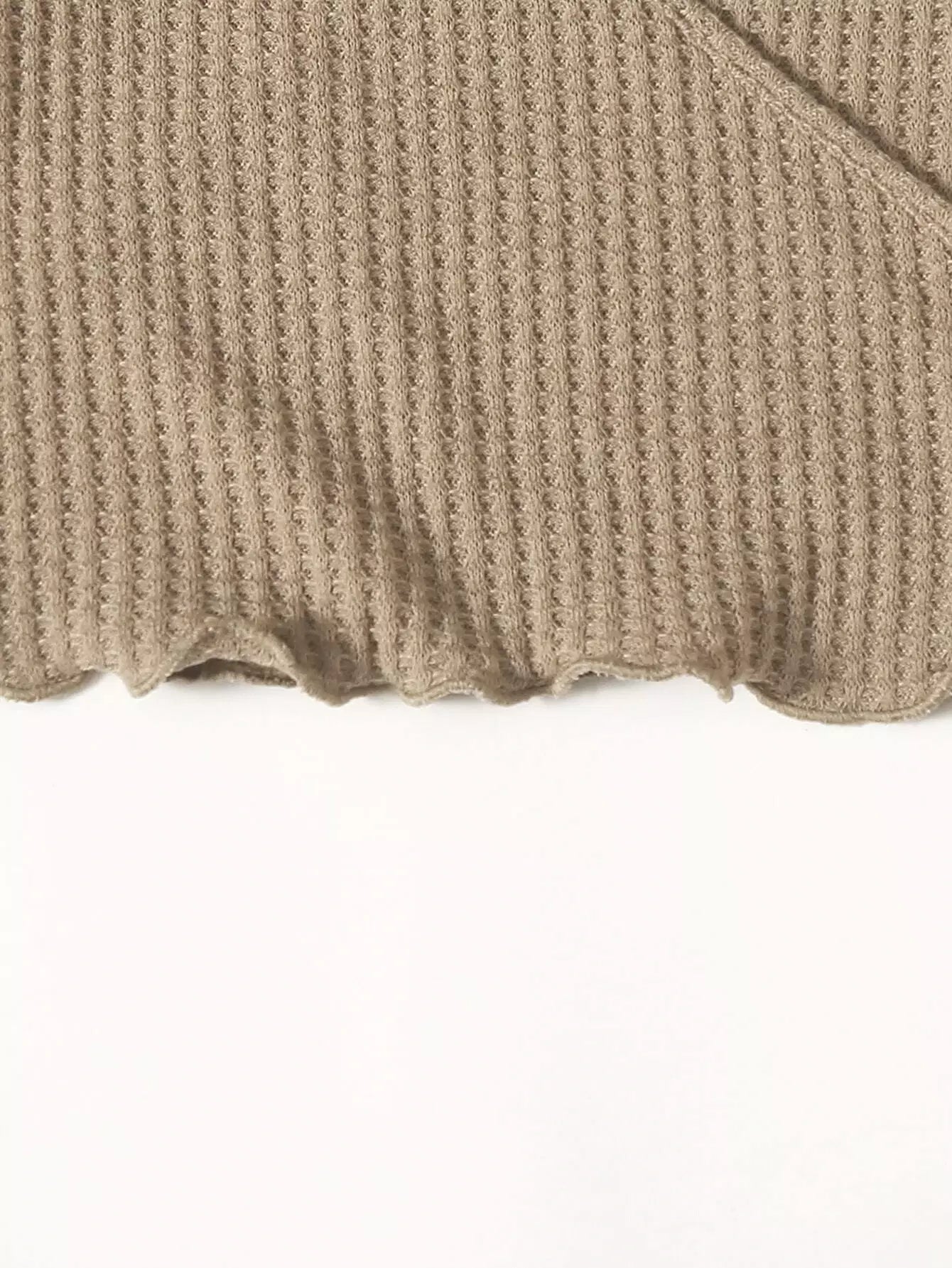 بلوزة محبوكة بياقة برباط برقبة منفوشة بحواف من الخس