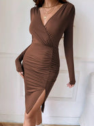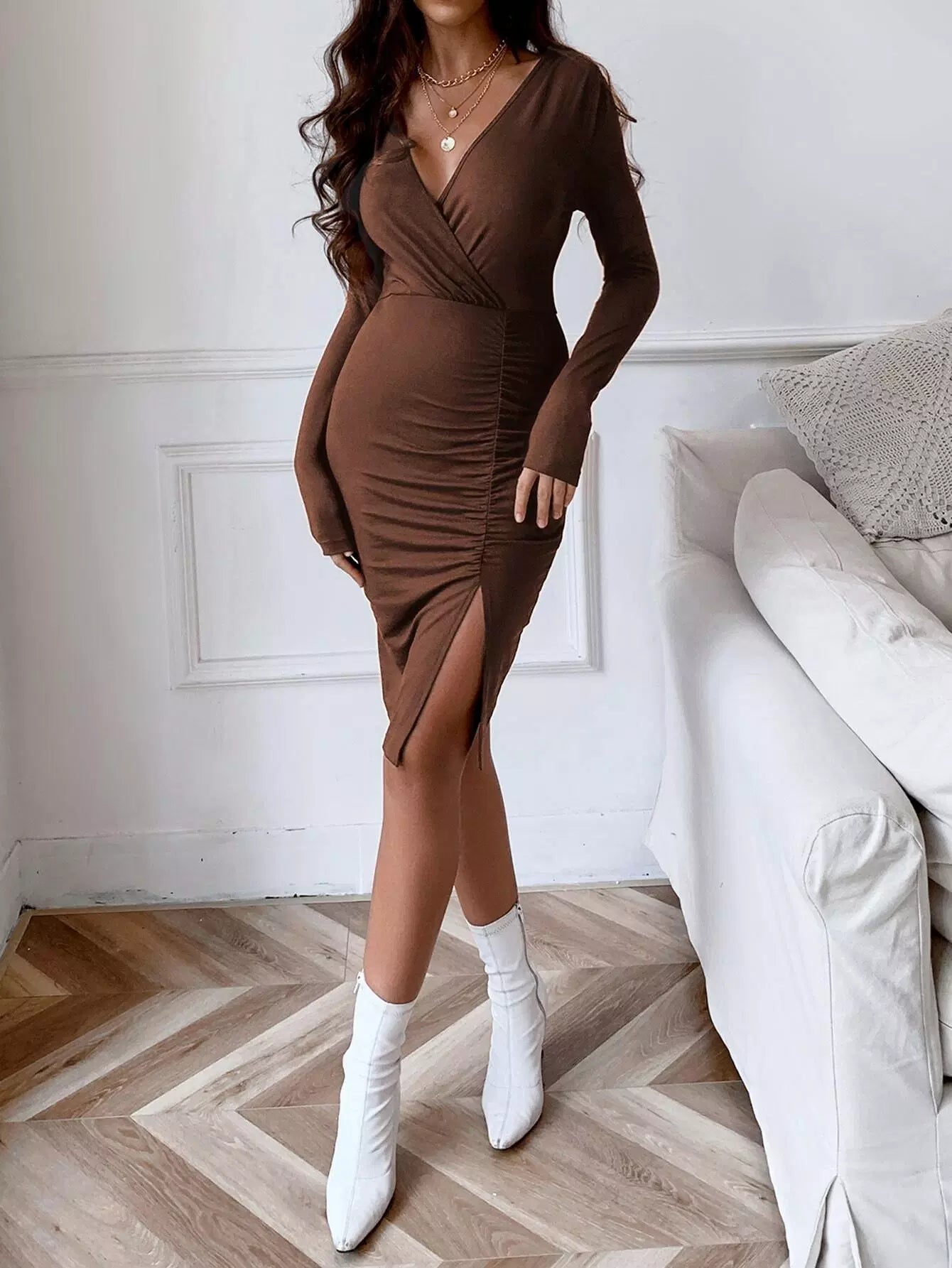 فستان بوديكون برقبة كشكش بفتحة جانبية منقسمة على الجانبين