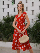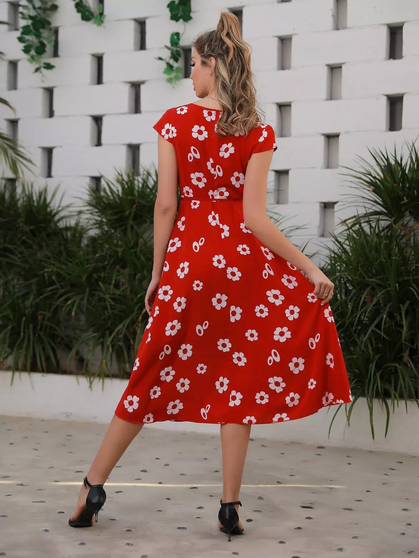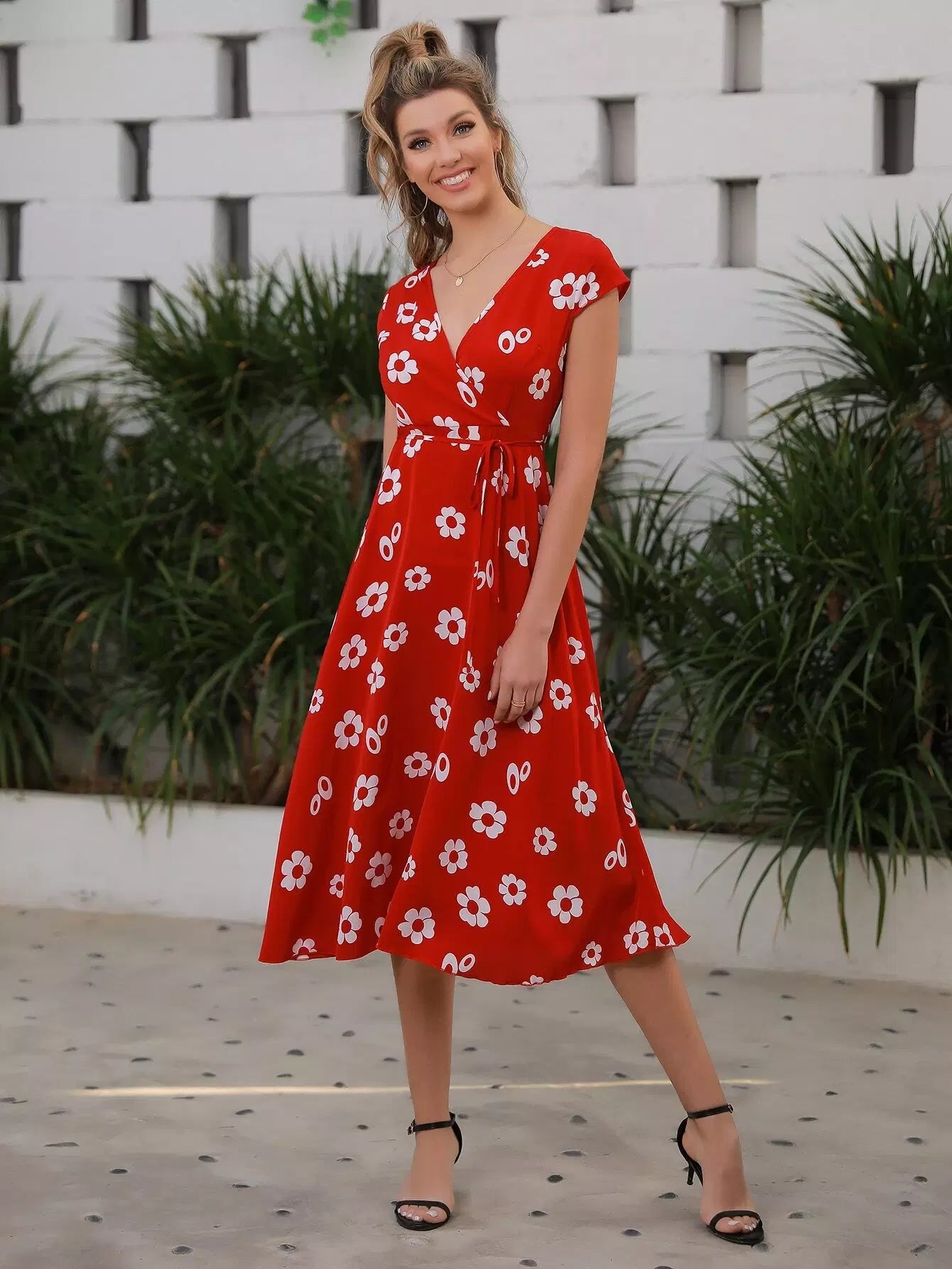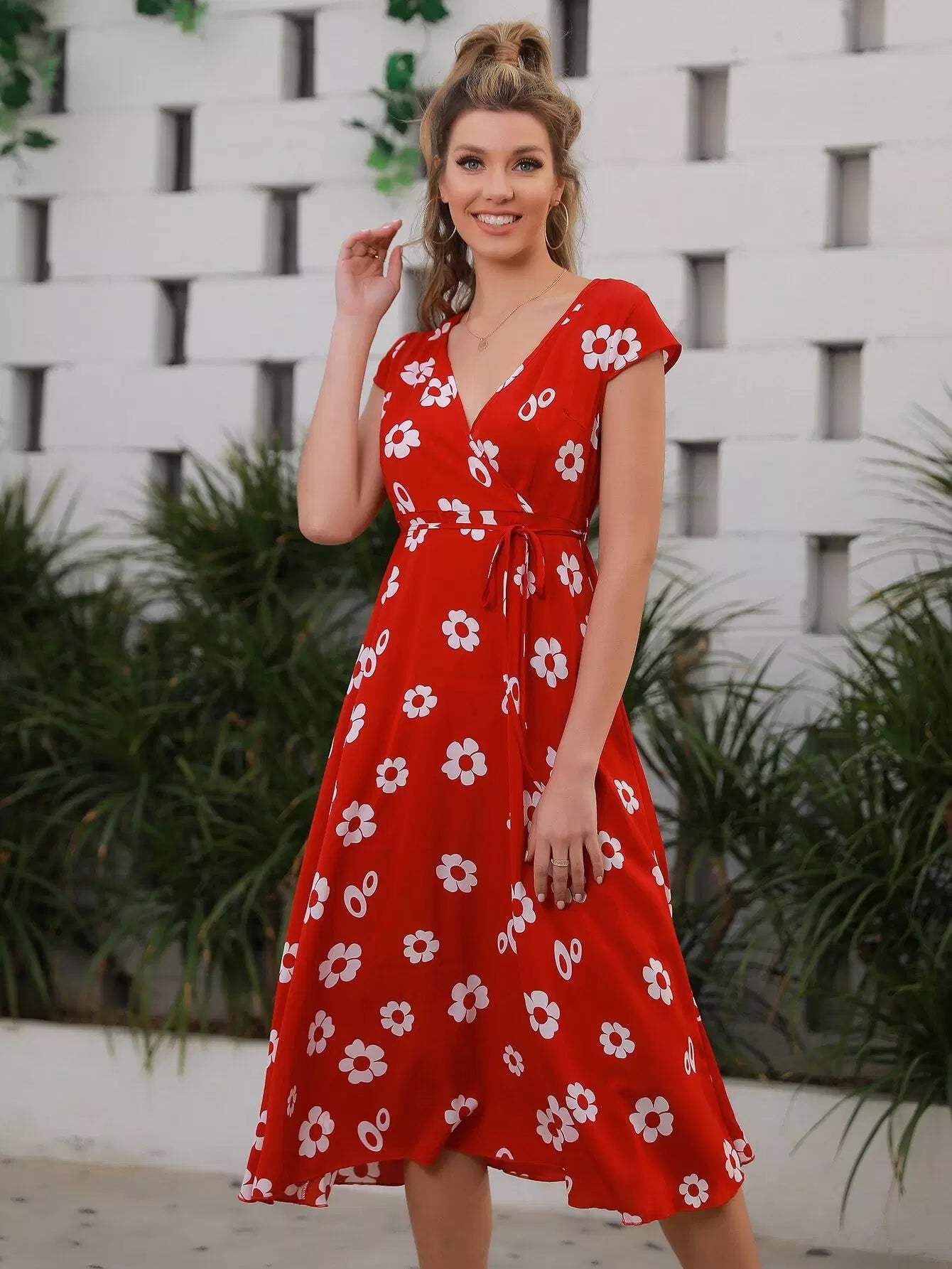 فستان من الزهور ذات الرقبة Surplice بدون حزام