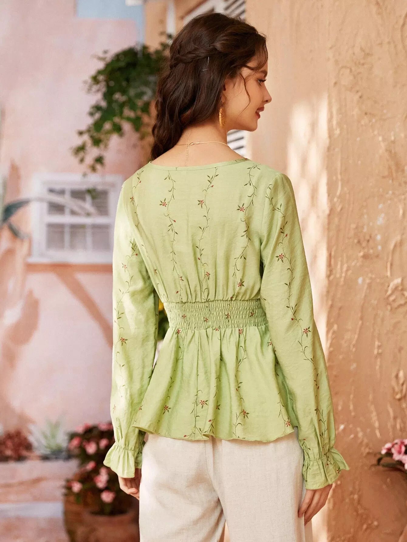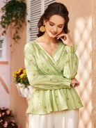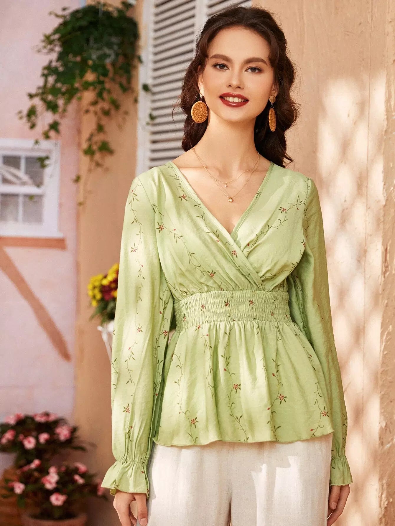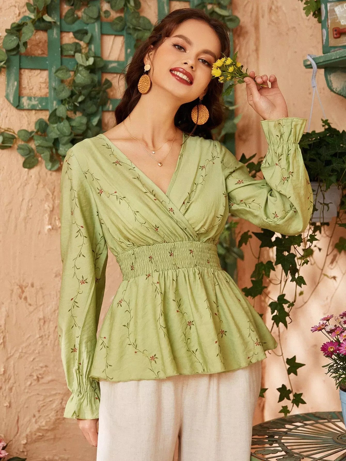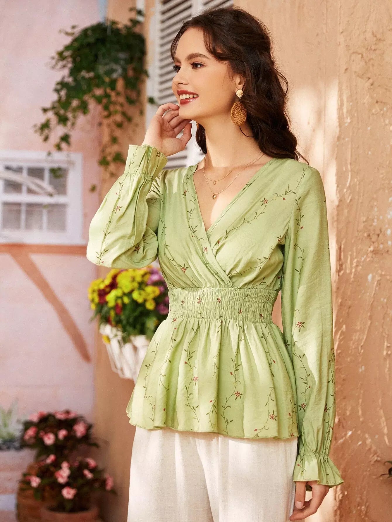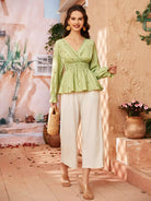 بلوزة ببلوم مكشكشة عند الرقبة وخصر مجعد
