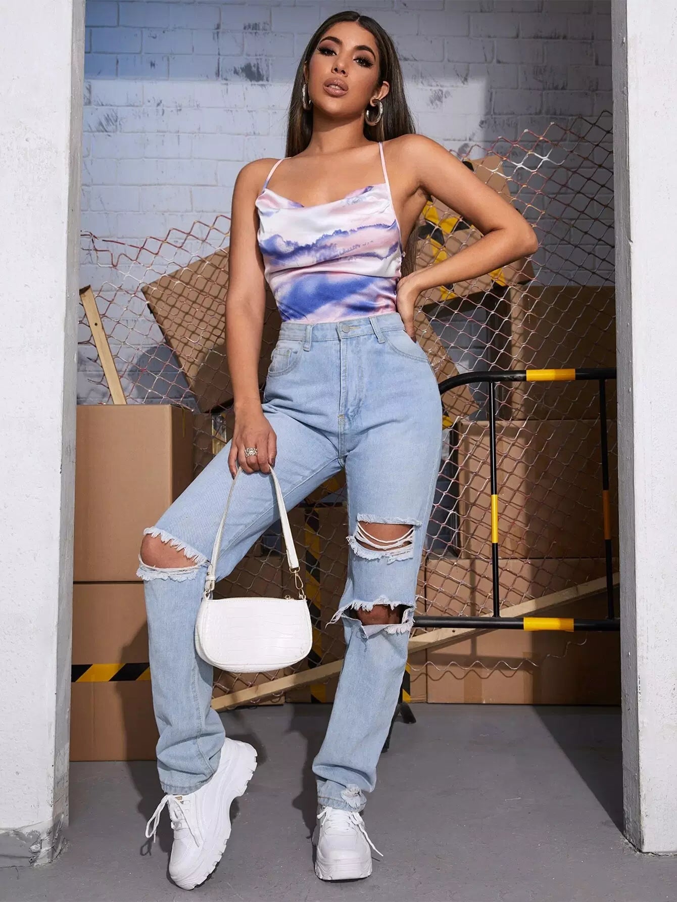 للنساء - بلوزة كامي بدون ظهر بأربطة مصبوغة برباط