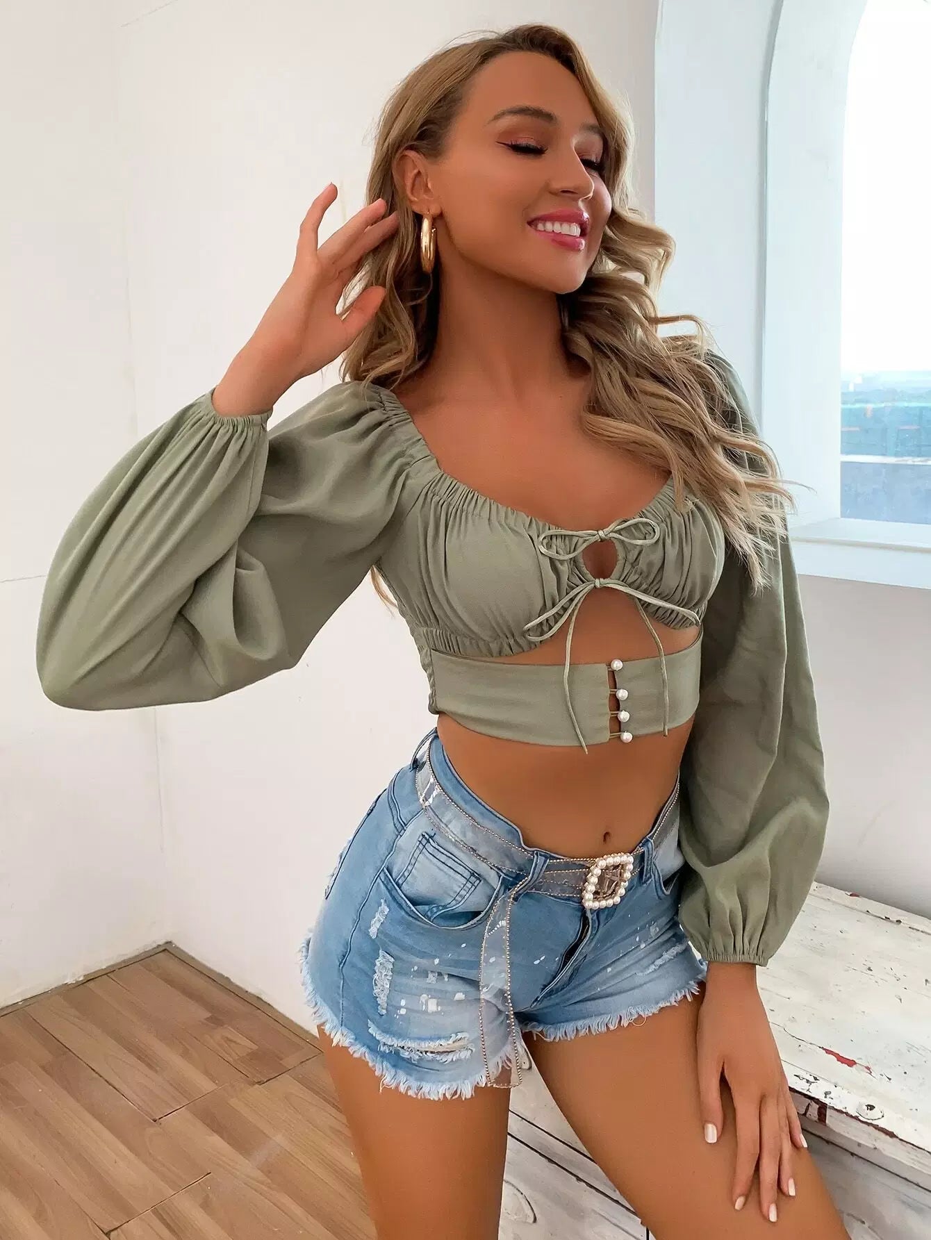 بلوزة بربطة عنق أمامية بشريط من الخلف