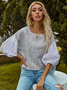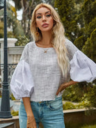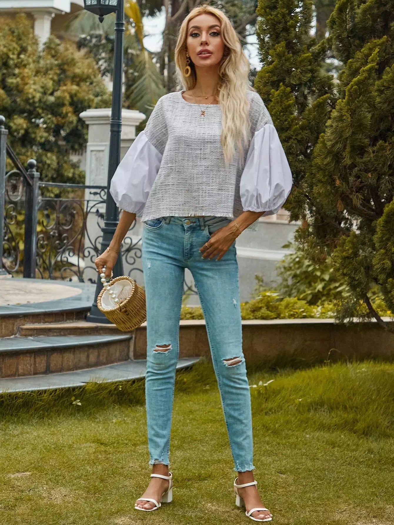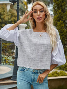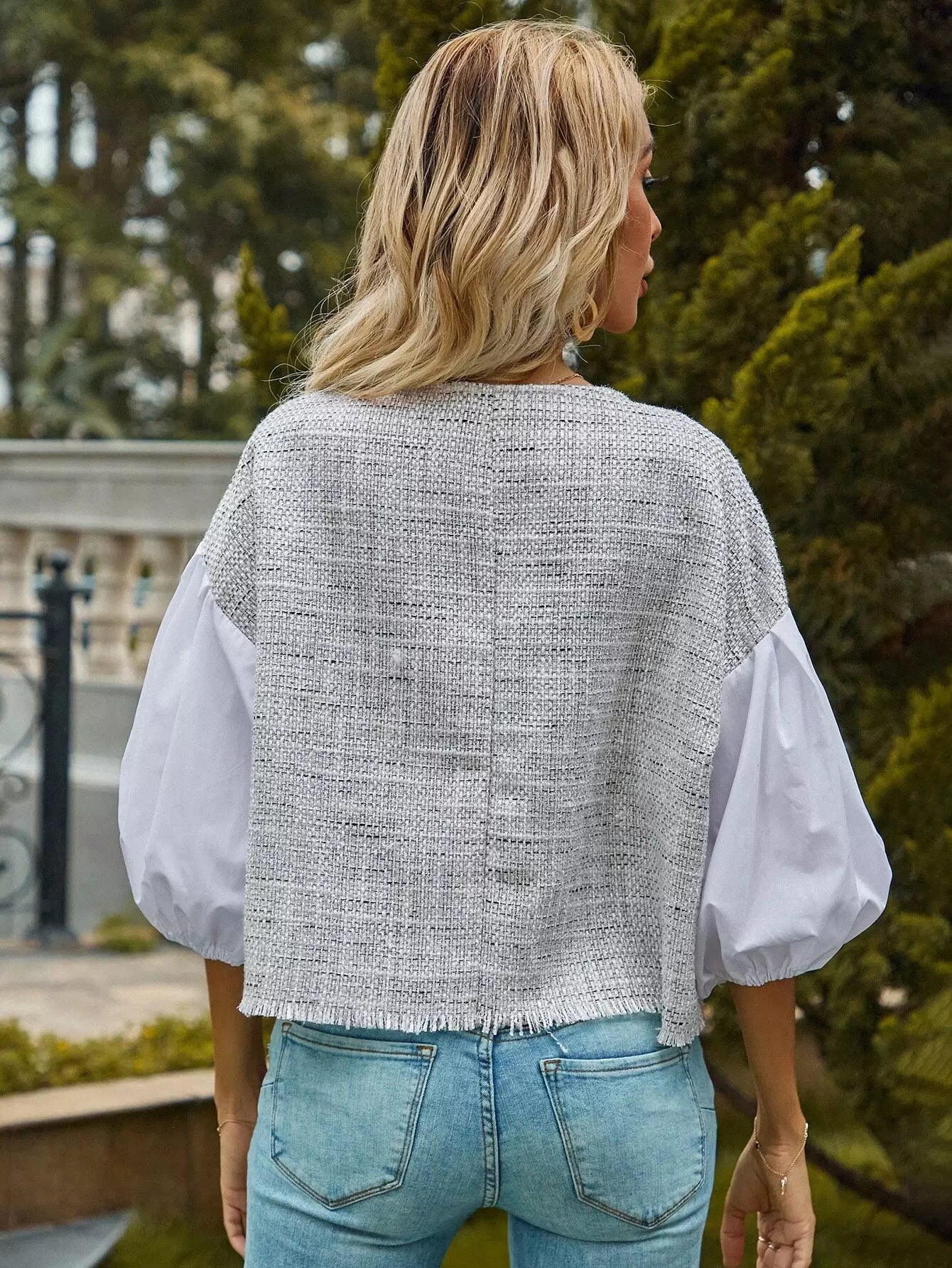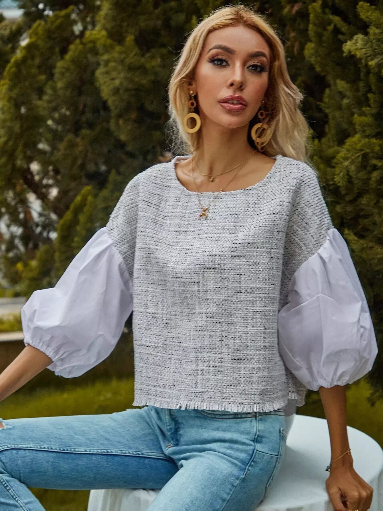 بلوزة بأكمام من نسيج التويد بحاشية من التويد