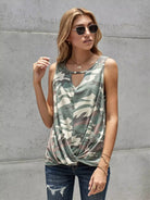 قميص بدون أكمام بطبعة كامو بحافة ملتوية
