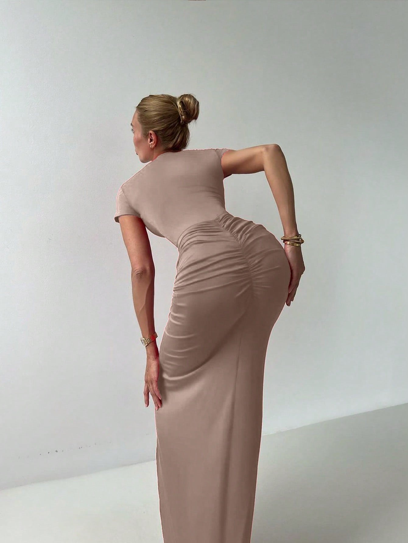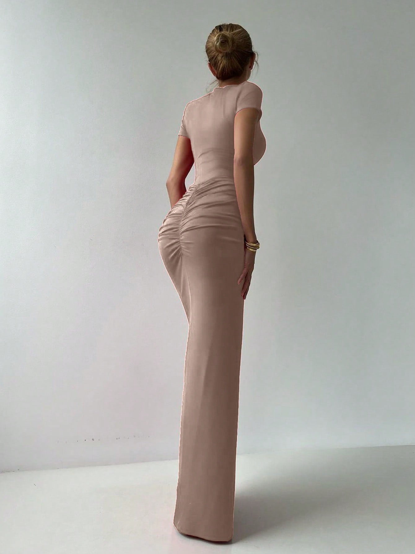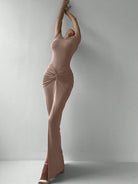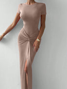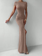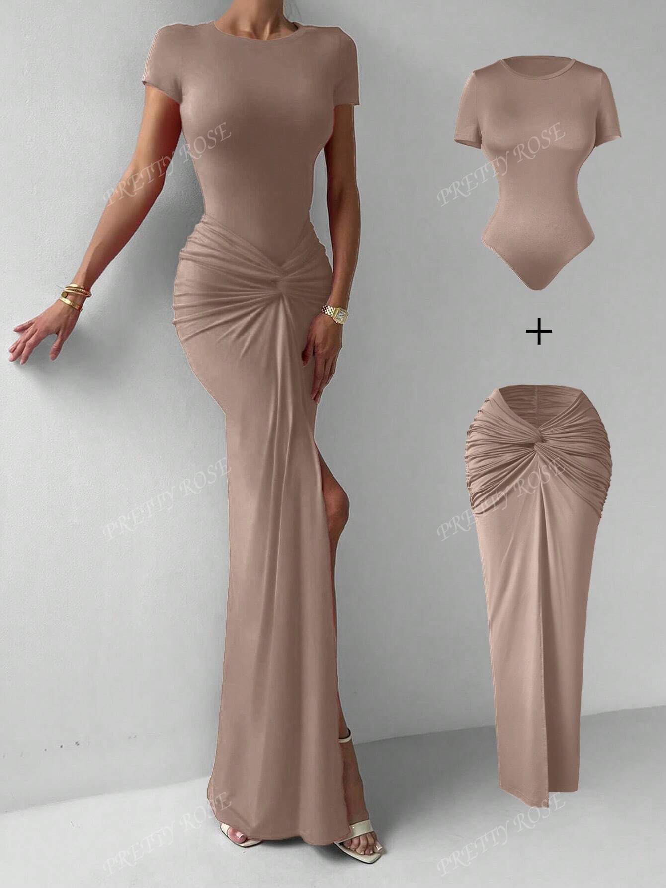 Women 2Pcs Elegant Red Fitted High Stretch Valentine's Day Short Sleeve Bodysuit With Ruffle Elastic