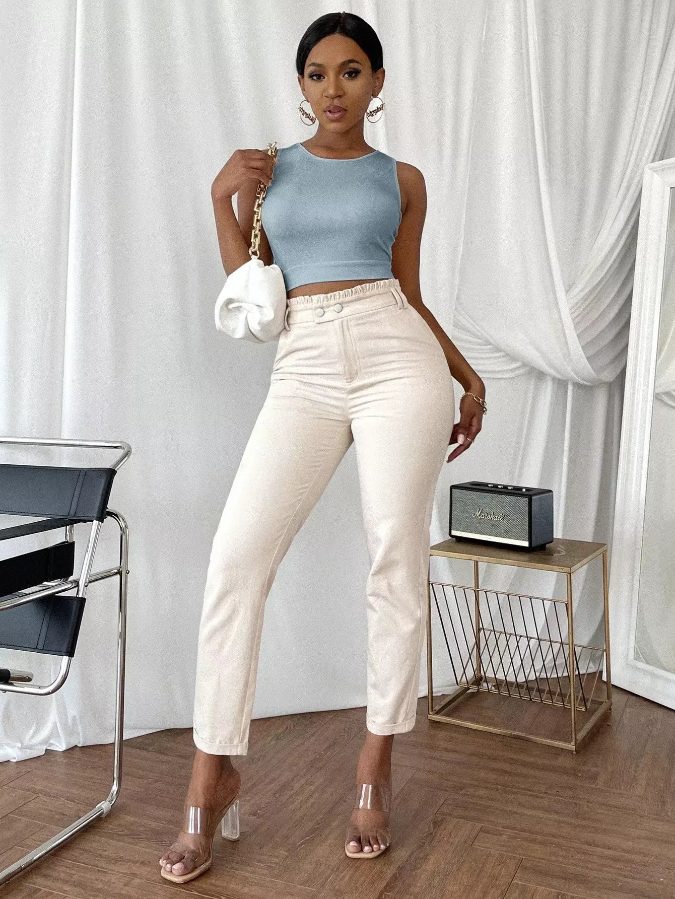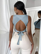 توب قصير بدون أكمام مربوط من الخلف ملفوف برباطات متقاطعة