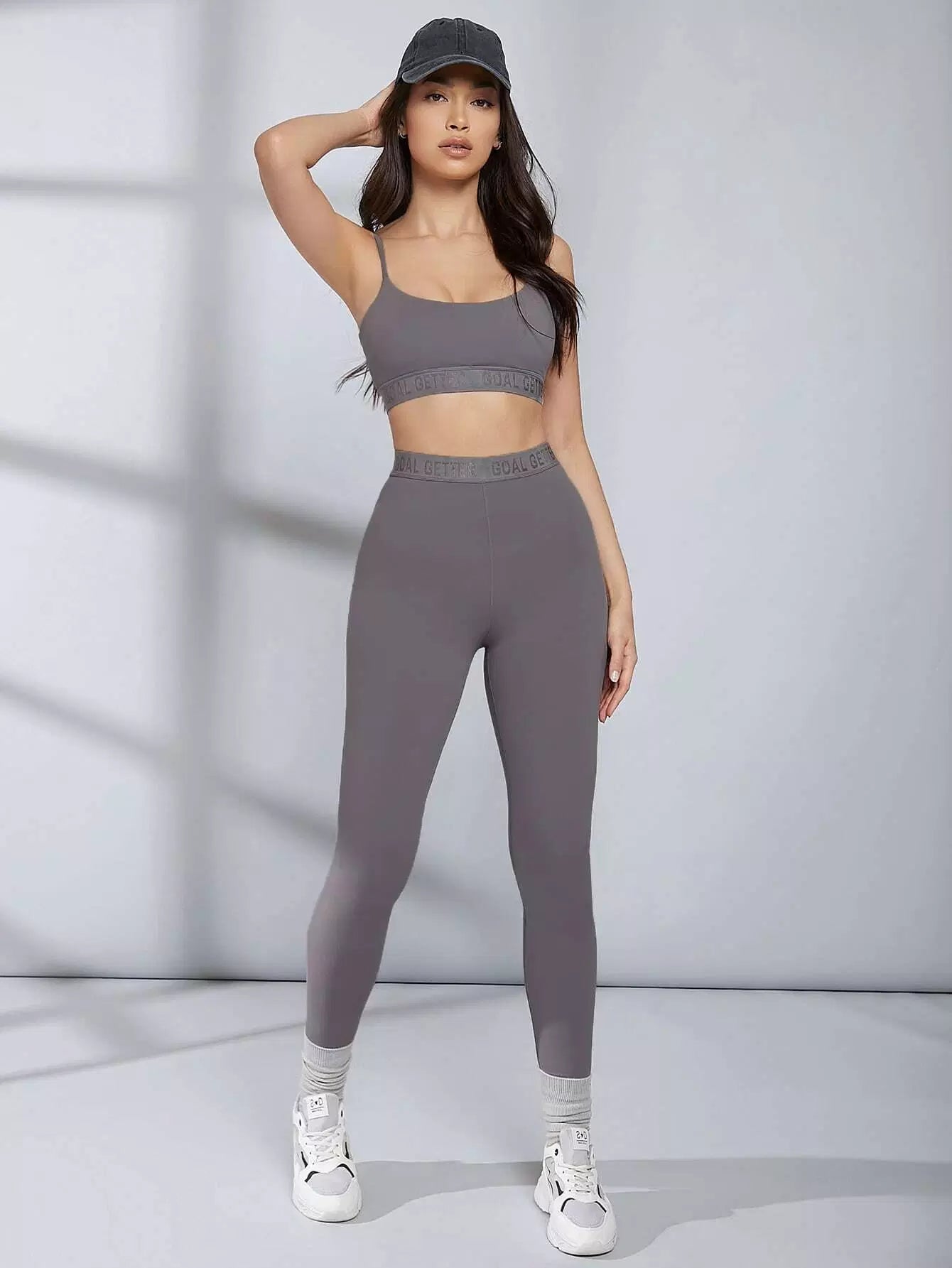 1 قطعة بنطال ضيق رياضي بحزام خصر بحرف واحد