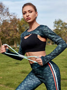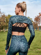 تي شيرت رياضي بقصّة قصيرة مسامية ممتصة للعرق وقابلة للتنفس بفتحة إبهام بدون حمالة صدر
