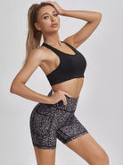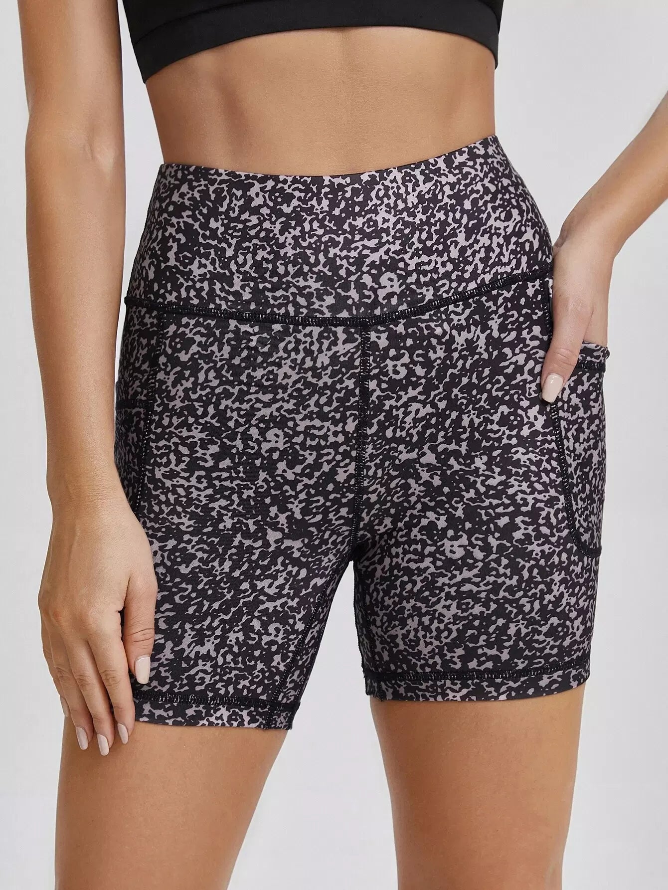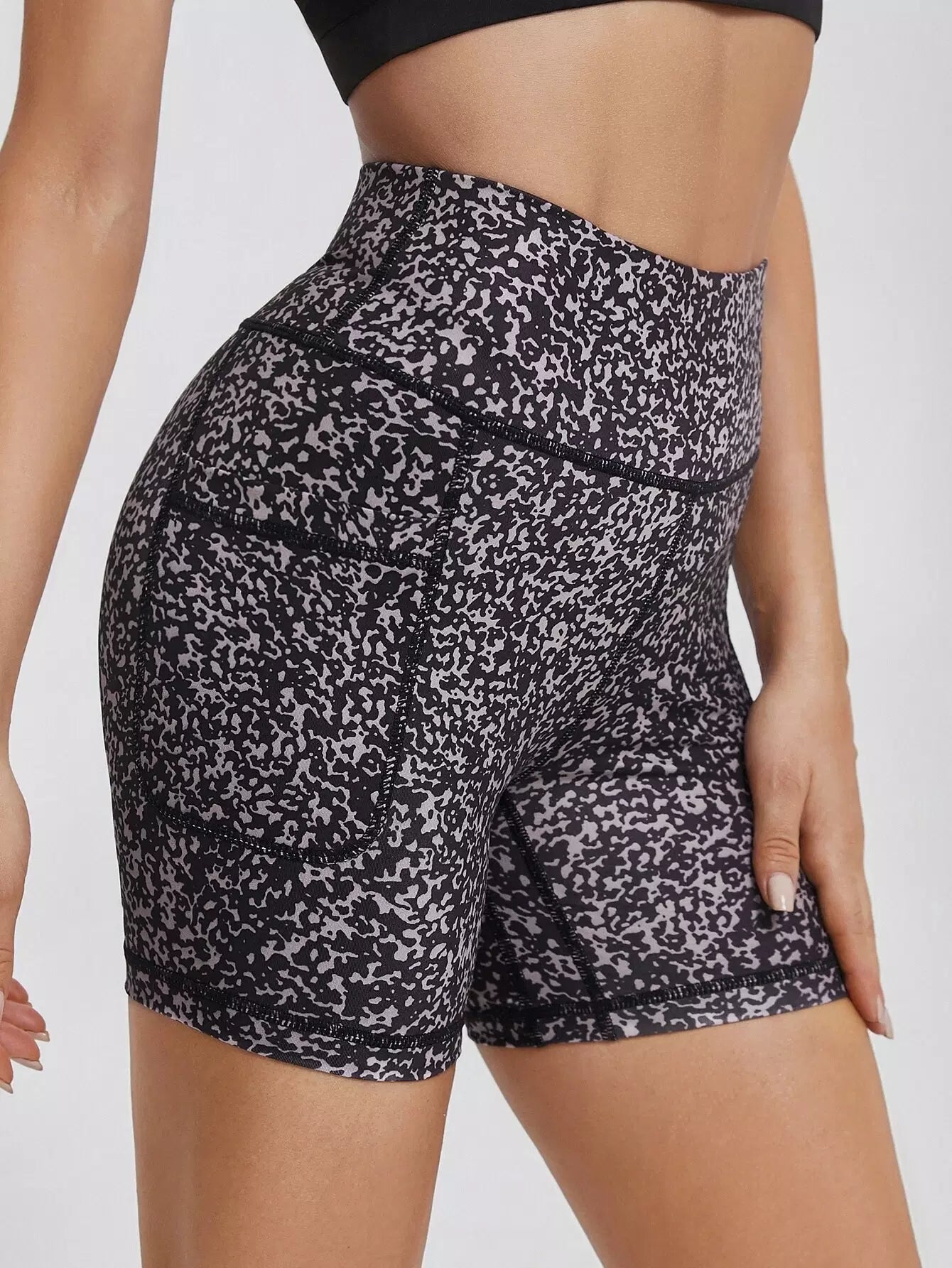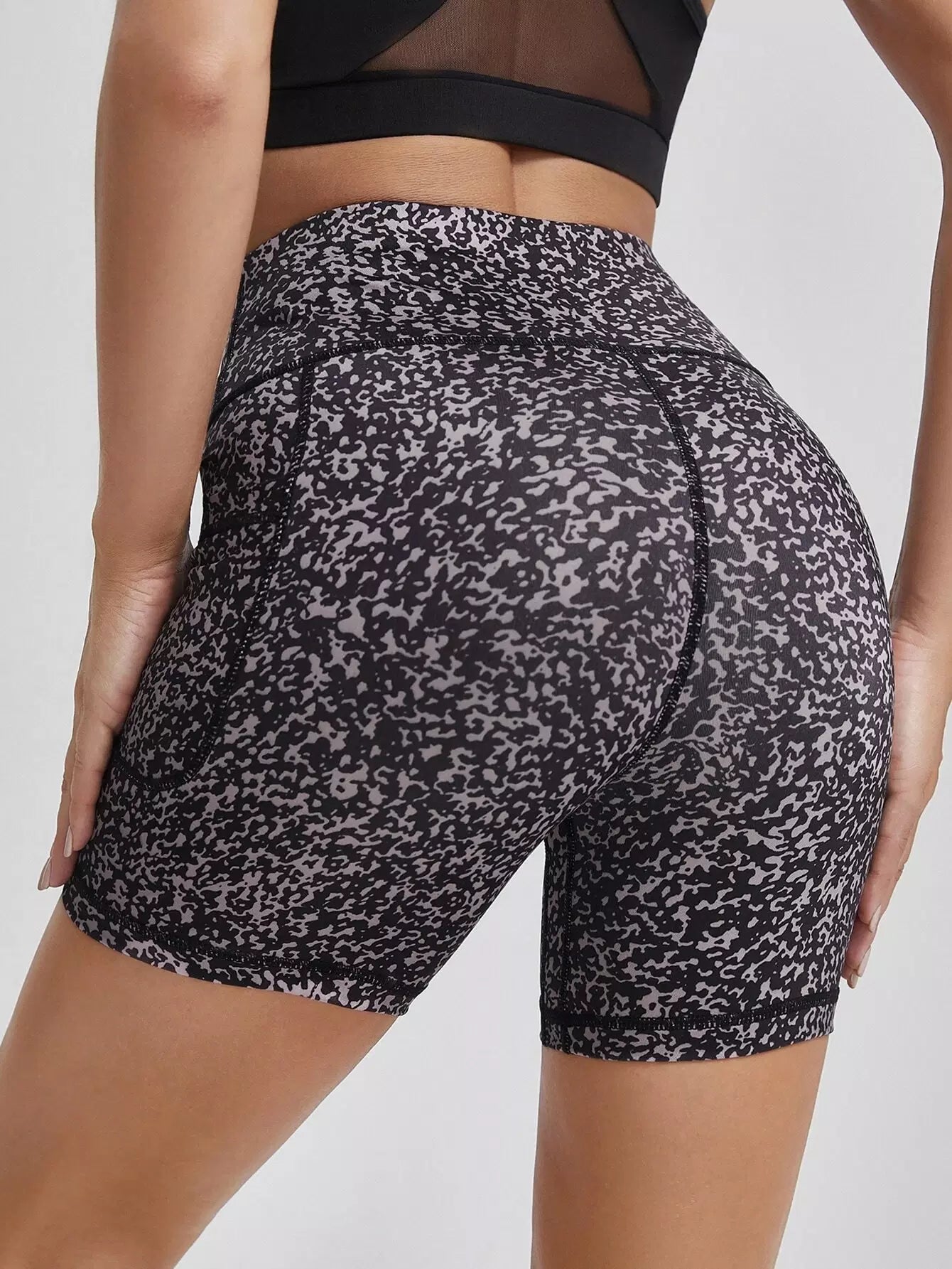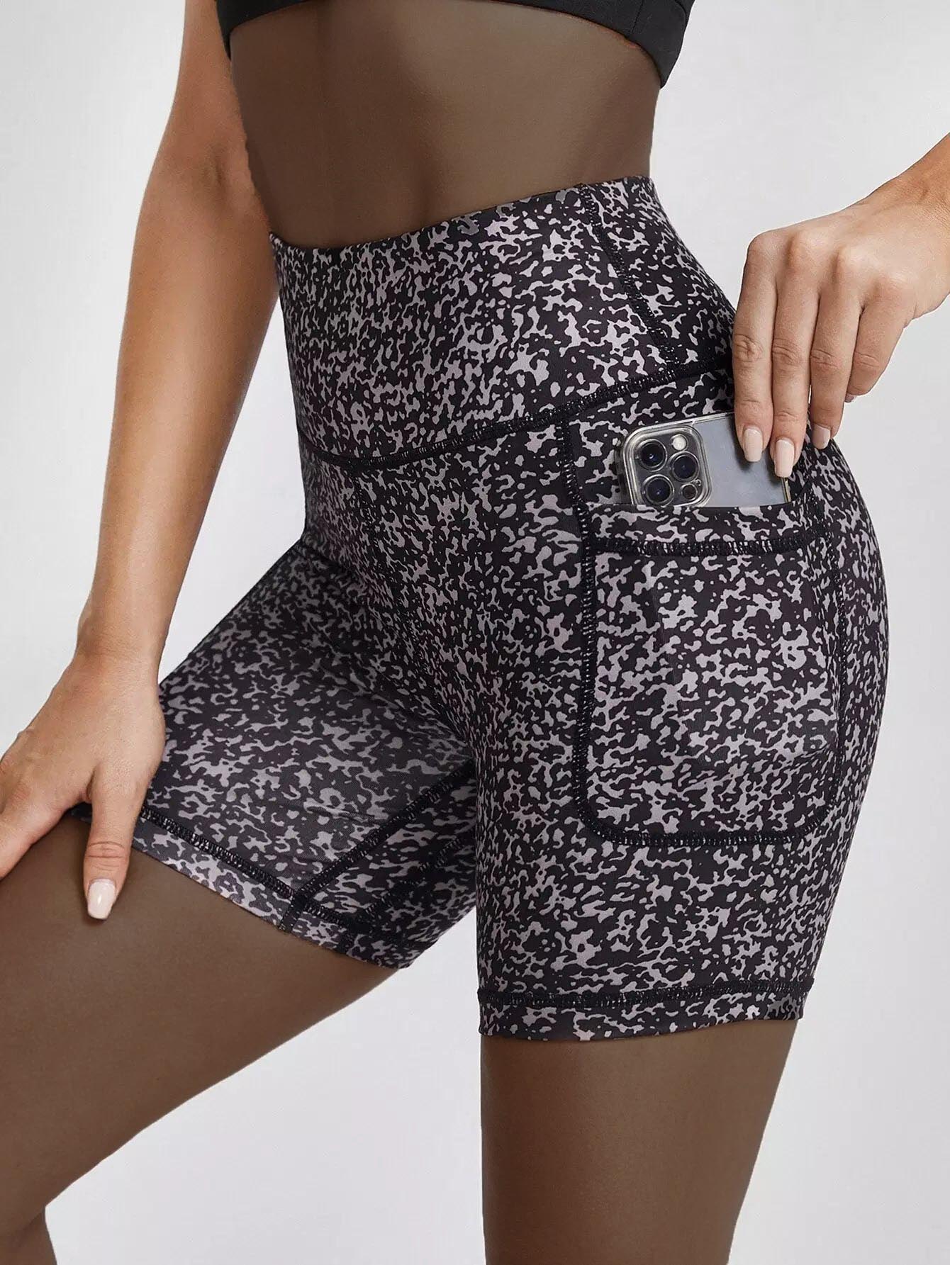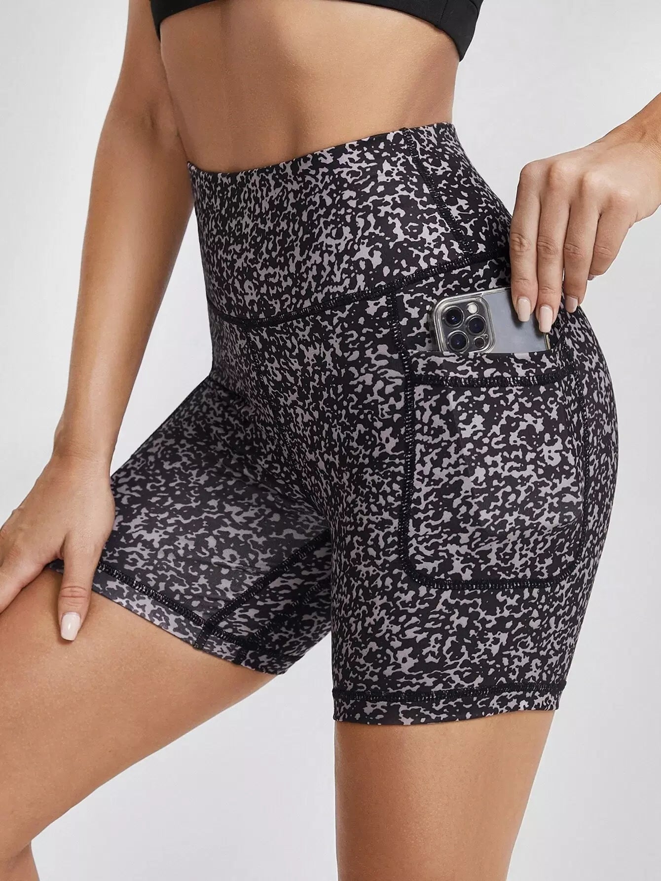 شورت رياضي عريض الخصر مطبوع عليه بالكامل مع جيب للهاتف