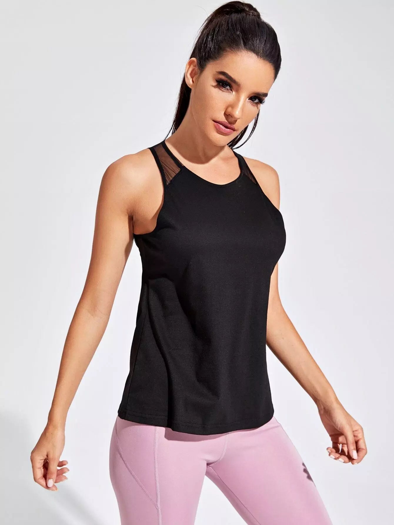 تانك رياضي شبكي بلون متباين عاري الظهر