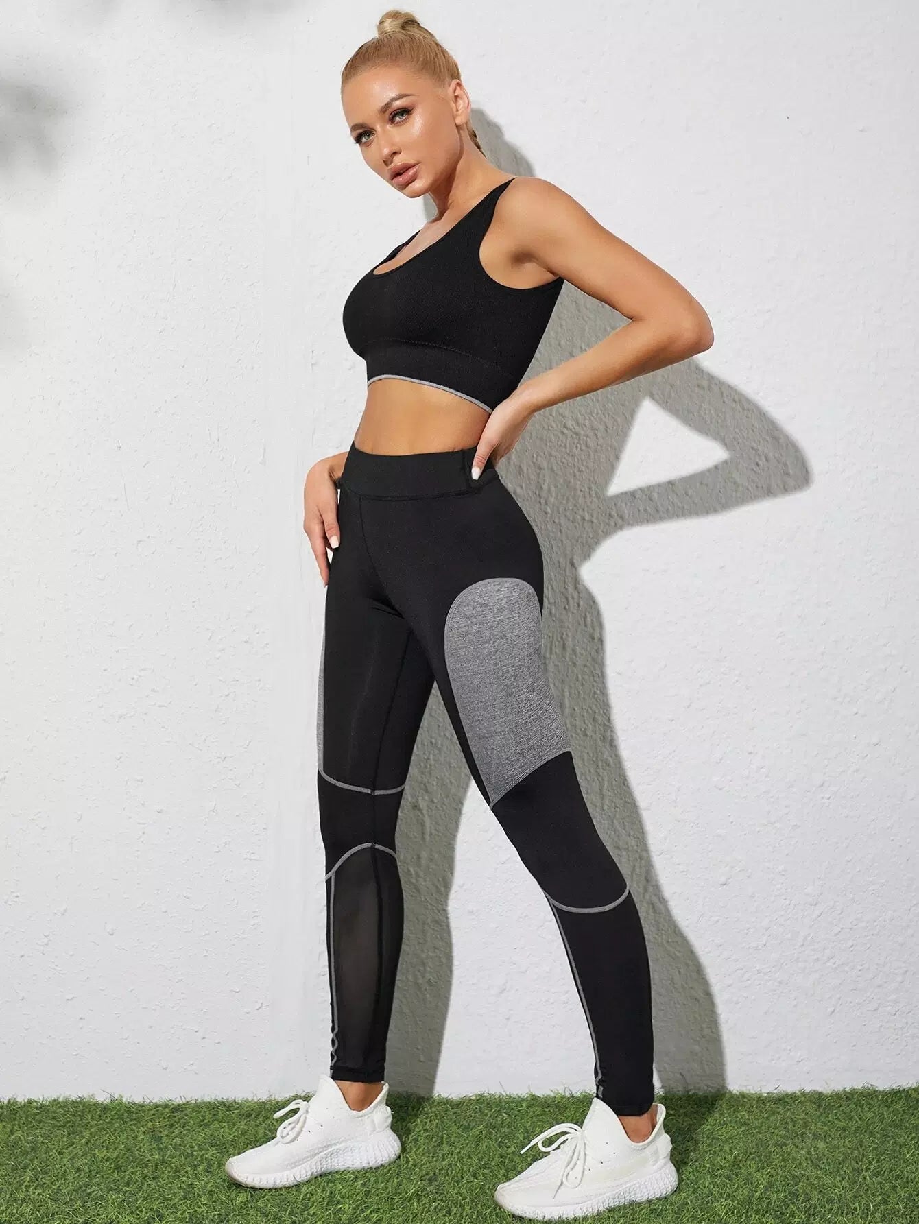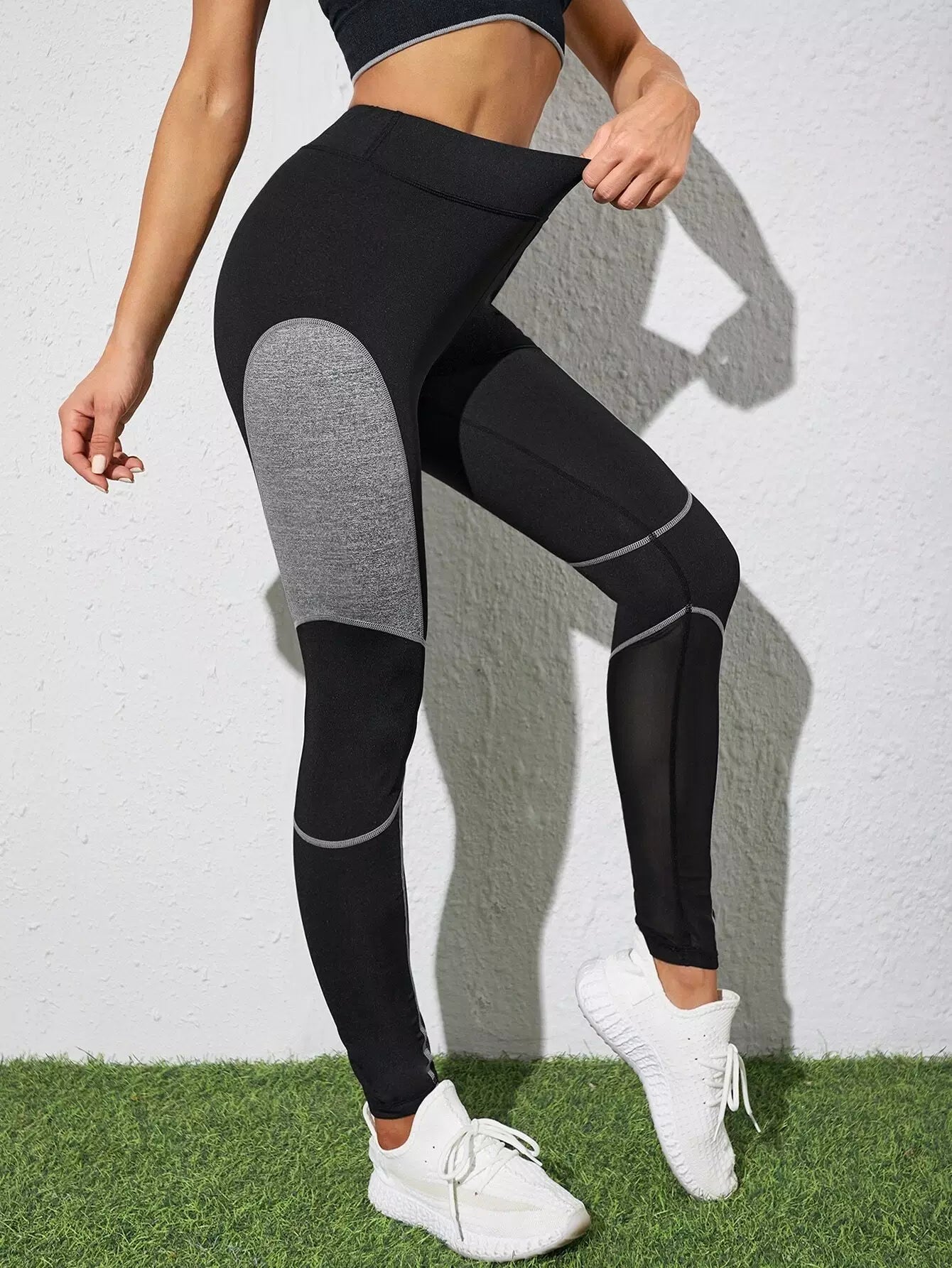 بنطلون ضيق رياضي بخياطة شبكية متباينة من الأعلى