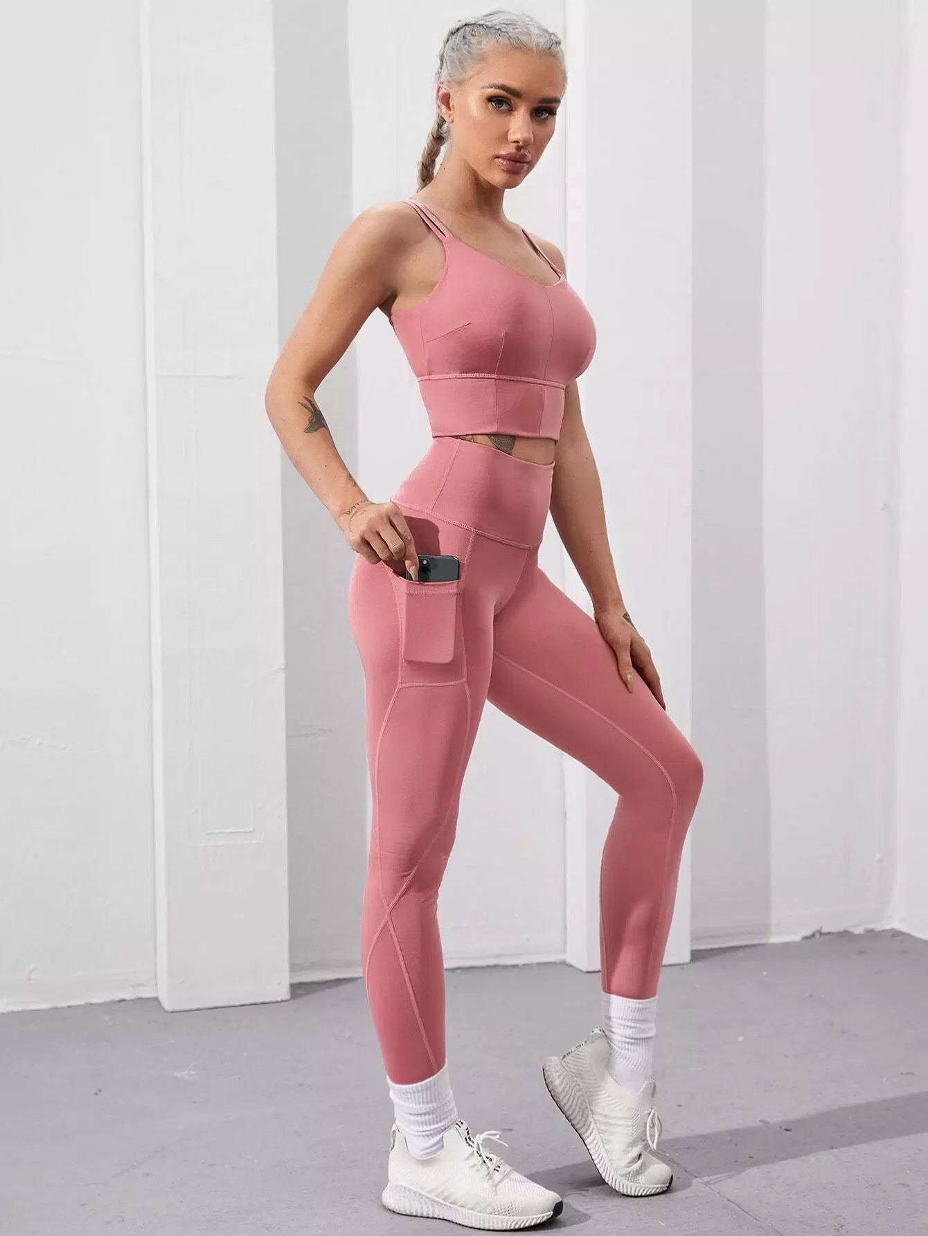 حمالة صدر رياضية على شكل صليب متقاطع من الخلف مع جيب للهاتف