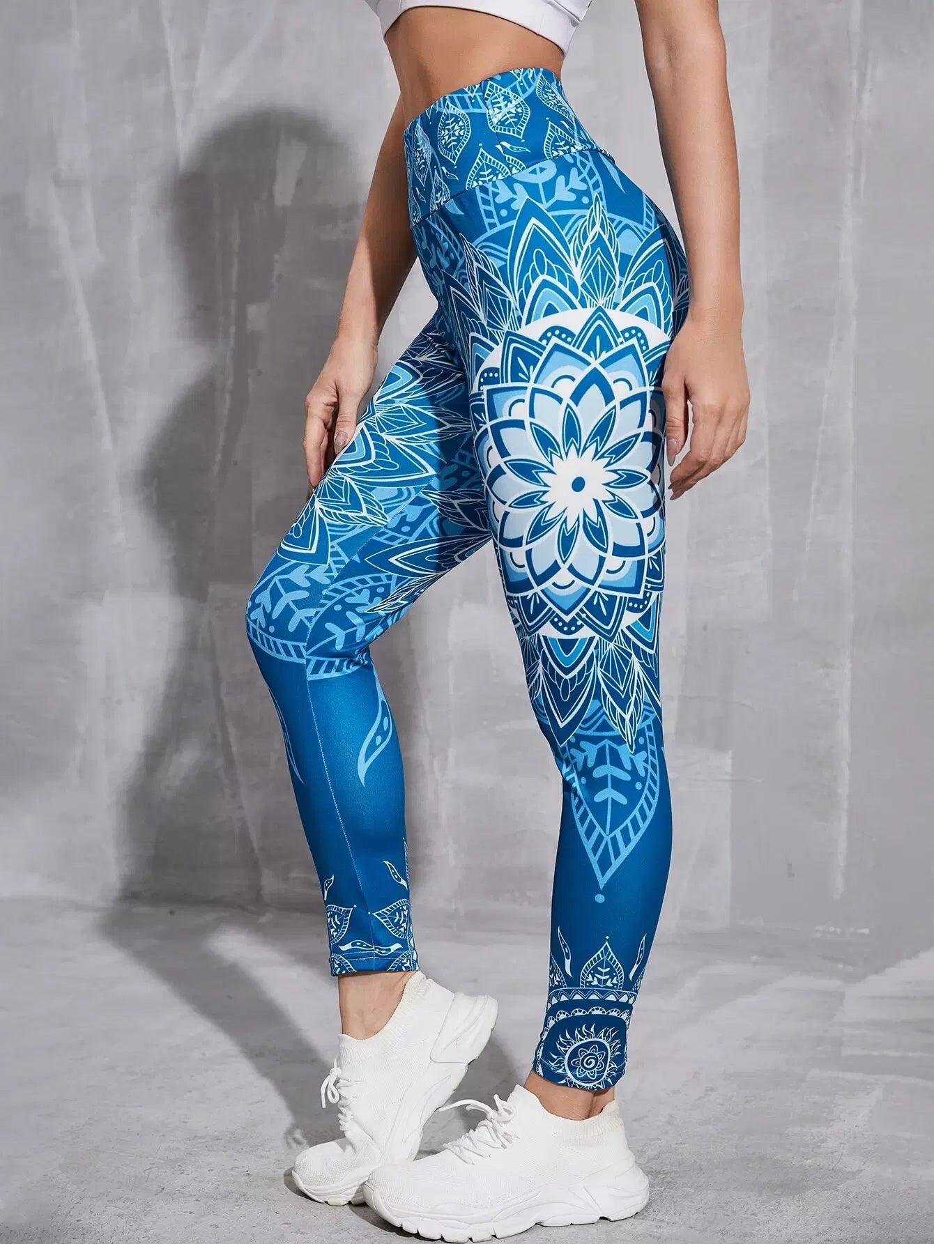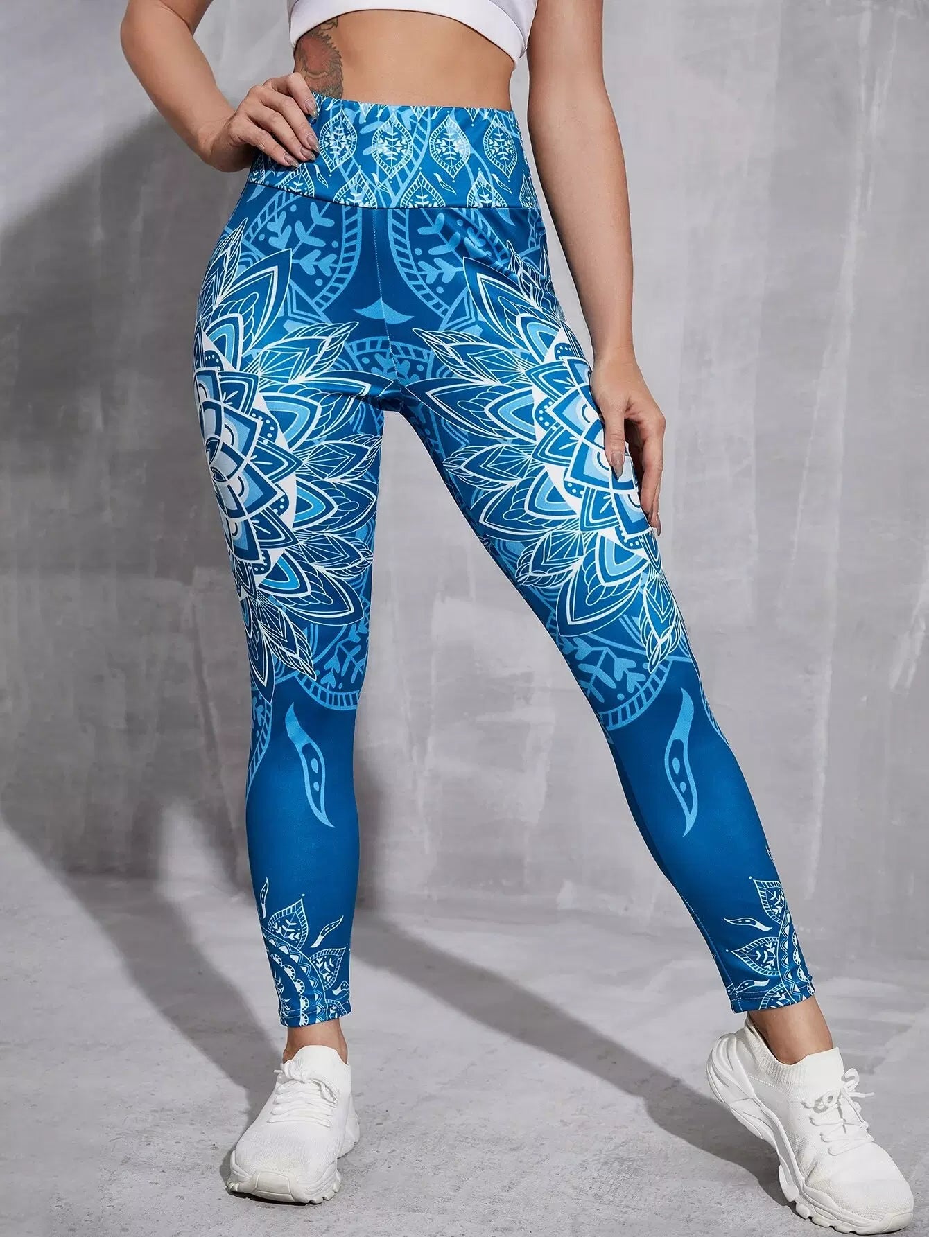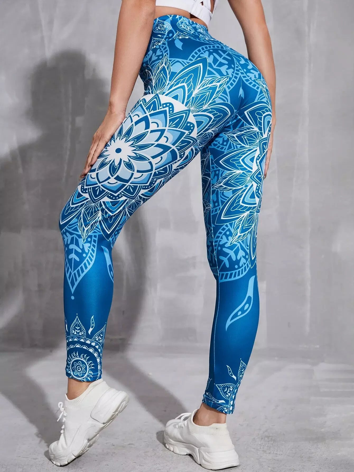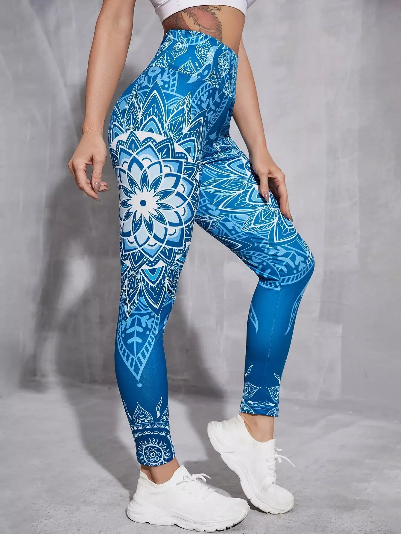 بنطال ضيق رياضي مطاطي مرن للغاية بنقوش زهور