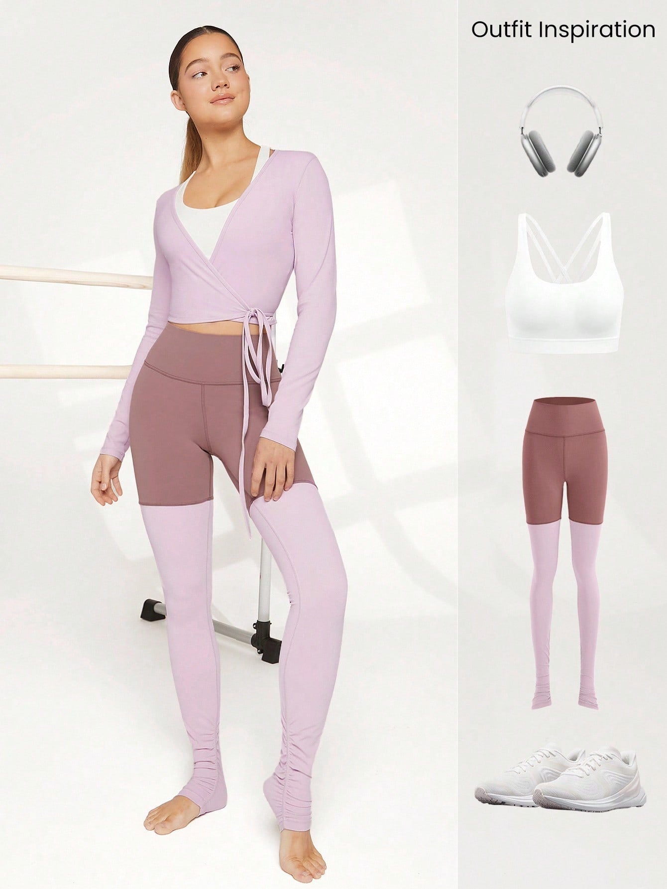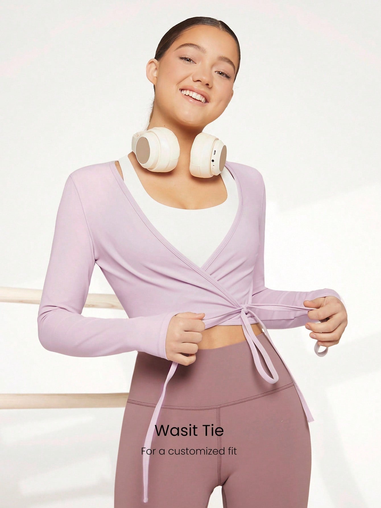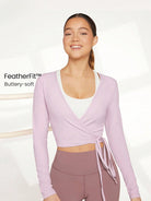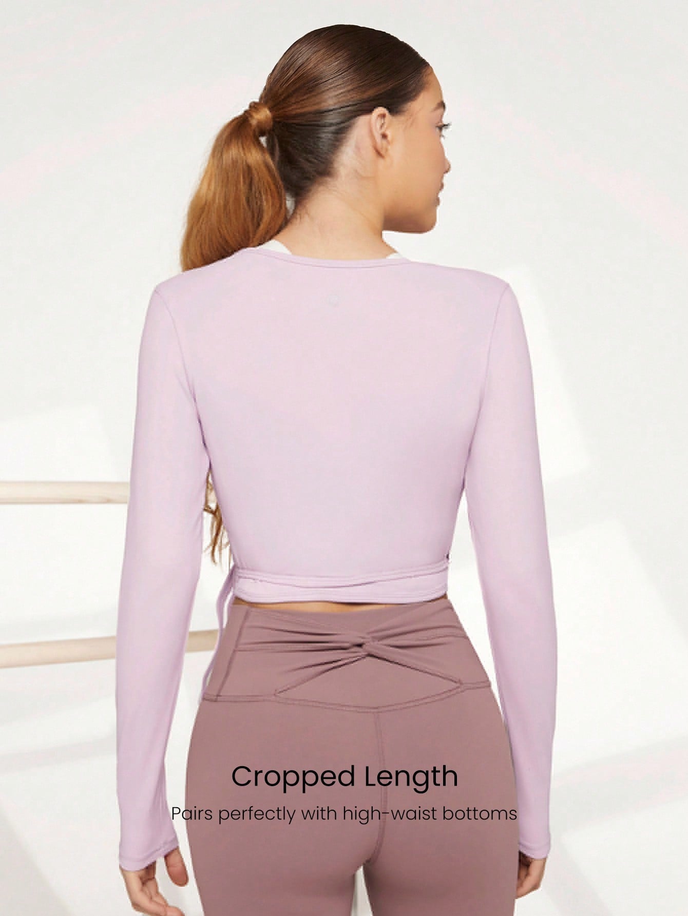 GLOWMODE FeFeatherFitâ„ Tie Waist Wrap V Neck Cropped Long Sleeve Top Low Impact Yoga Daily