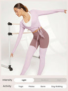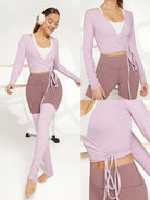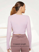 GLOWMODE FeFeatherFit™ توب قصير بأكمام طويلة ورباط على الخصر ورقبة على شكل حرف V لممارسة اليوجا اليومية منخفضة التأثير
