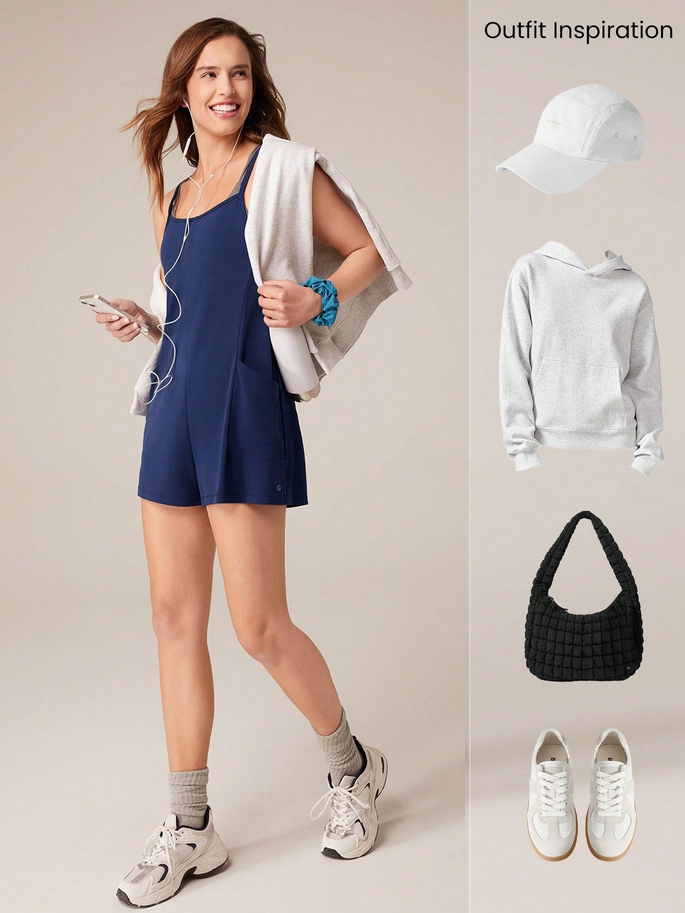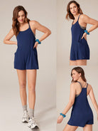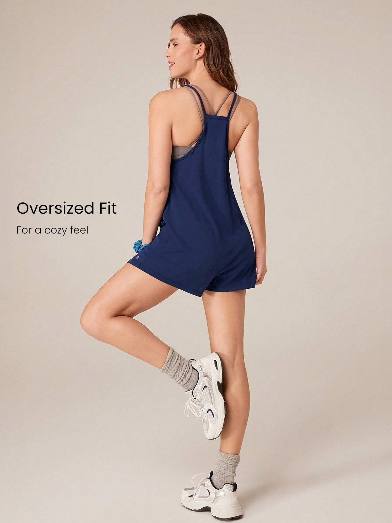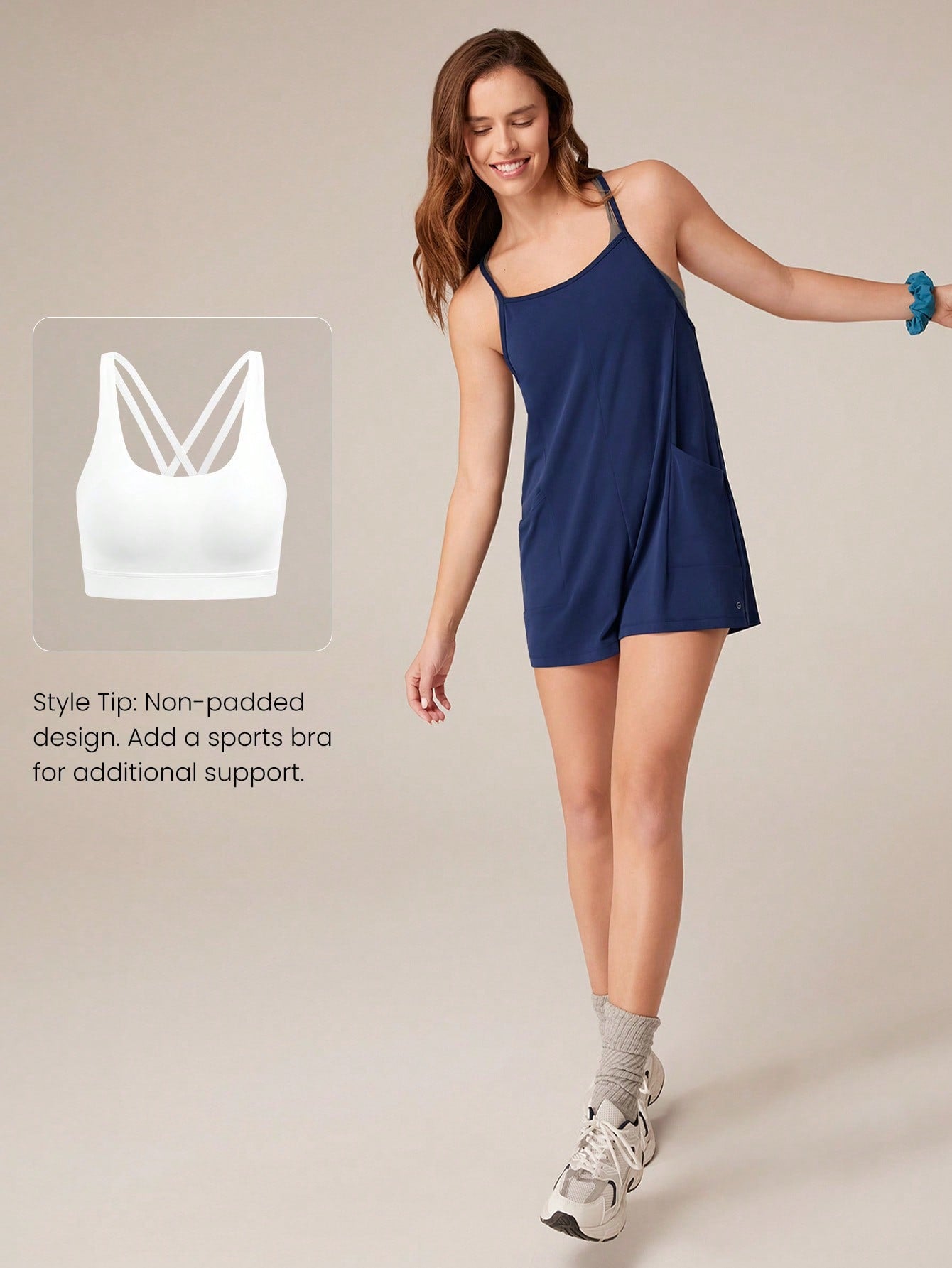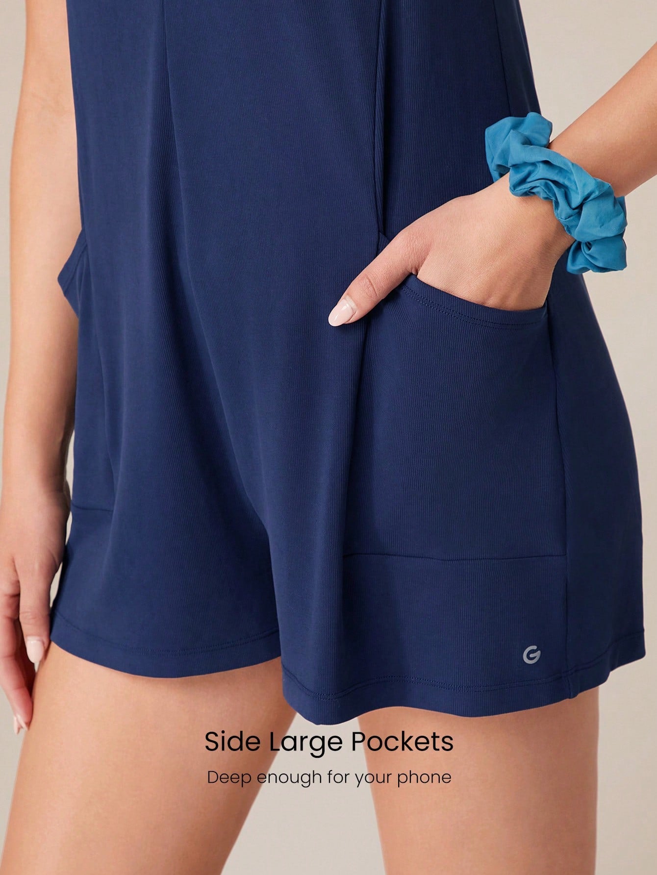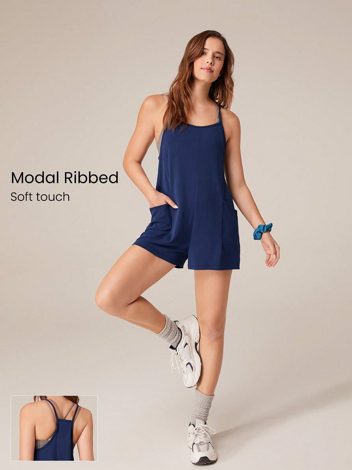 GLOWMODE Modal Ribbed Easy Move Spaghetti Straps Romper Jumpsuit With Side Large Pocket Daily Casual
