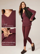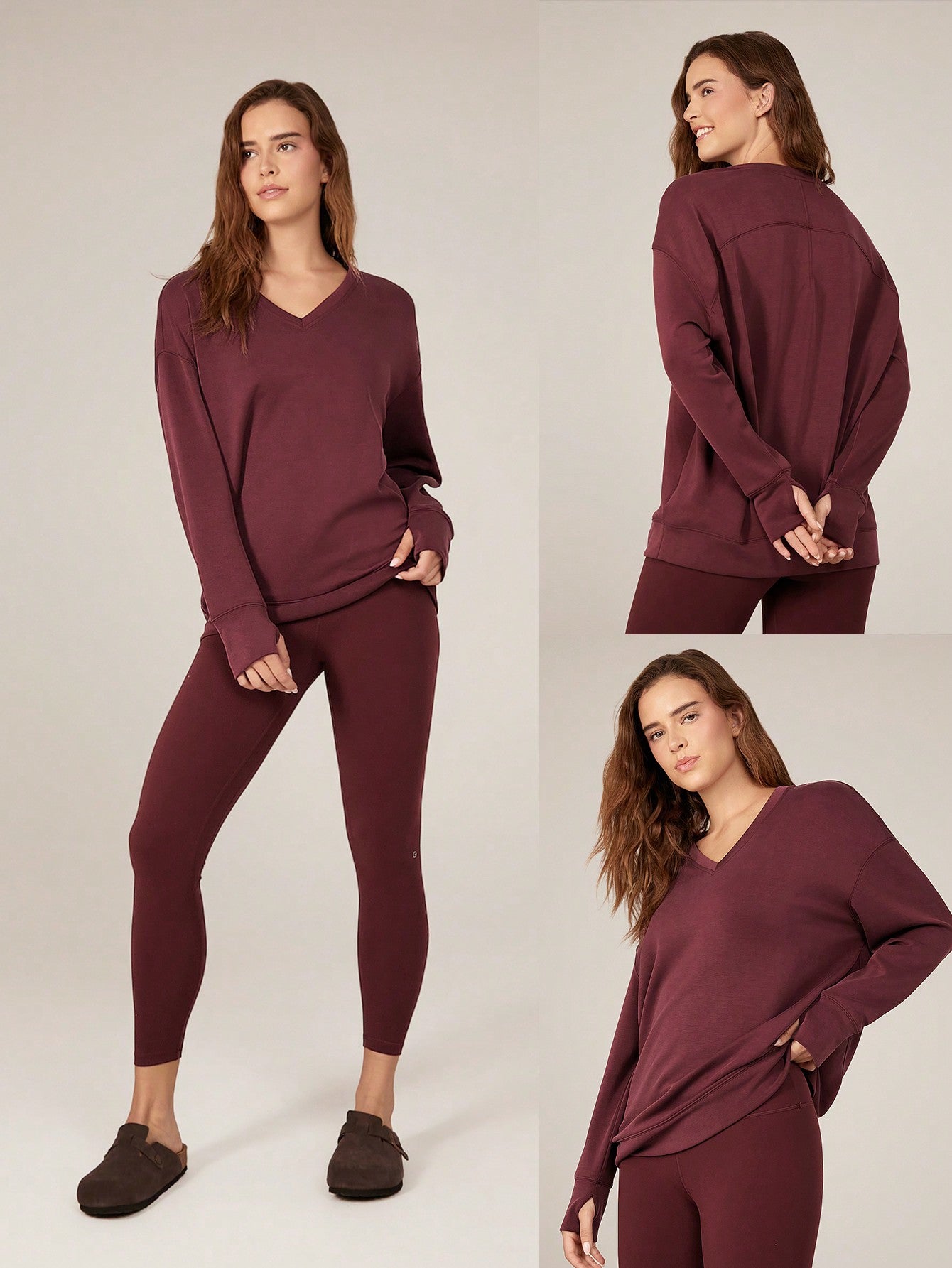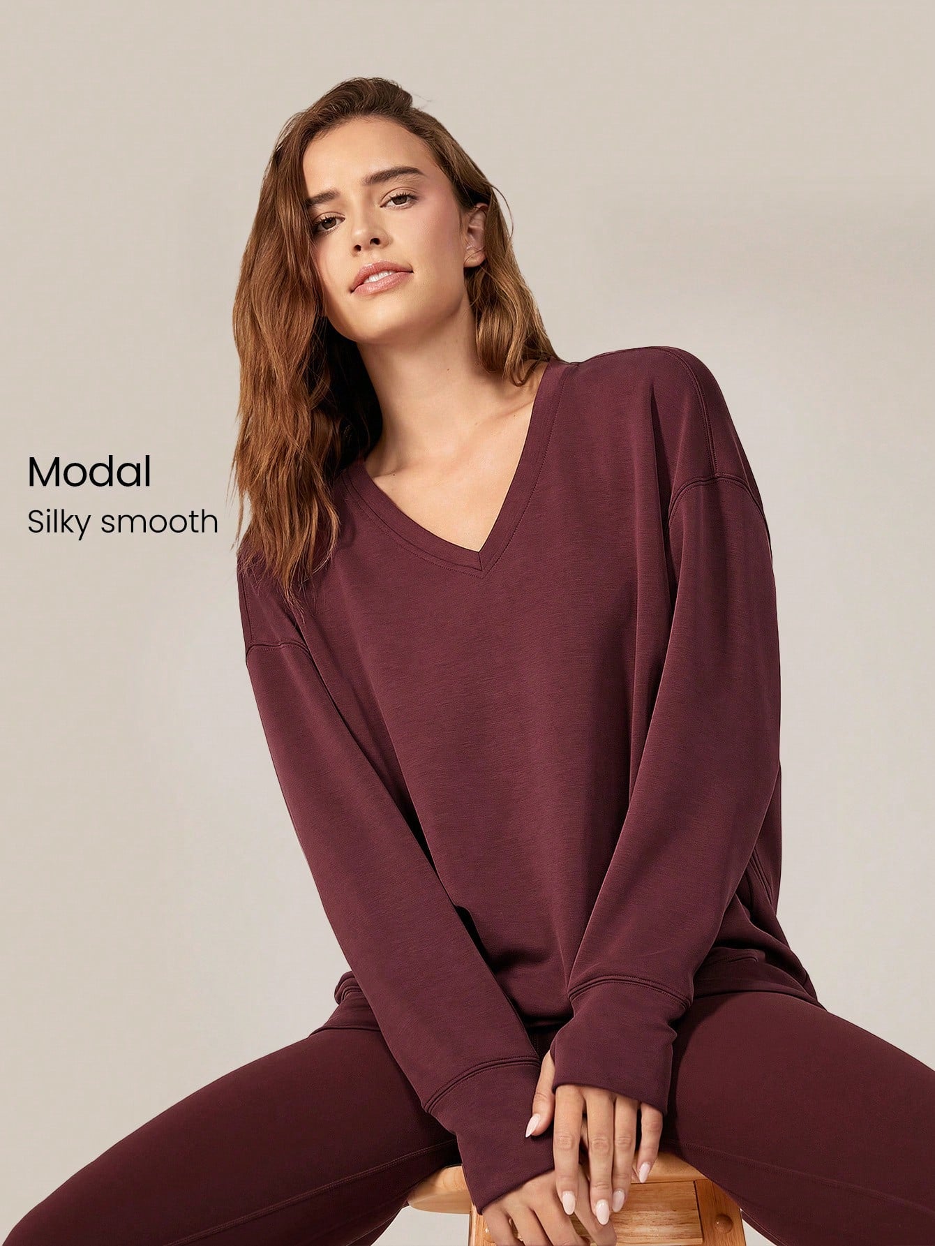 GLOWMODE Modal Silky Smooth Oversized V-Neck Hip Length Long Sleeve Sweatshirt With Thumbholes Daily