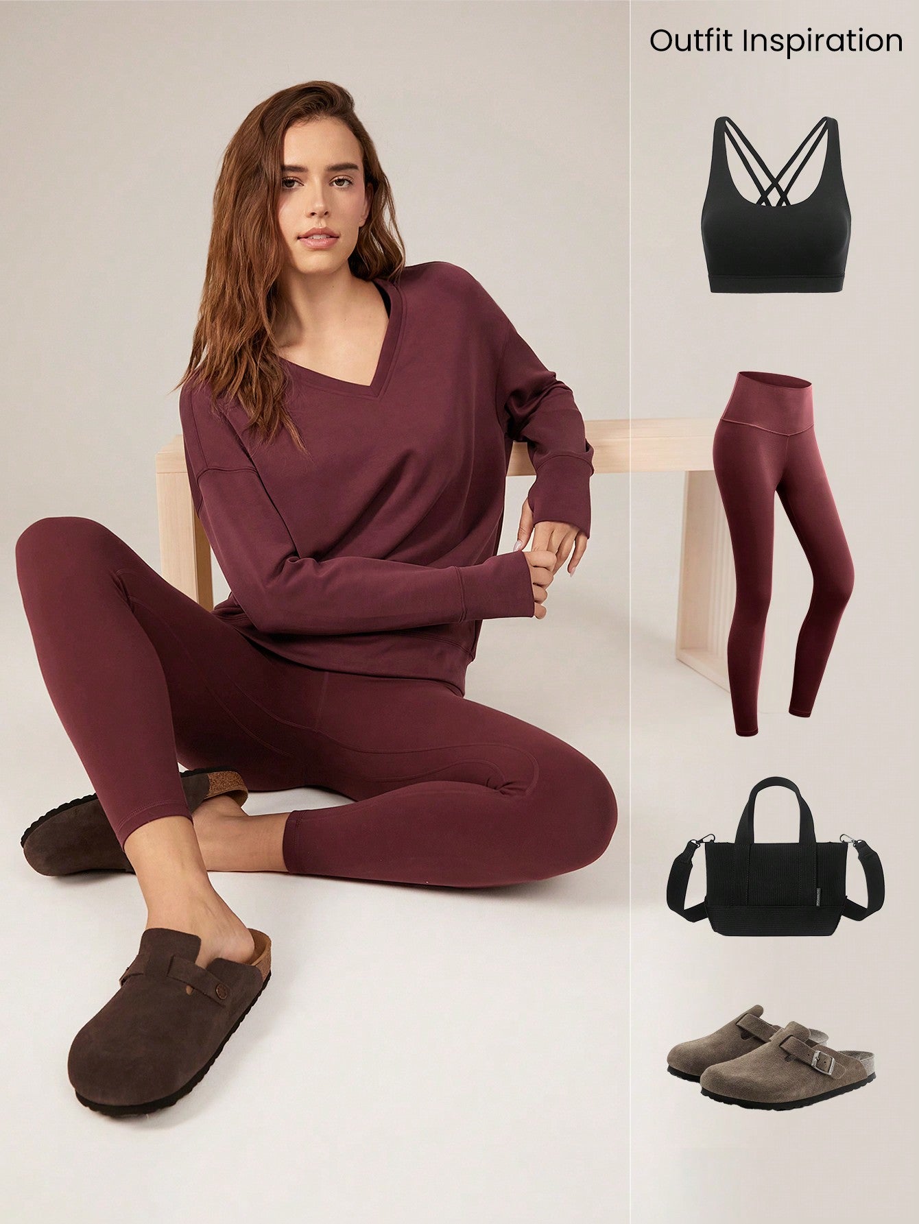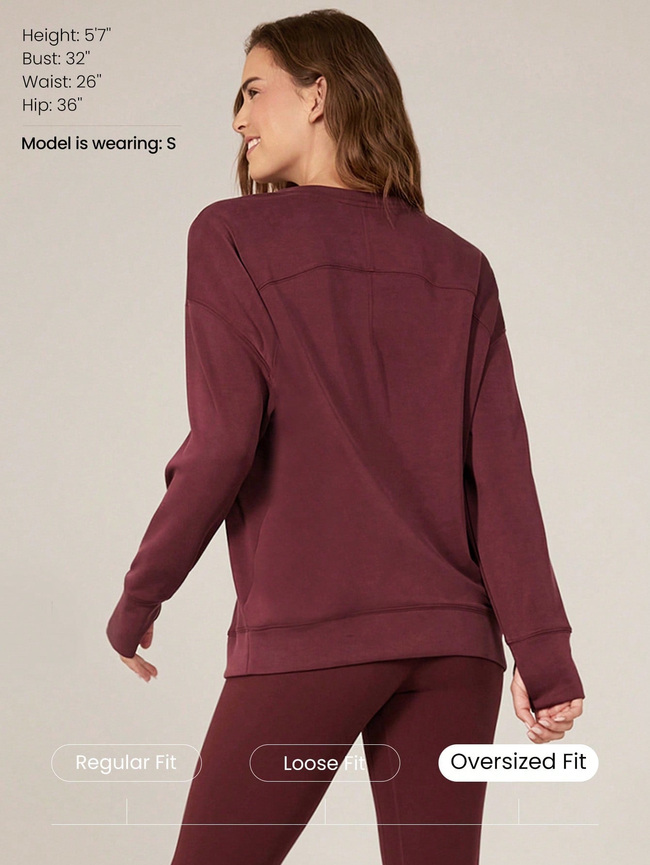 سويت شيرت GLOWMODE Modal حريري ناعم كبير الحجم برقبة على شكل حرف V وبطول الورك وأكمام طويلة مع فتحات للإبهام للاستخدام اليومي