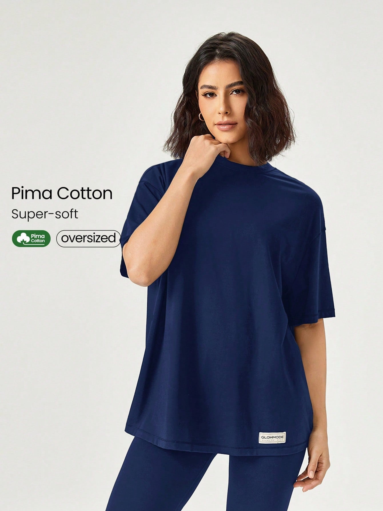 GLOWMODE Pima Cotton Unisex Short Sleeve Round Neck Oversized Tee Daily Casual
