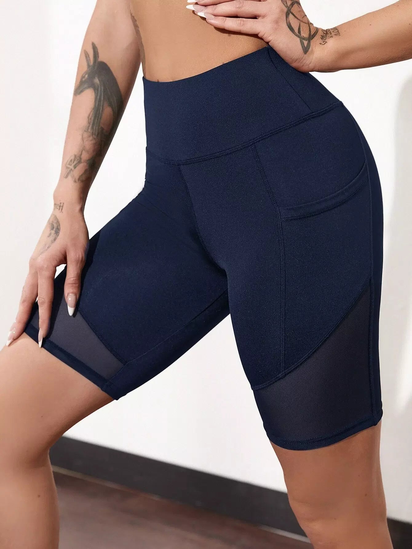 شورت راكبي الدراجات النارية بجزء شبكي مع جيب للهاتف