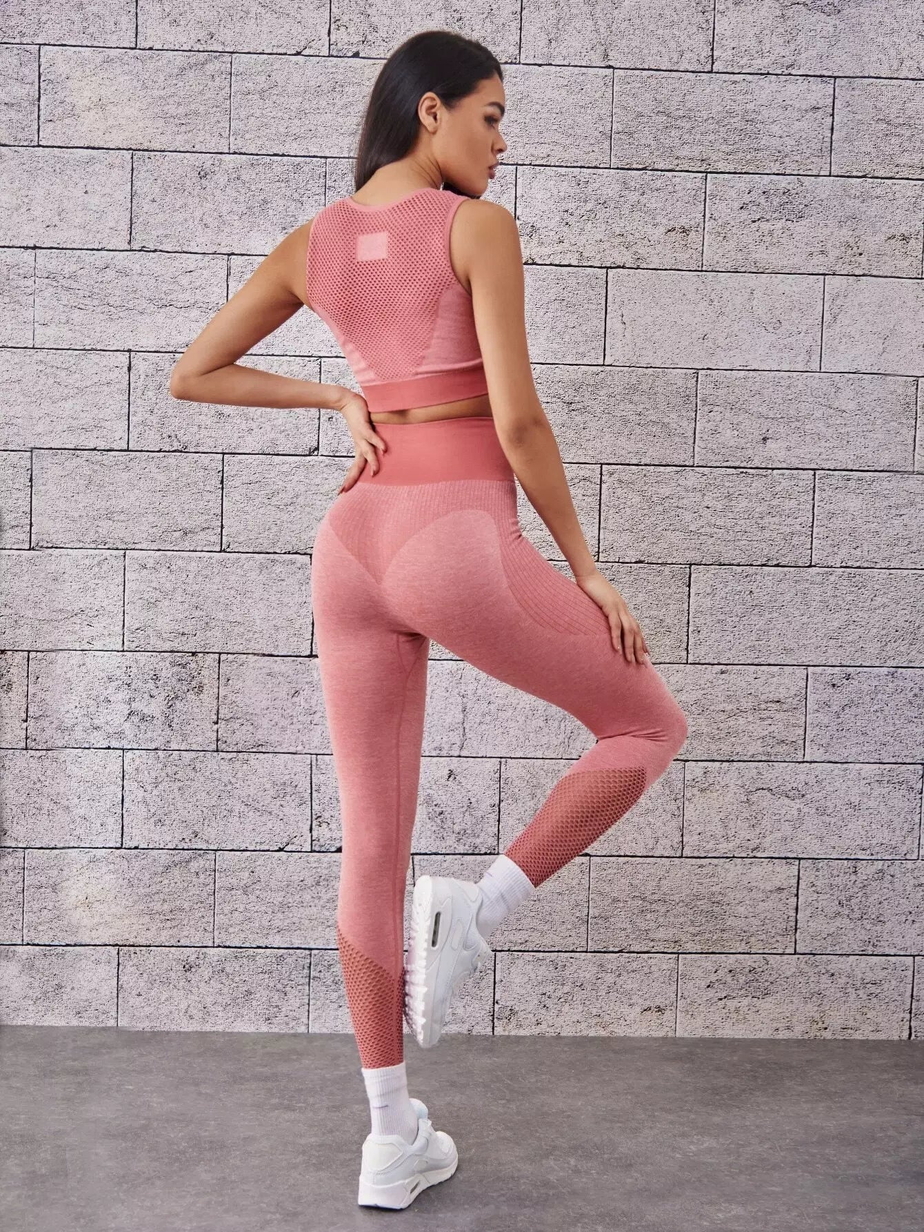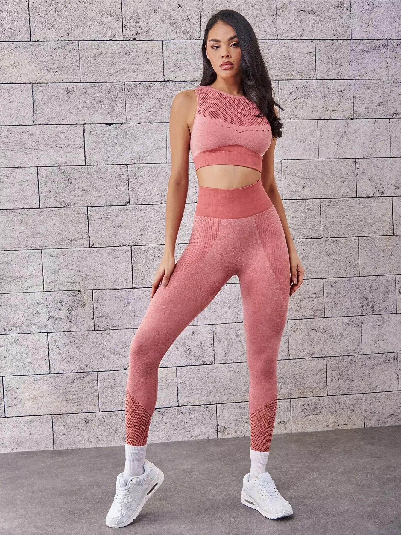 طقم حمالة صدر بدون درزات وبنطلون رياضي ضيق بدون درزات