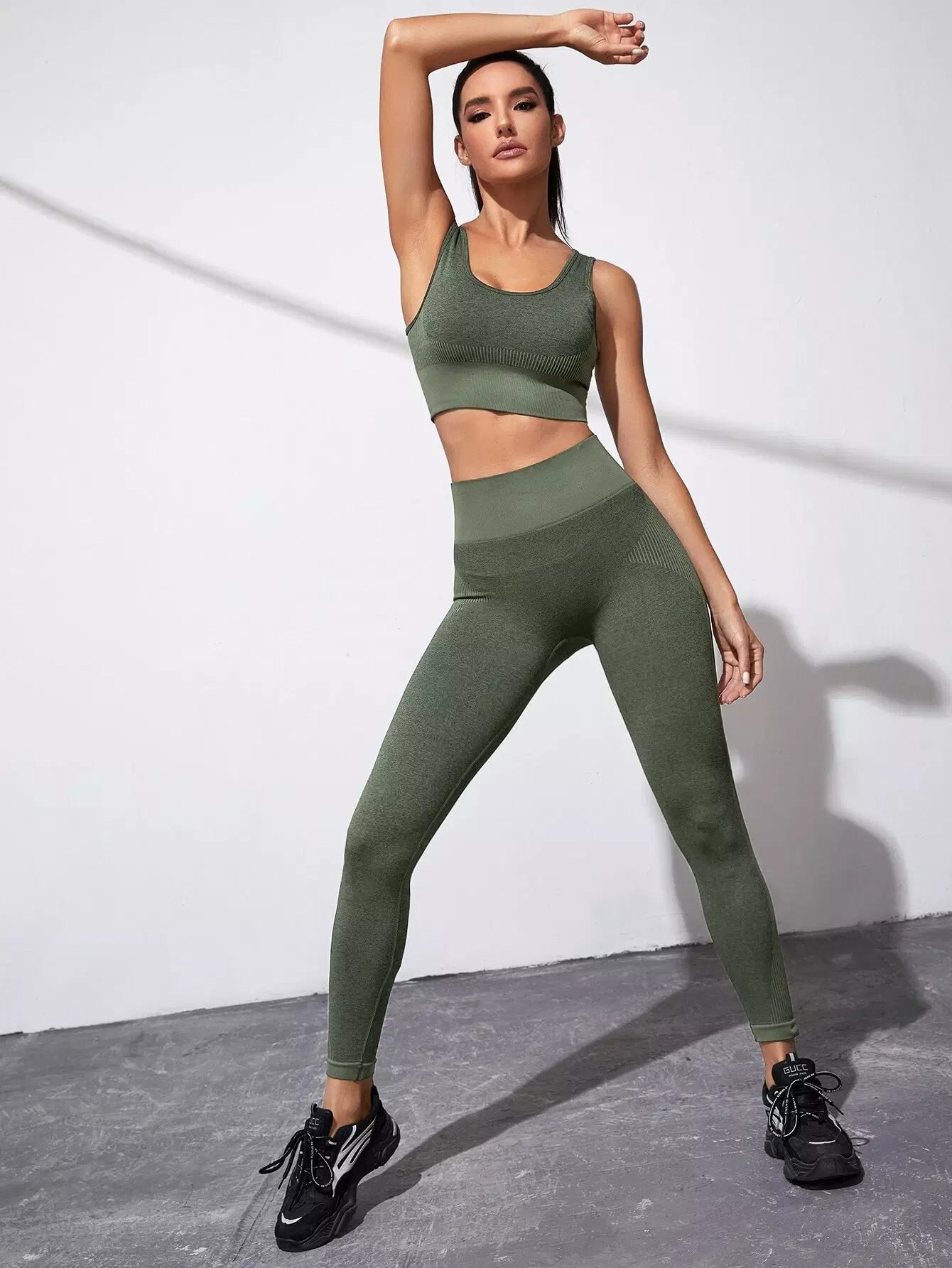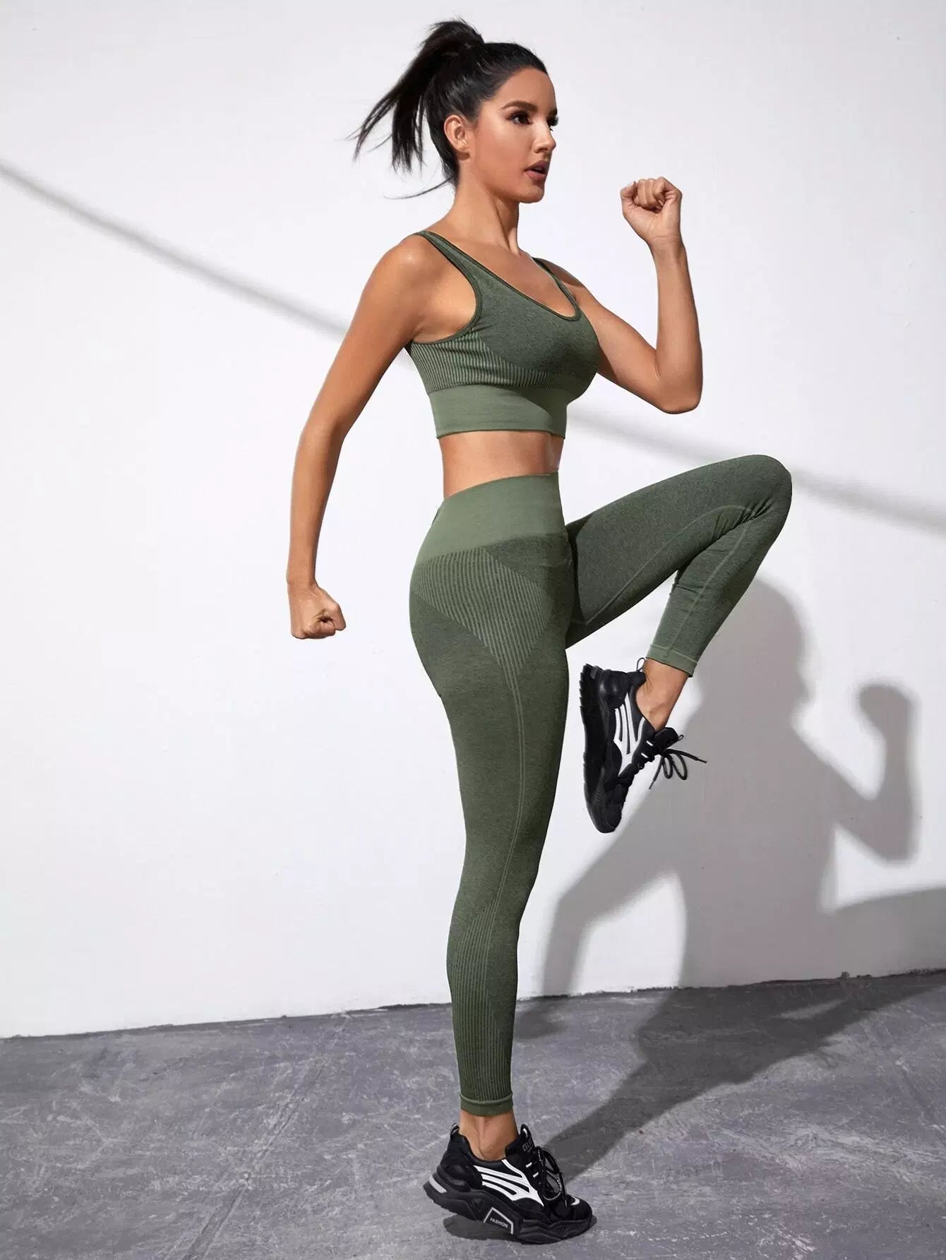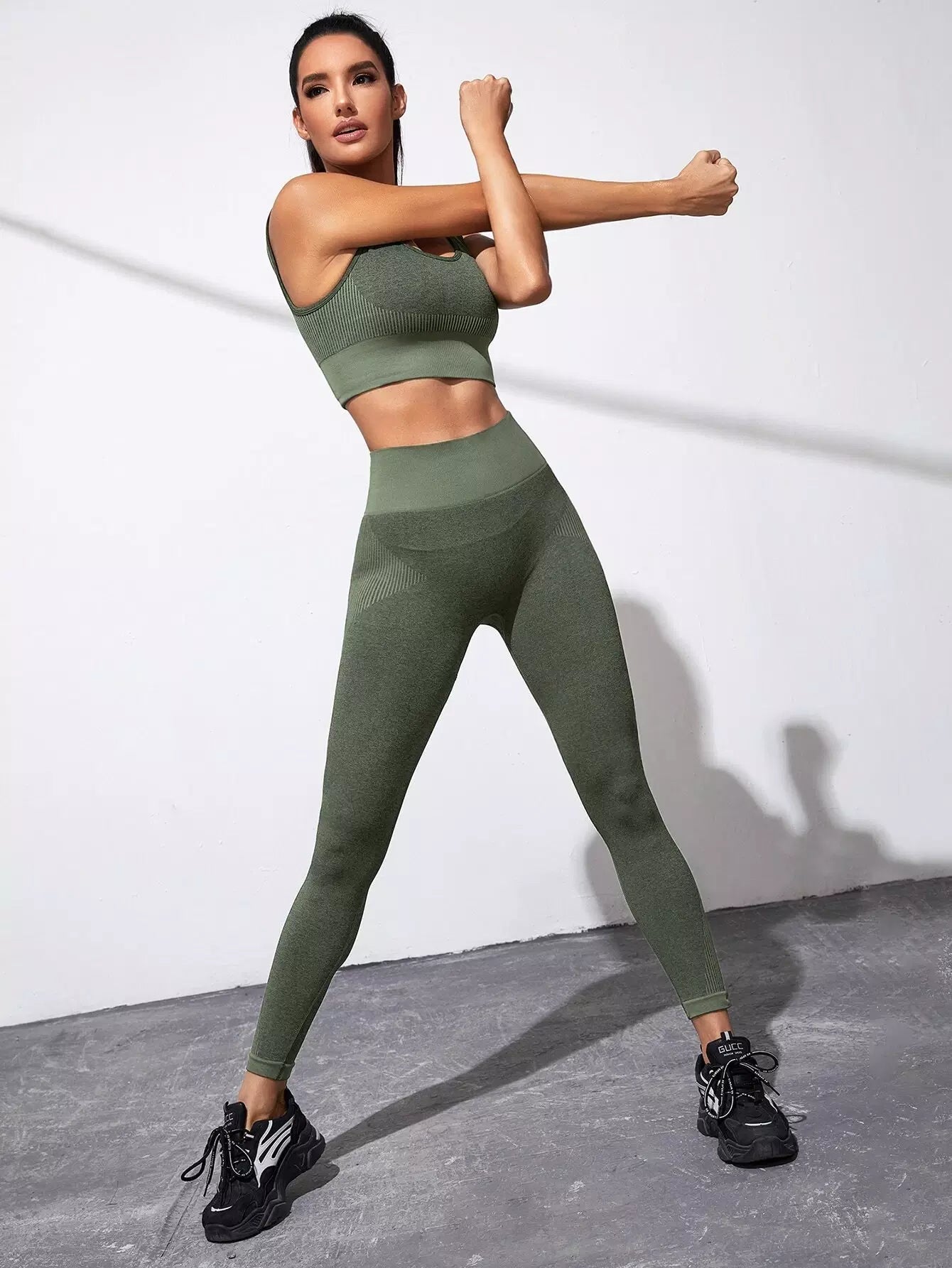حمالة صدر رياضية مخططة بلون متباين وبدون خياطة وبنطال ضيق