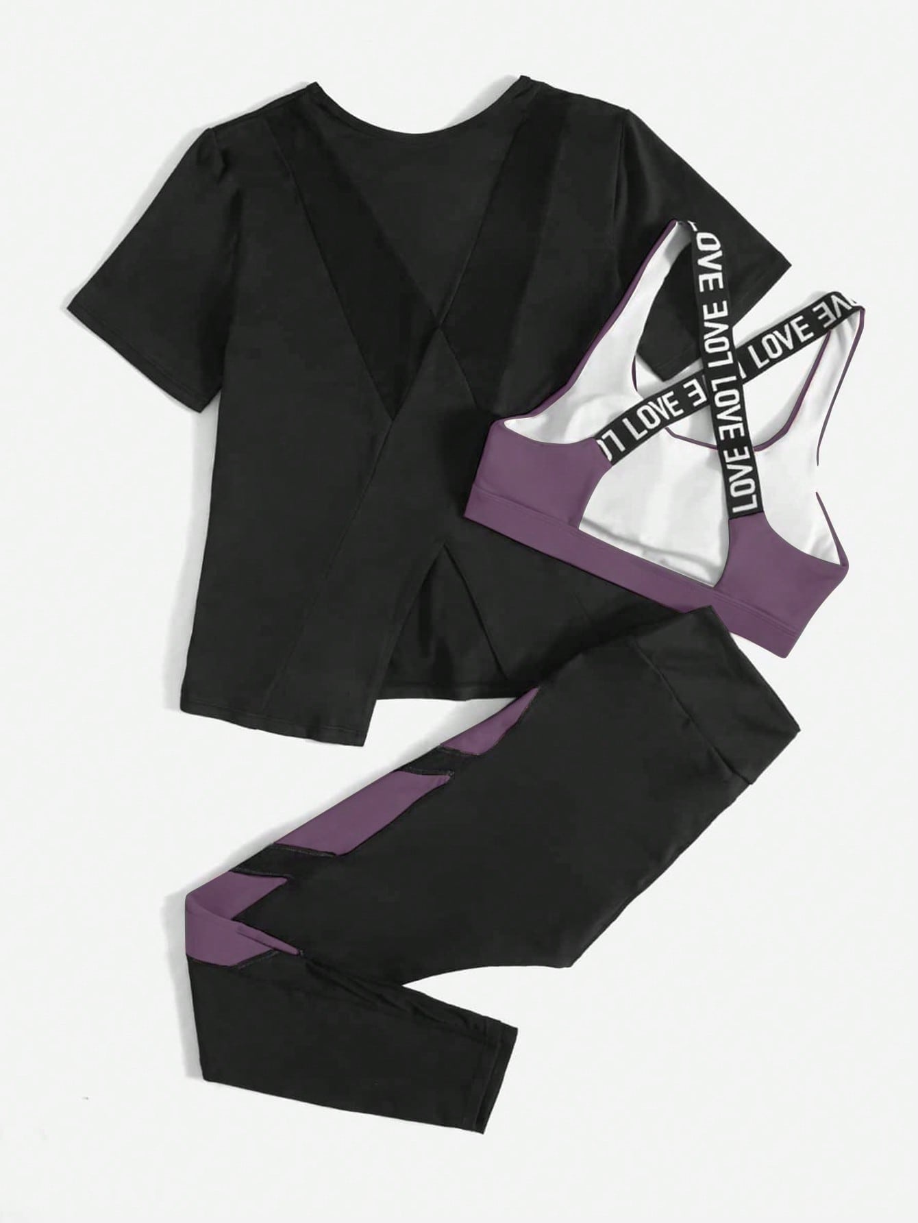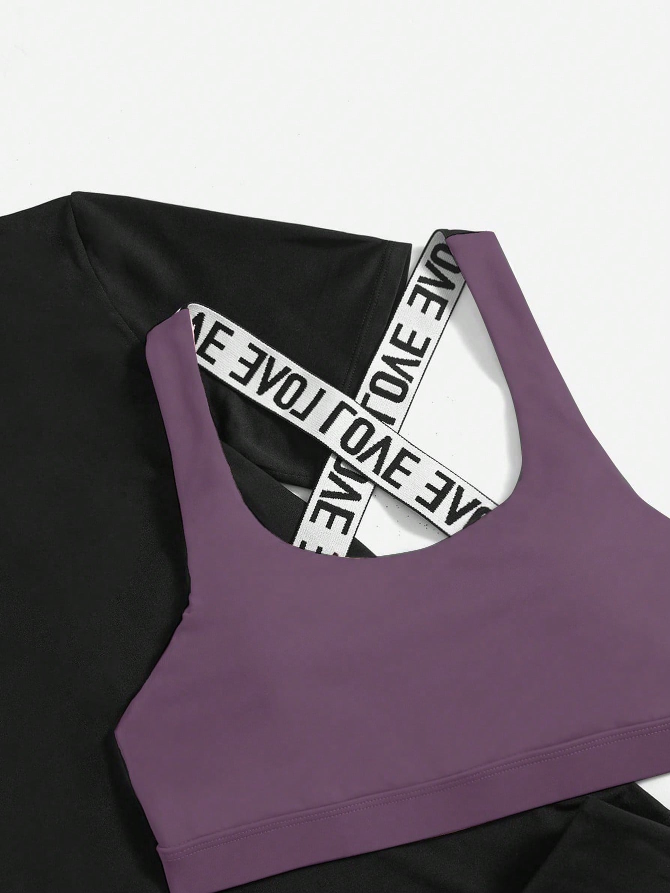 Studio Sport Breathable And Soft Sports Suit With Cross Detailing And Letter Weaving Strap Workout Women