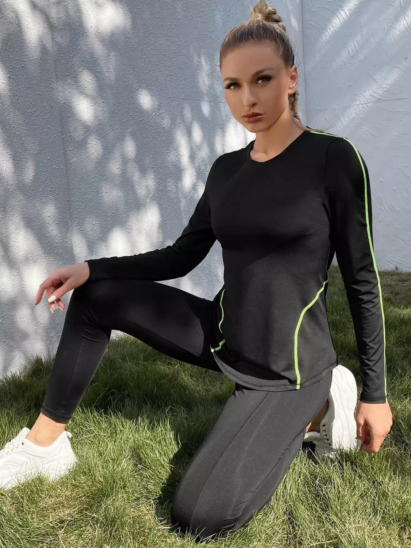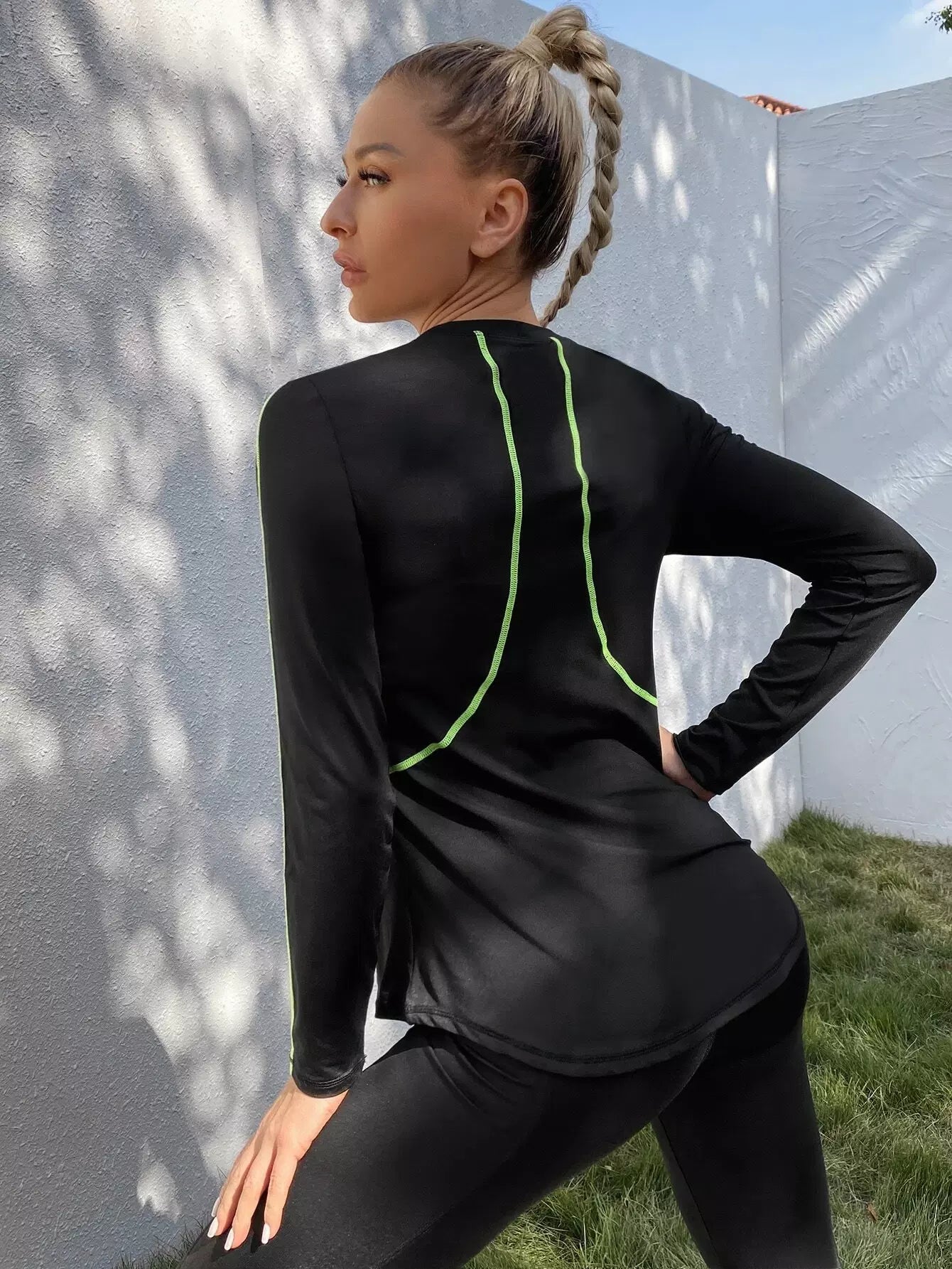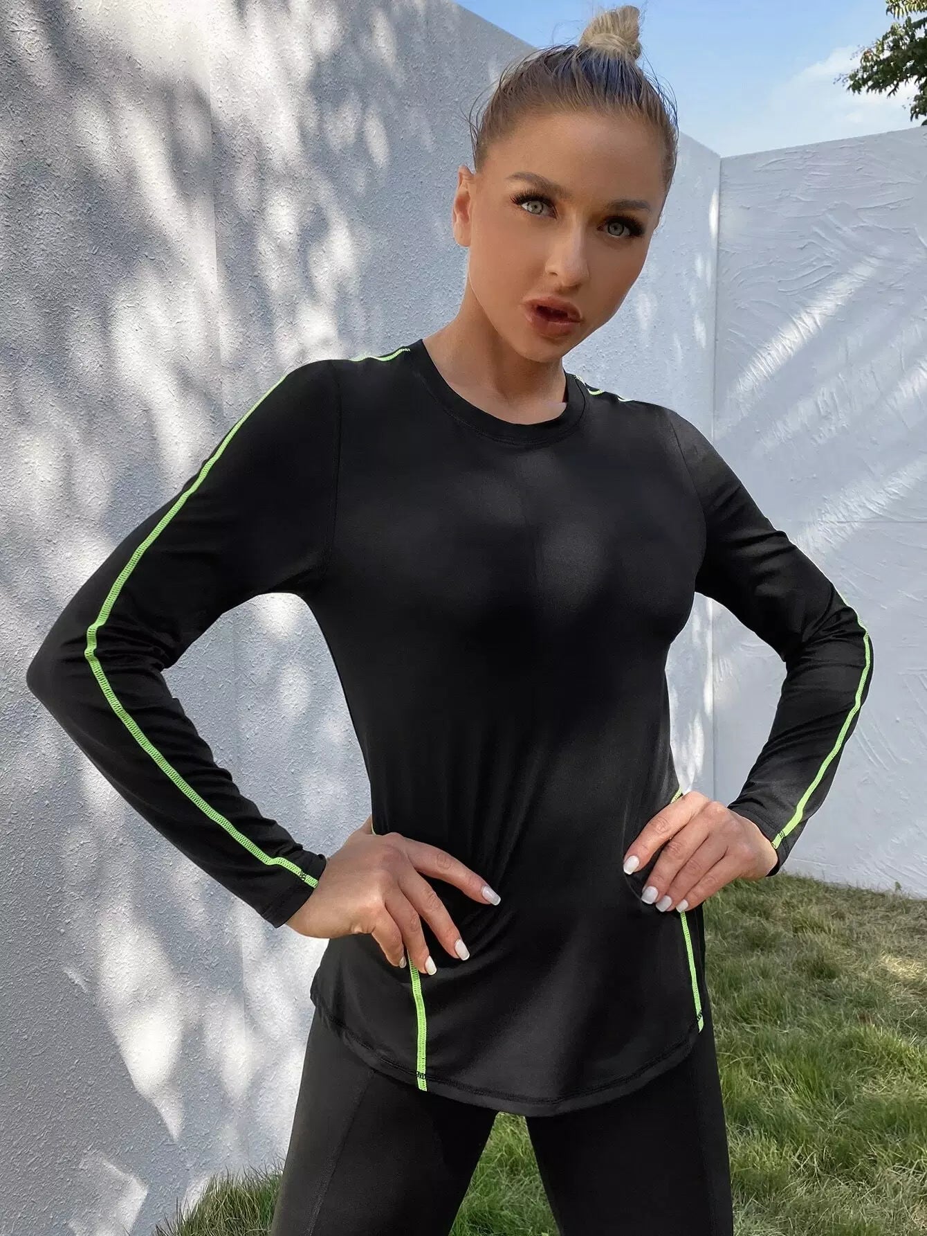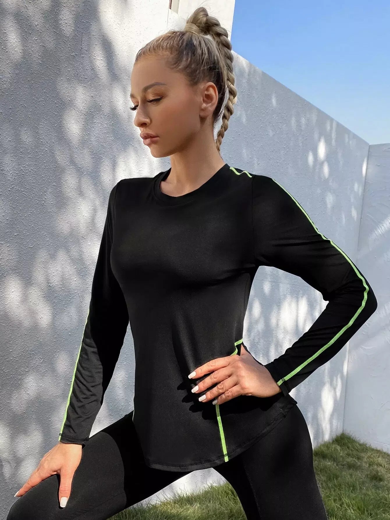 تي شيرت رياضي بأكمام طويلة خياطة علوية
