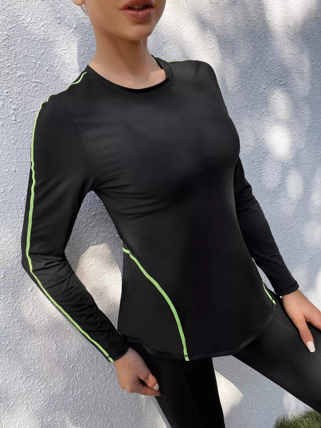 للنساء - تي شيرت رياضي بأكمام طويلة وخياطة علوية