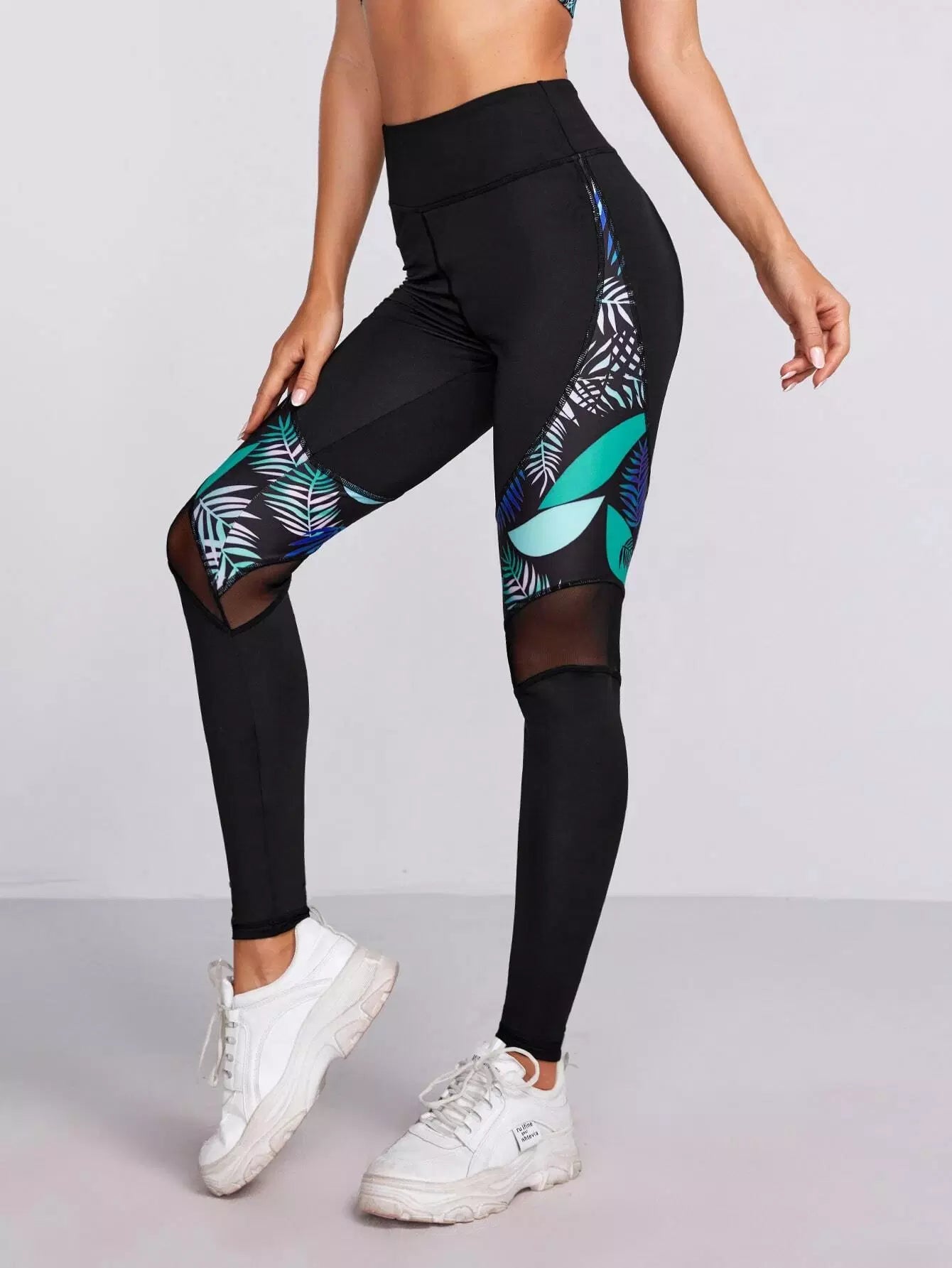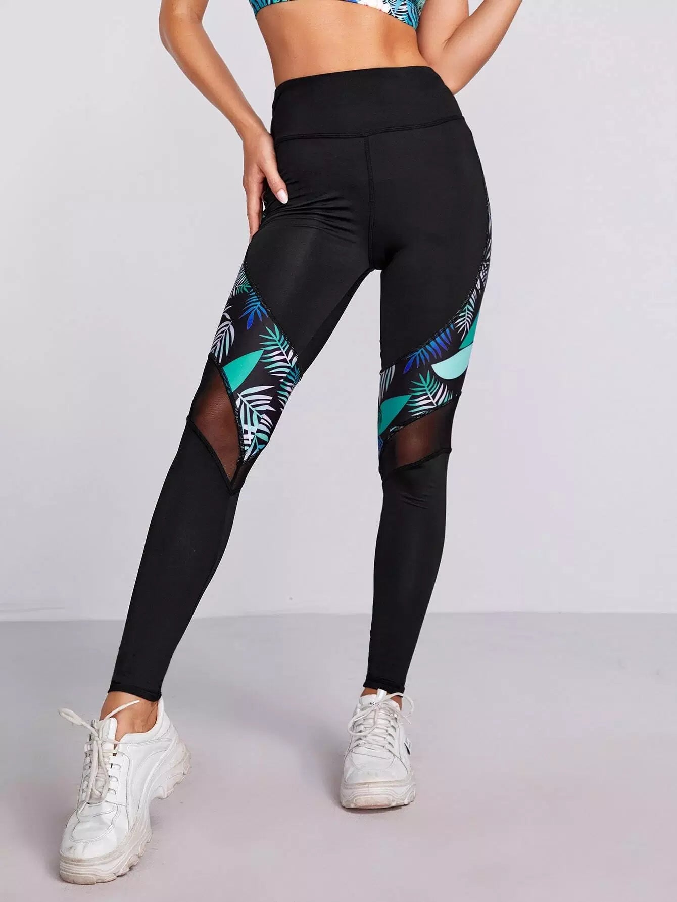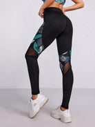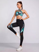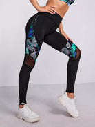 بنطال ضيق رياضي بطبعة استوائية بطباعة شبكية داخلية