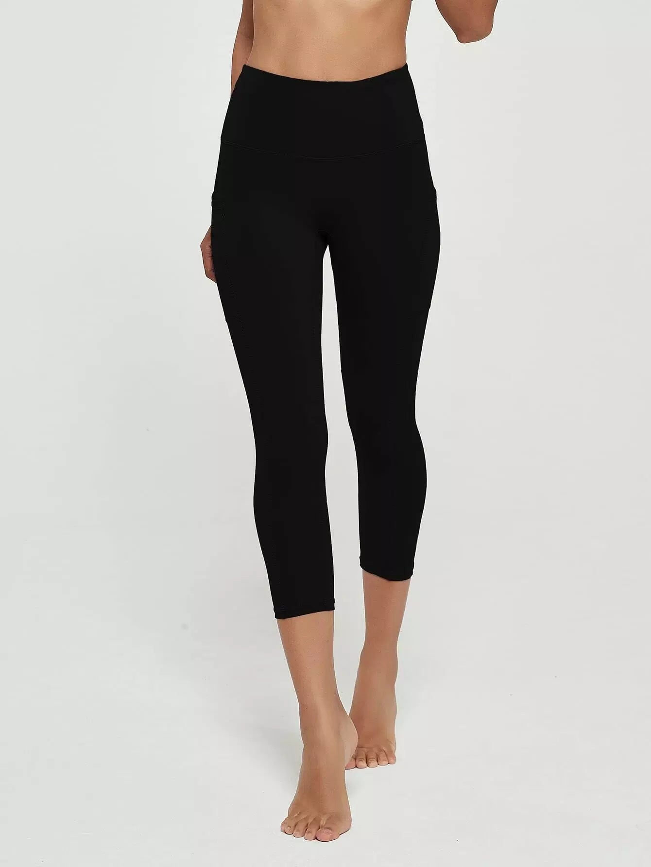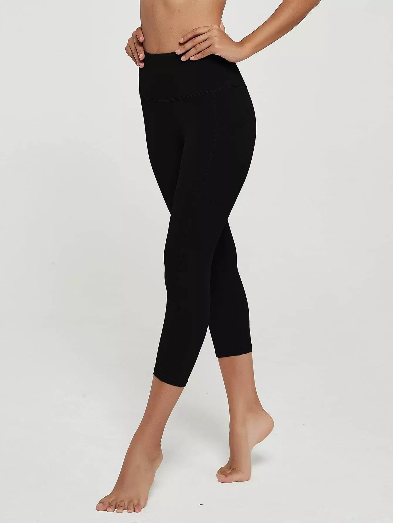 بنطال ضيق رياضي بحزام خصر عريض كابريس بحزام خصر عريض