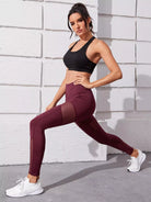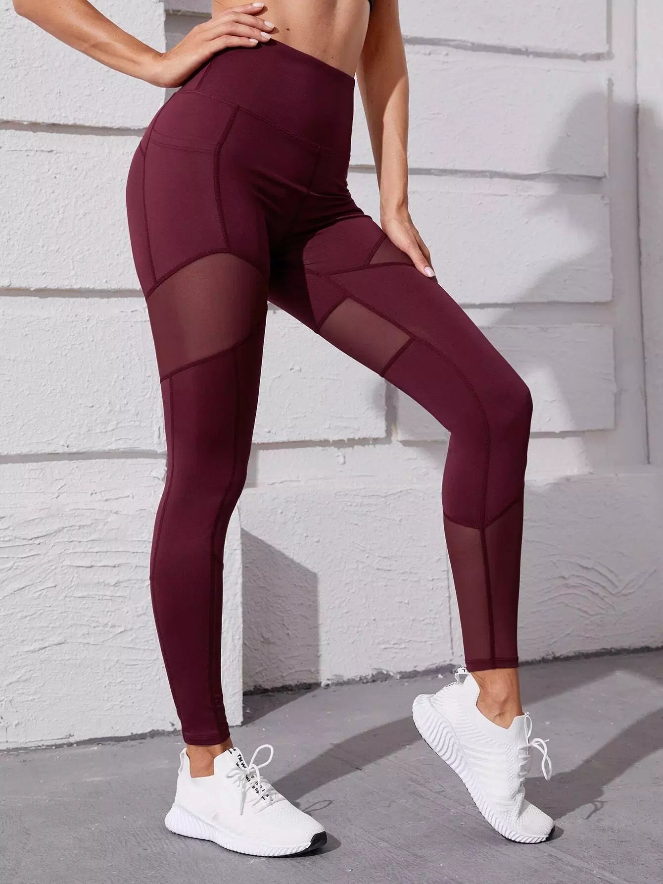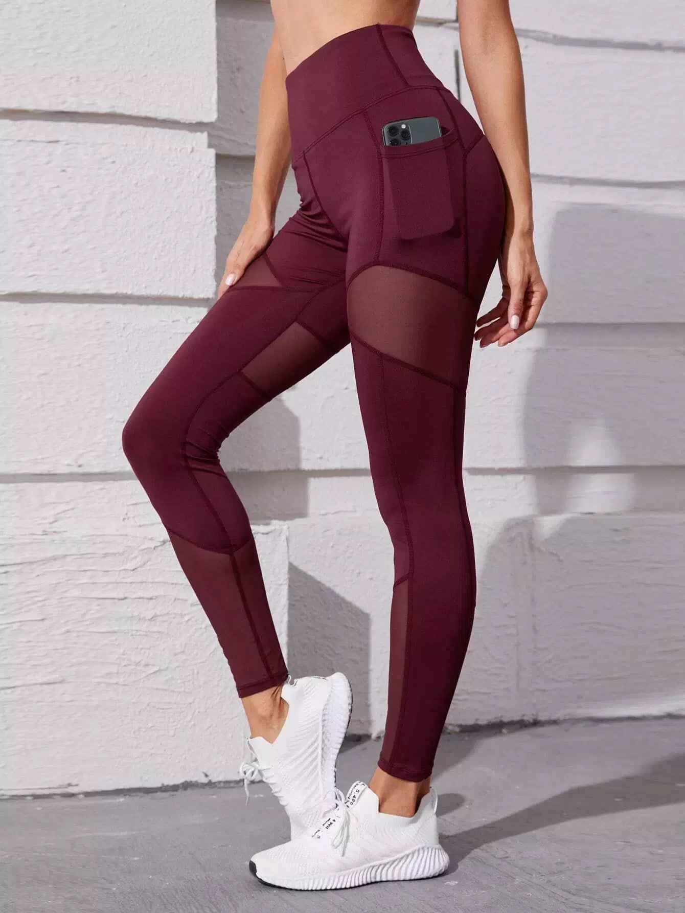 بنطال ضيق رياضي شبكي بلون مغاير مع جيب للهاتف